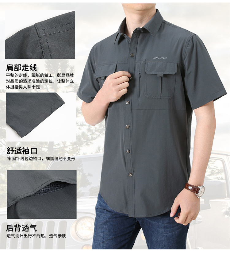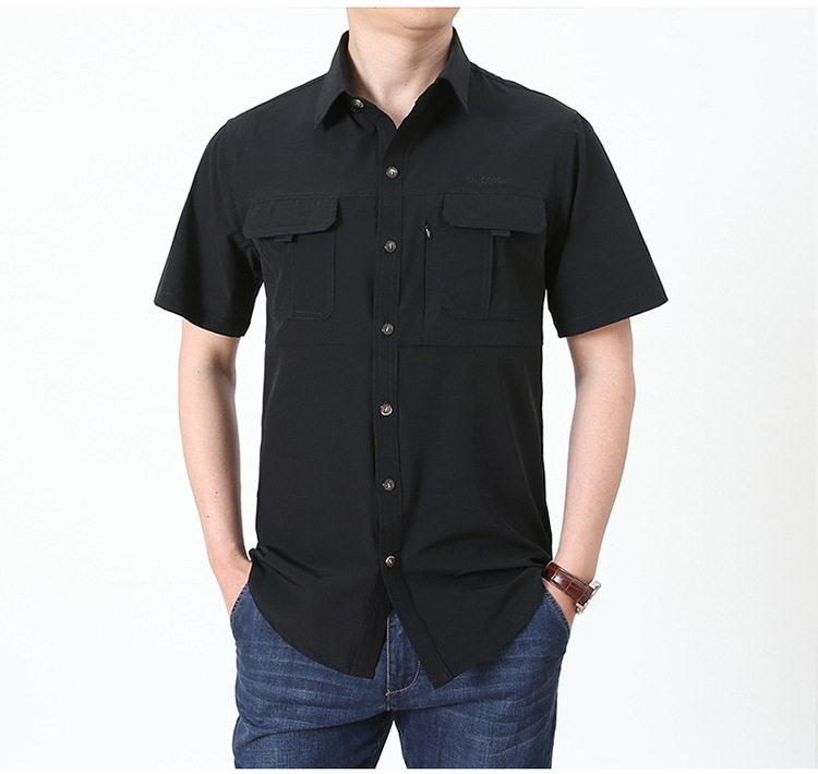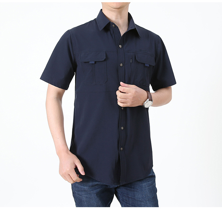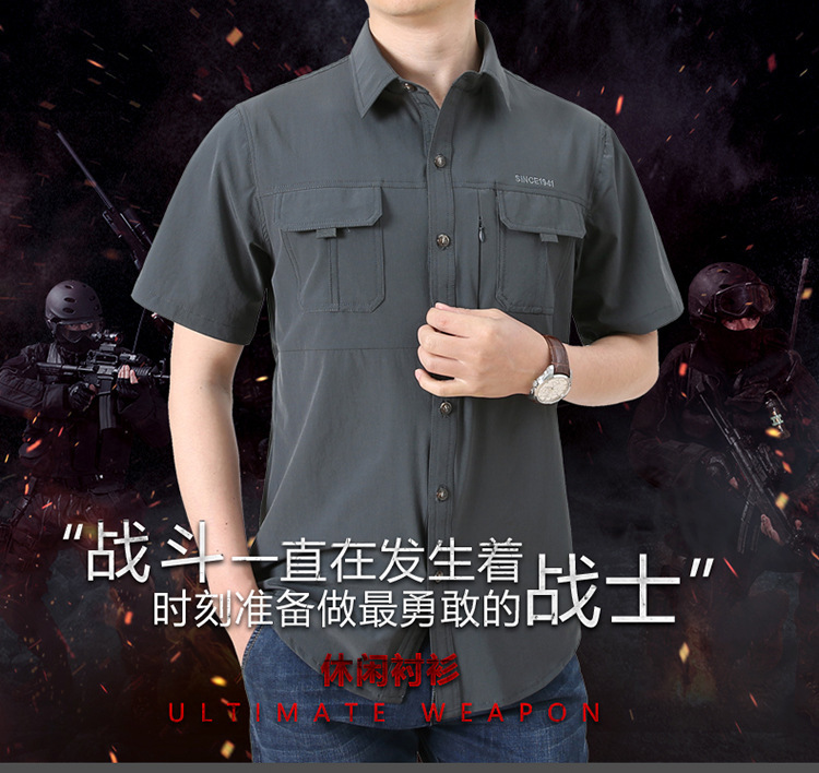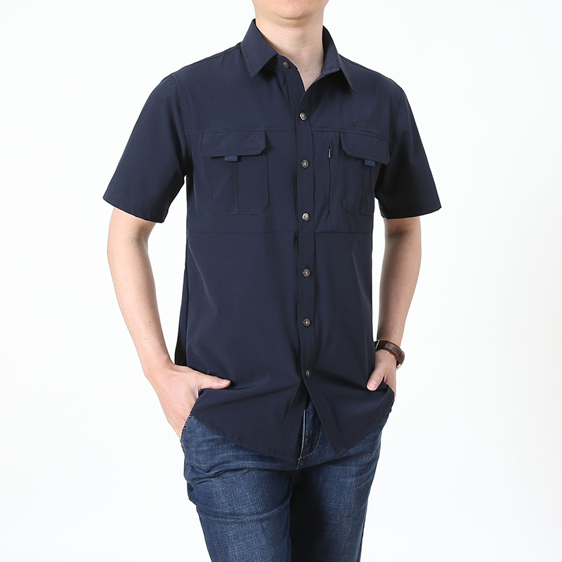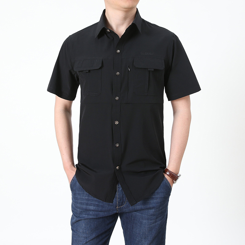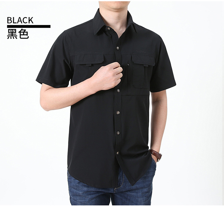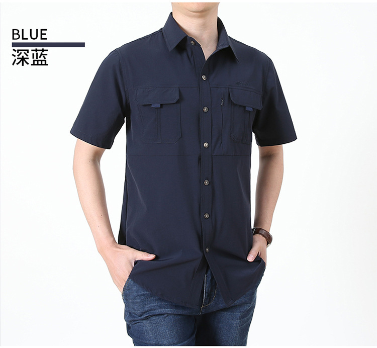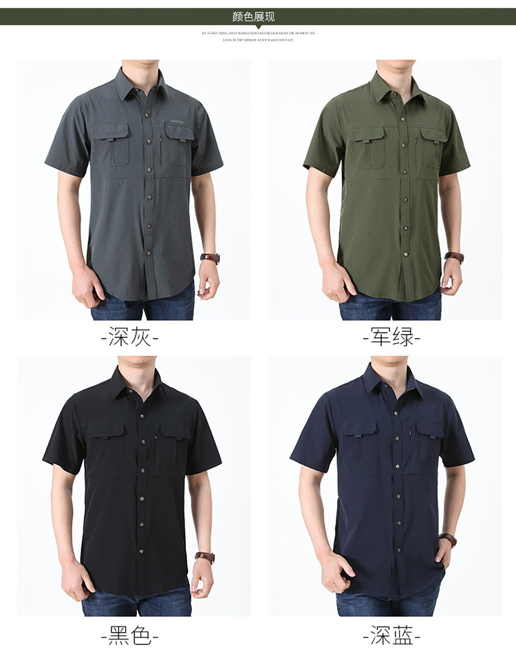 야외 툴링 남성 캐주얼 반팔 셔츠 여름 새로운 단색 중년 및 젊은 남성 국경 아마존스토어 가기