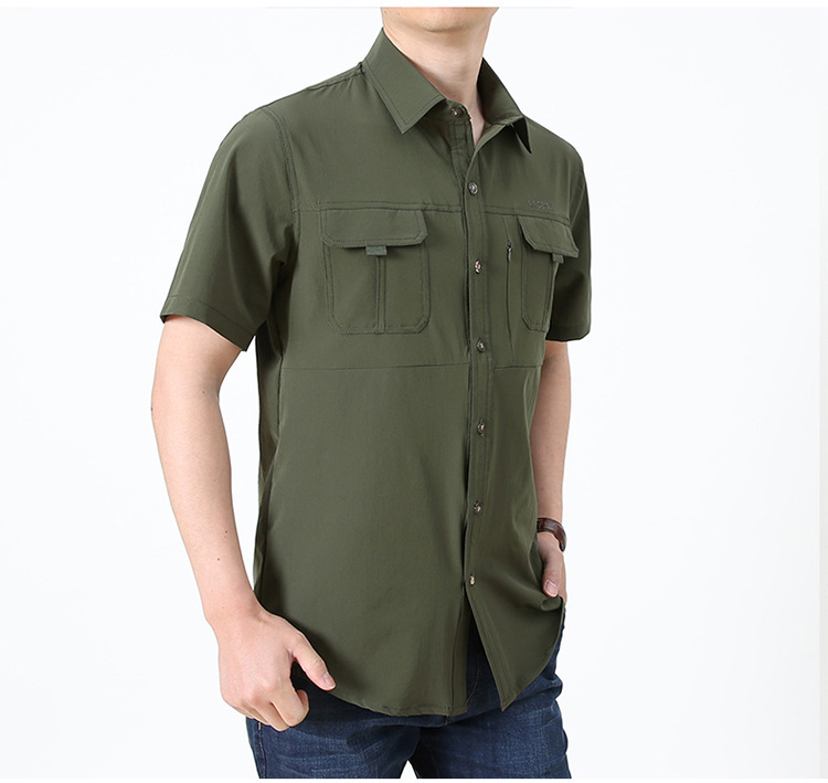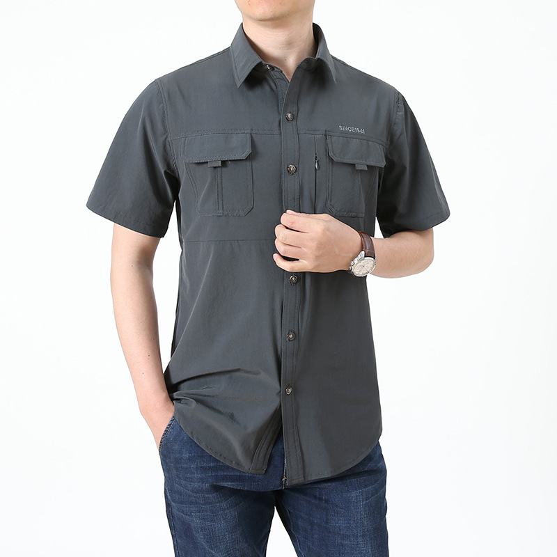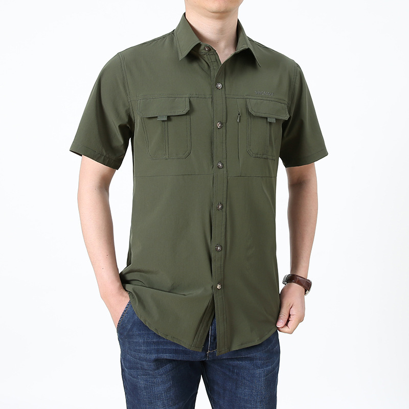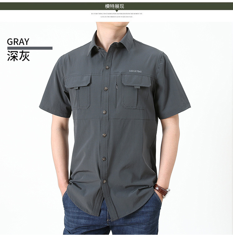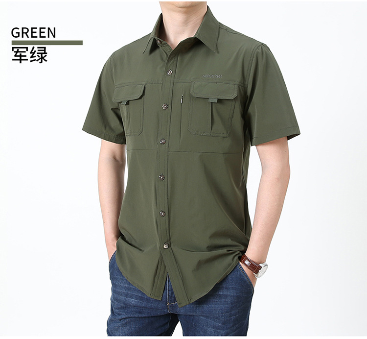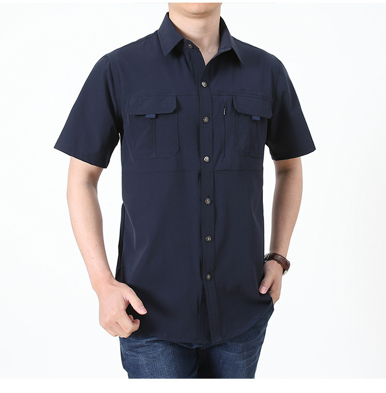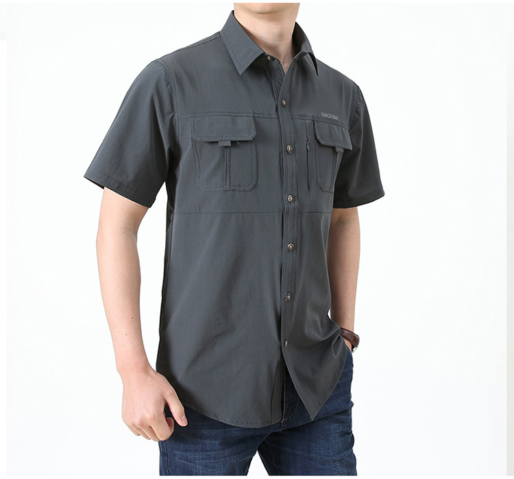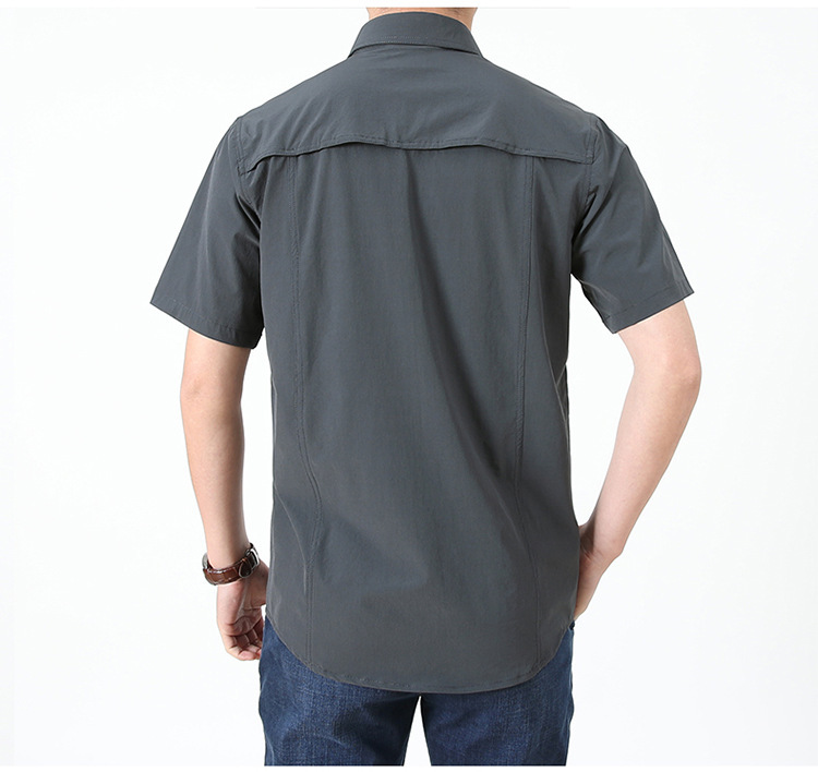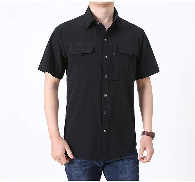 야외 툴링 남성 캐주얼 반팔 셔츠 여름 새로운 단색 중년 및 젊은 남성 국경 아마존스토어 가기