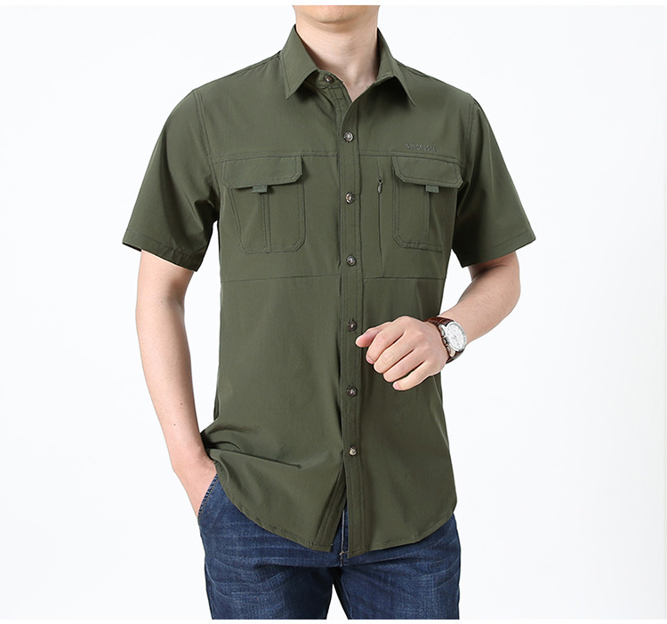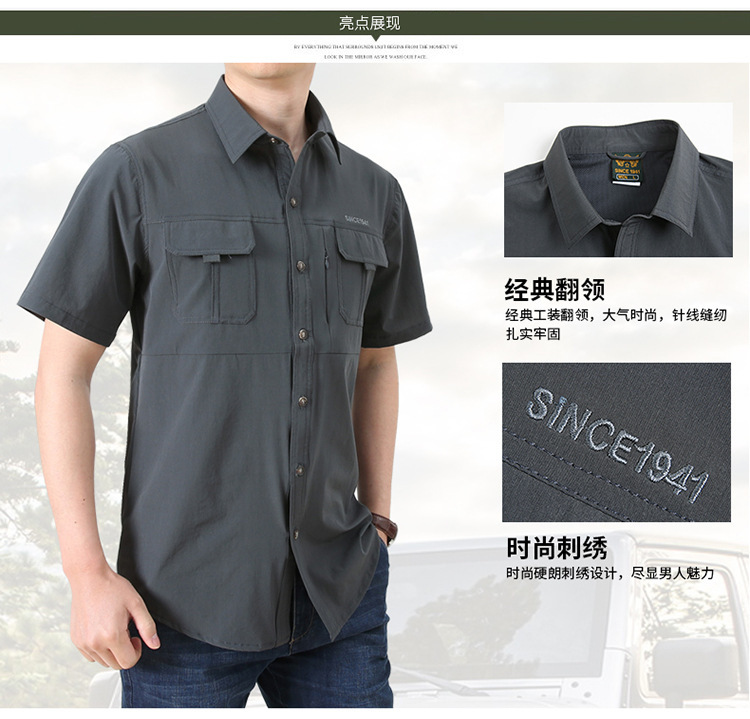 야외 툴링 남성 캐주얼 반팔 셔츠 여름 새로운 단색 중년 및 젊은 남성 국경 아마존