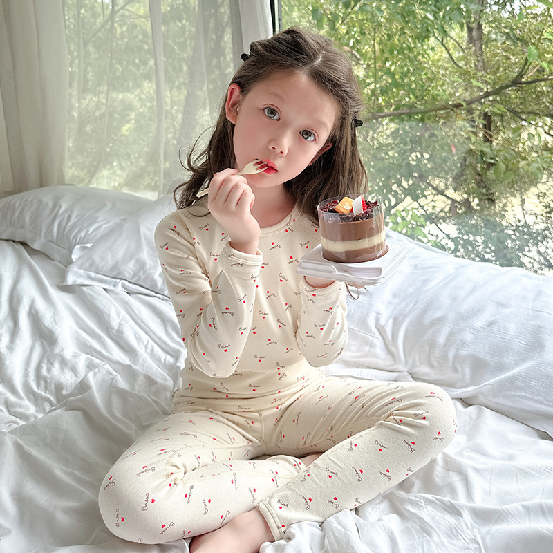 해피 베어 플러스 사이즈 어린이 플러스 사이즈 가을 옷과 바지 뼈없는 속옷 Shun Velvet 코튼 홈 옷 세트 따뜻한 잠옷