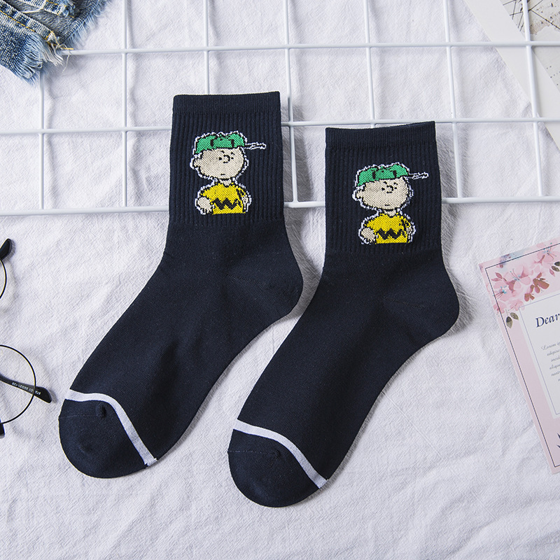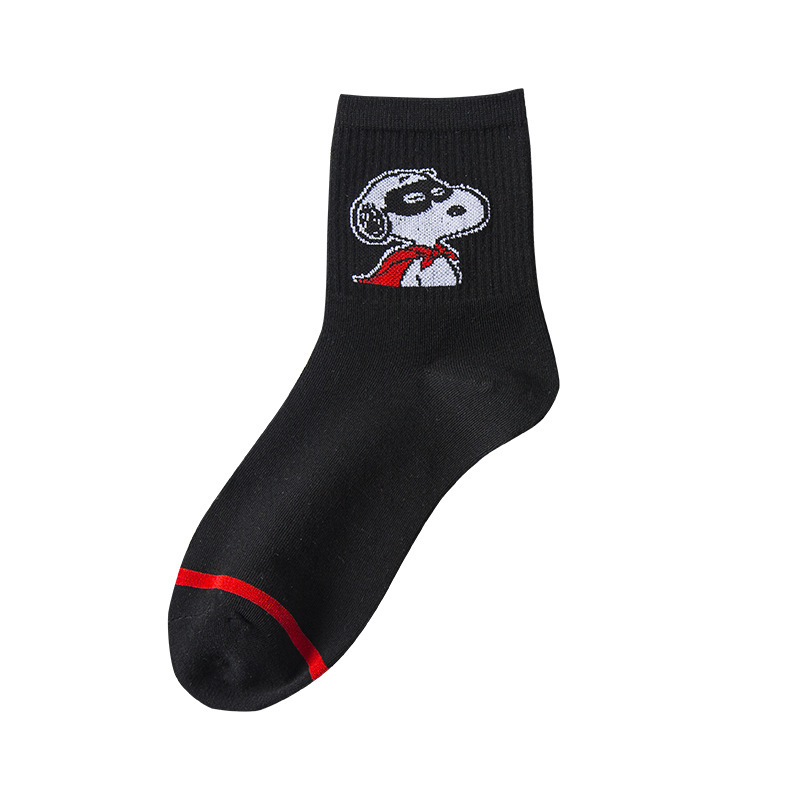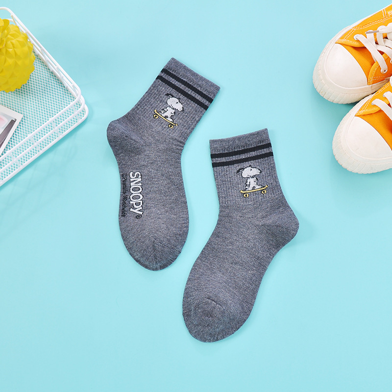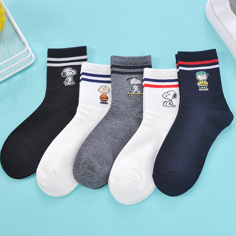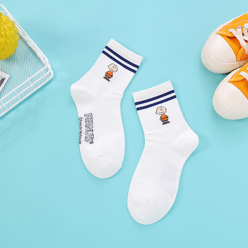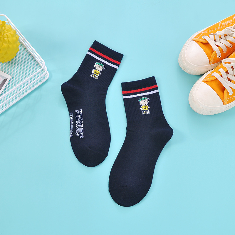 양말 여성의 가을과 겨울 새로운 귀여운 만화 스누피 중간 길이의 양말 땀 흡수성 2 바 코튼 양말 스타킹