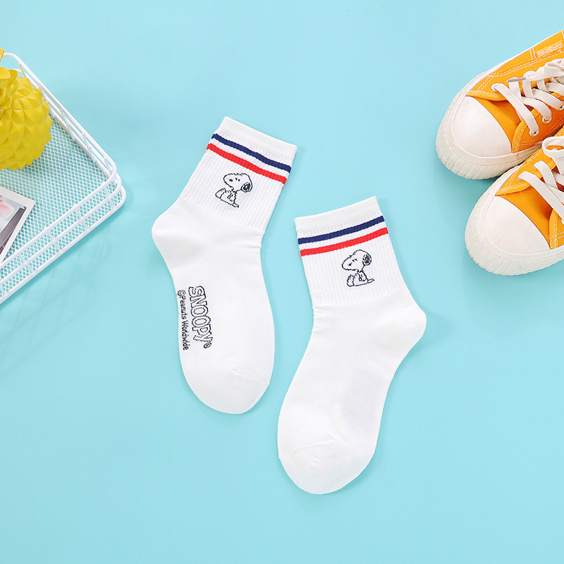 양말 여성의 가을과 겨울 새로운 귀여운 만화 스누피 중간 길이의 양말 땀 흡수성 2 바 코튼 양말 스타킹스토어 가기