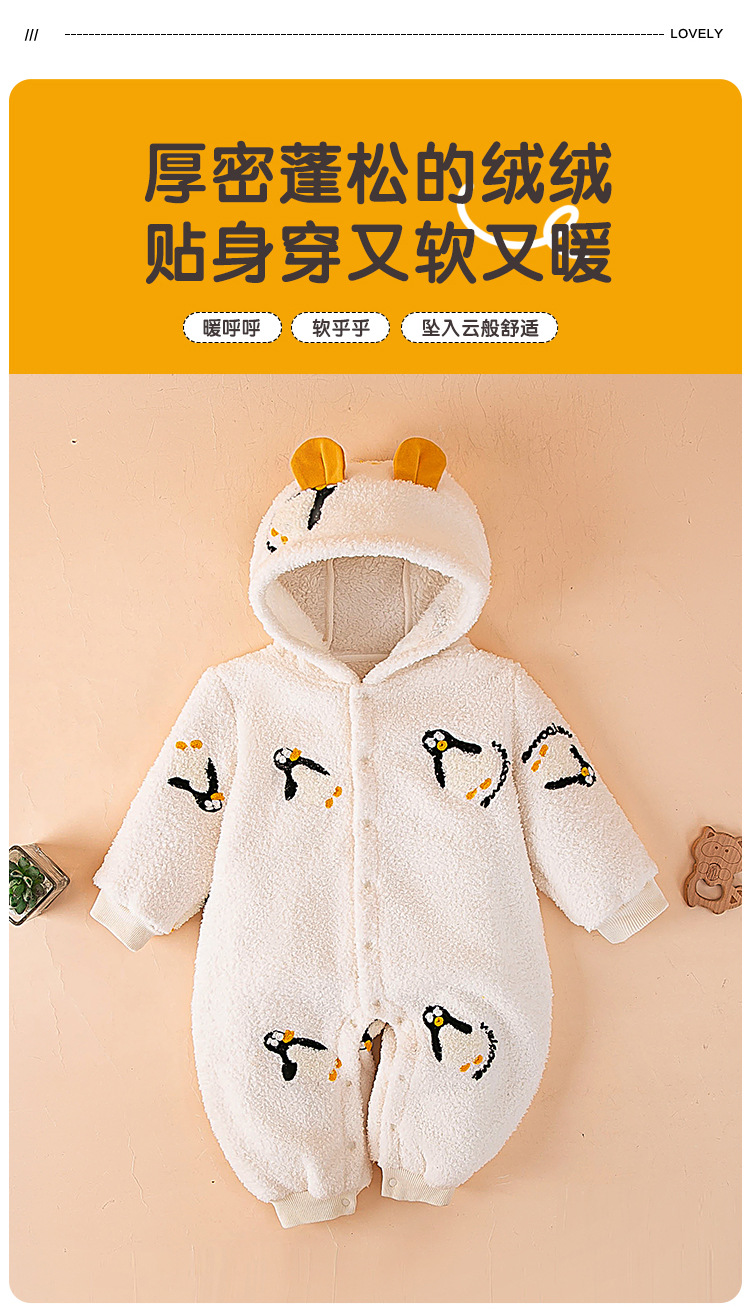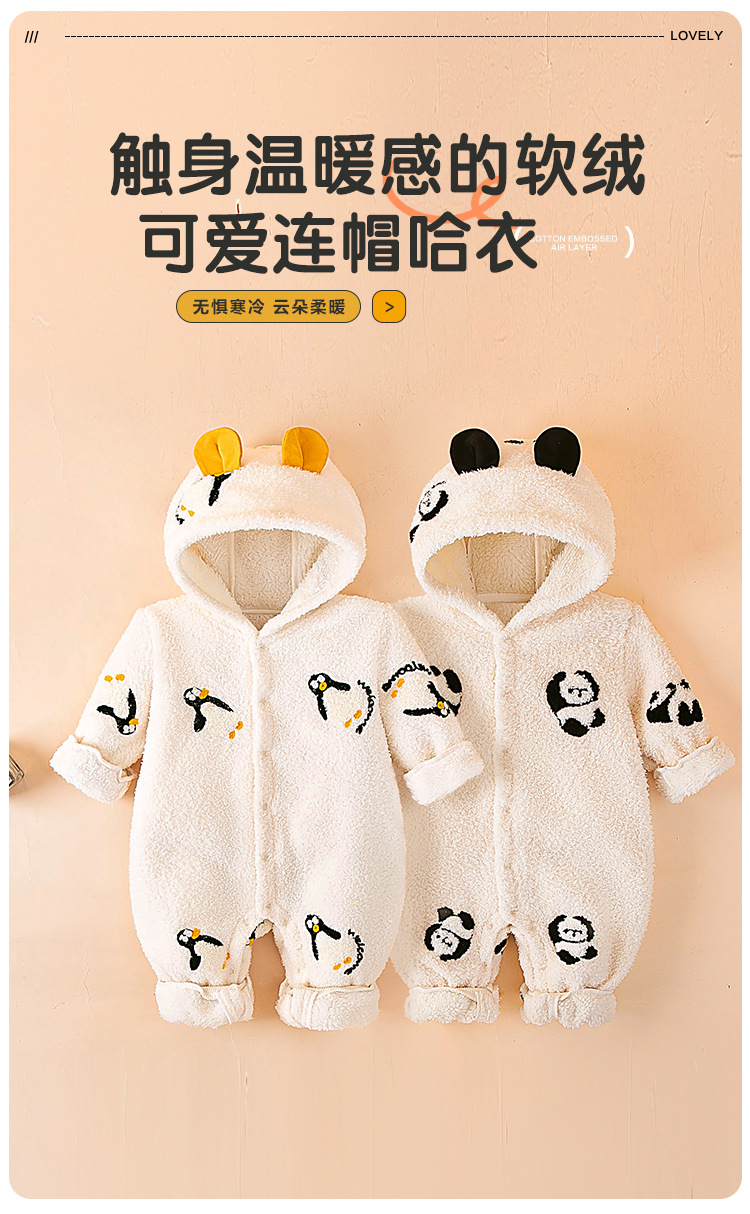 구름 벨벳 점프 수트 아기 후드 슈퍼 귀여운 의상 겨울 두꺼운 아기 옷 등반 옷 따뜻한 옷