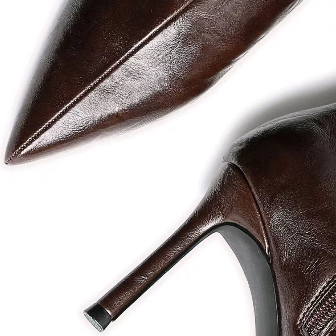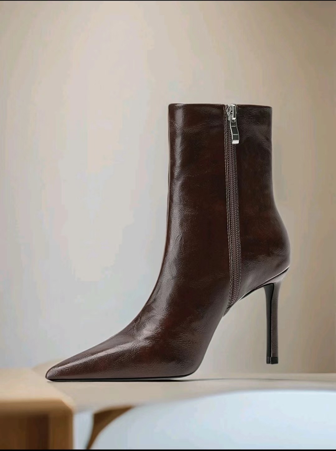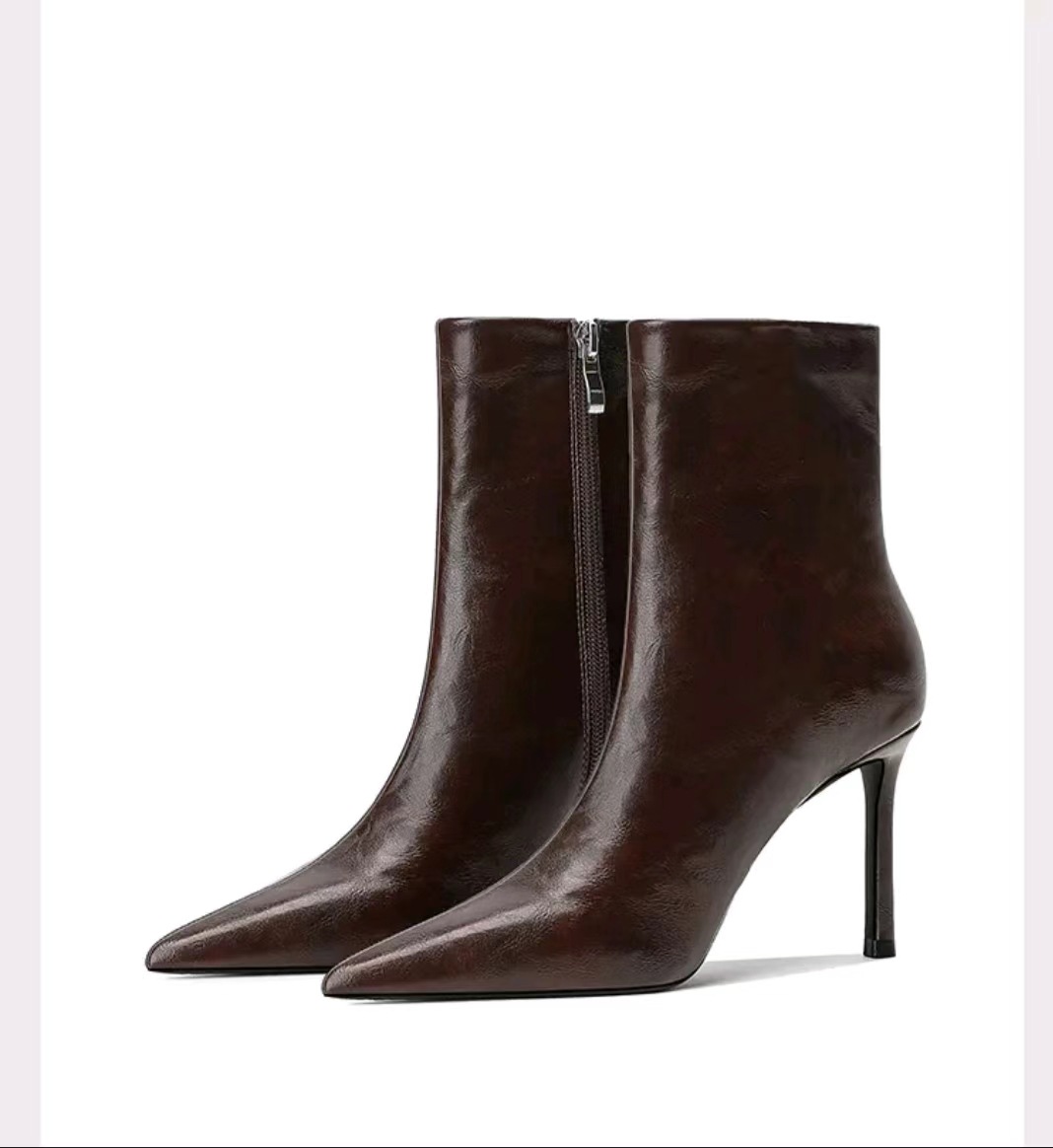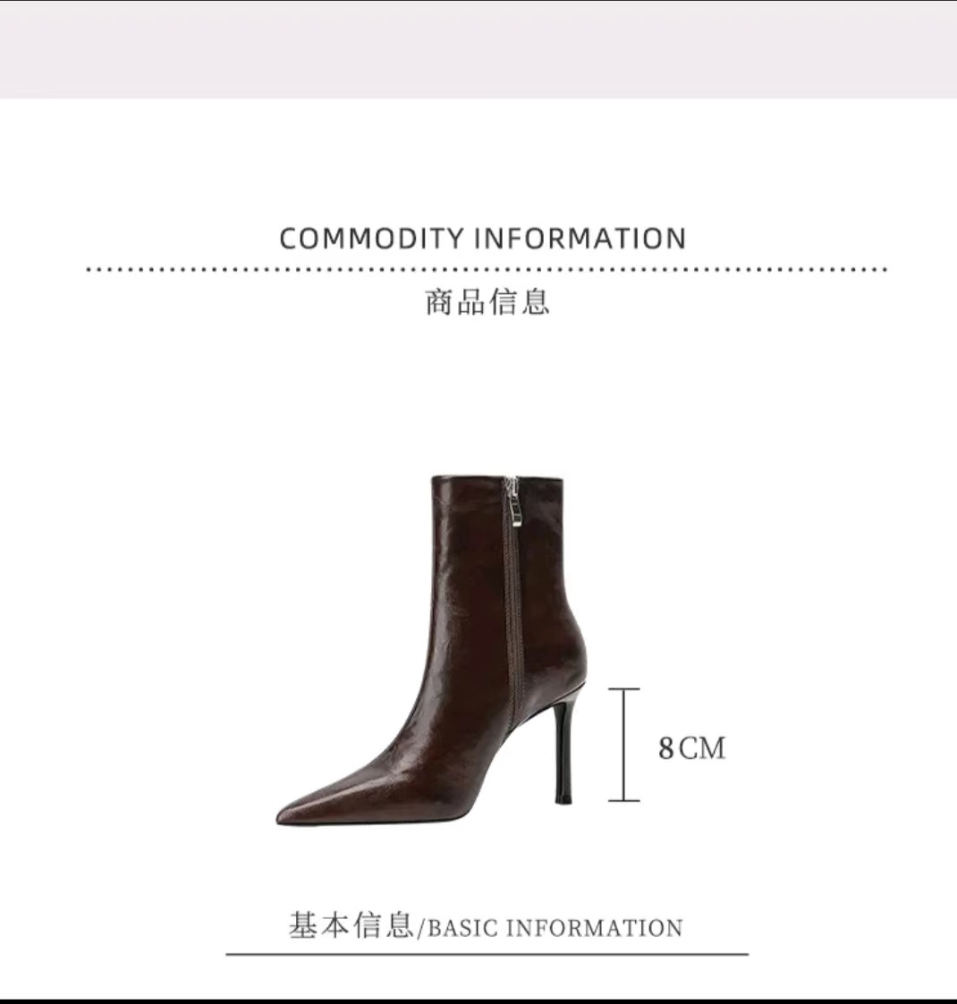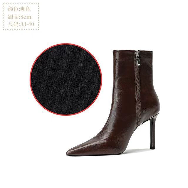 스키니 부츠 여성용 하이힐 발목 부츠 2024 새로운 가을 및 겨울 영국 마틴 부츠 미들 부츠 얇은 뒤꿈치 다크 브라운 싱글 부츠스토어 가기