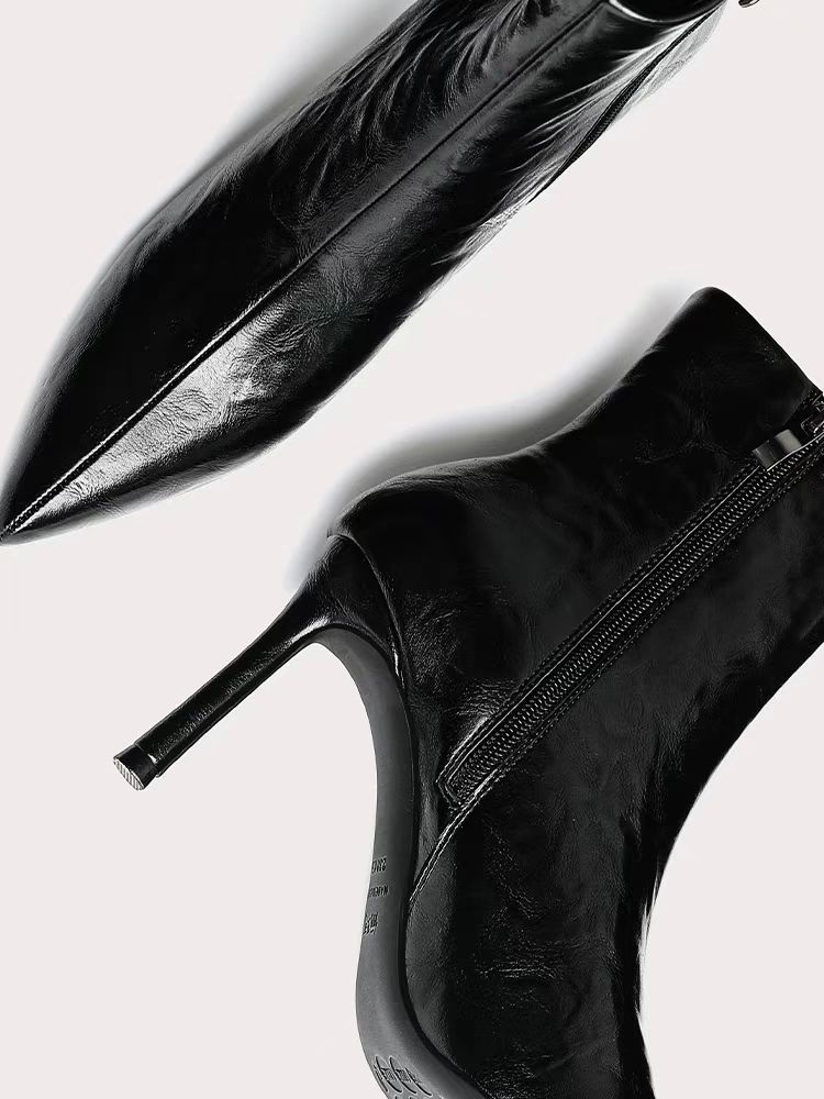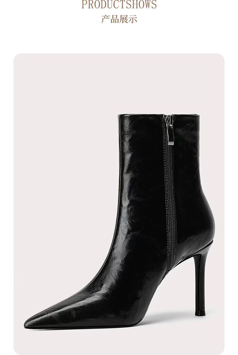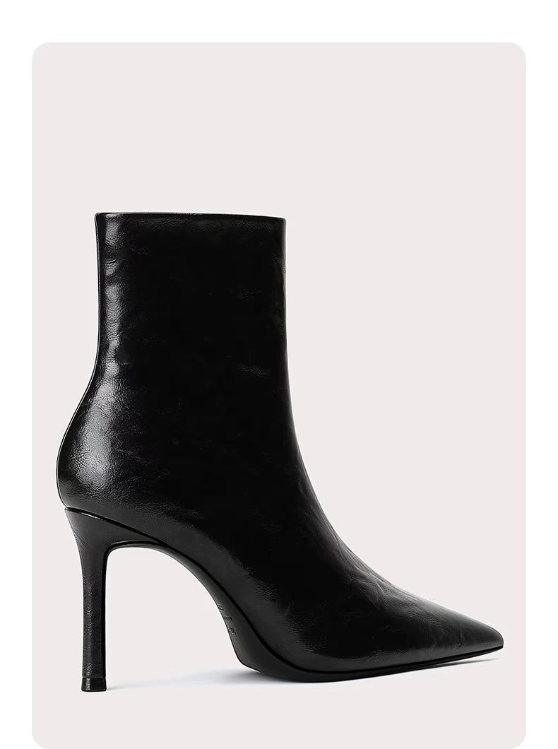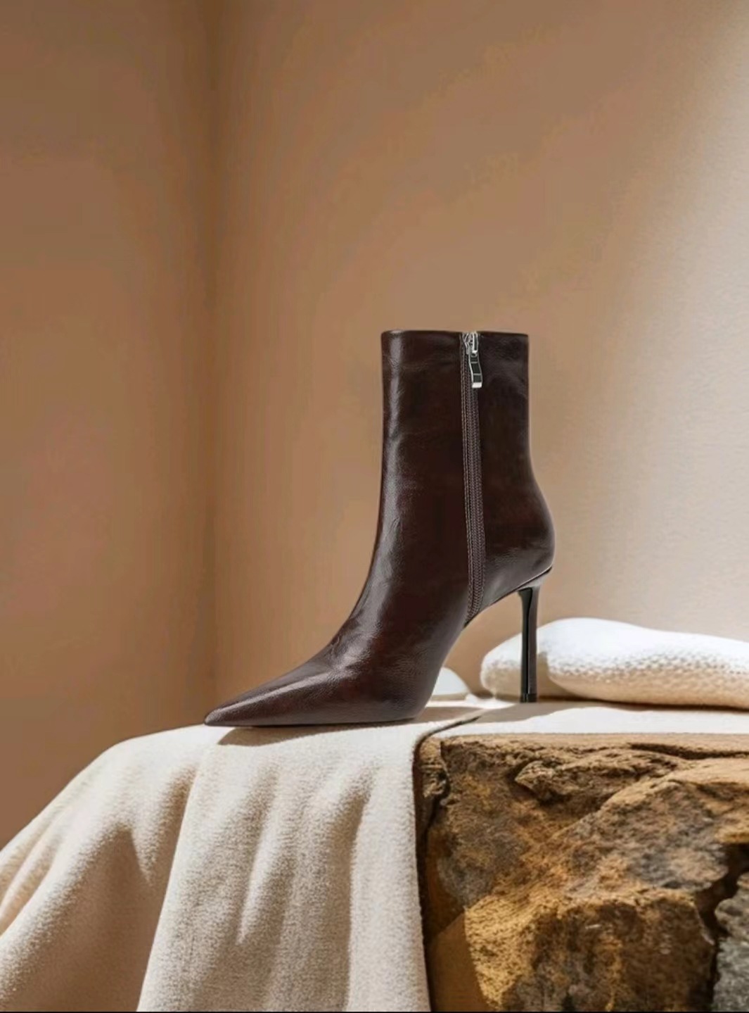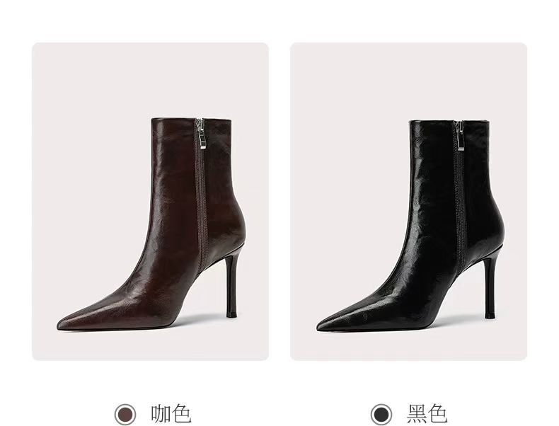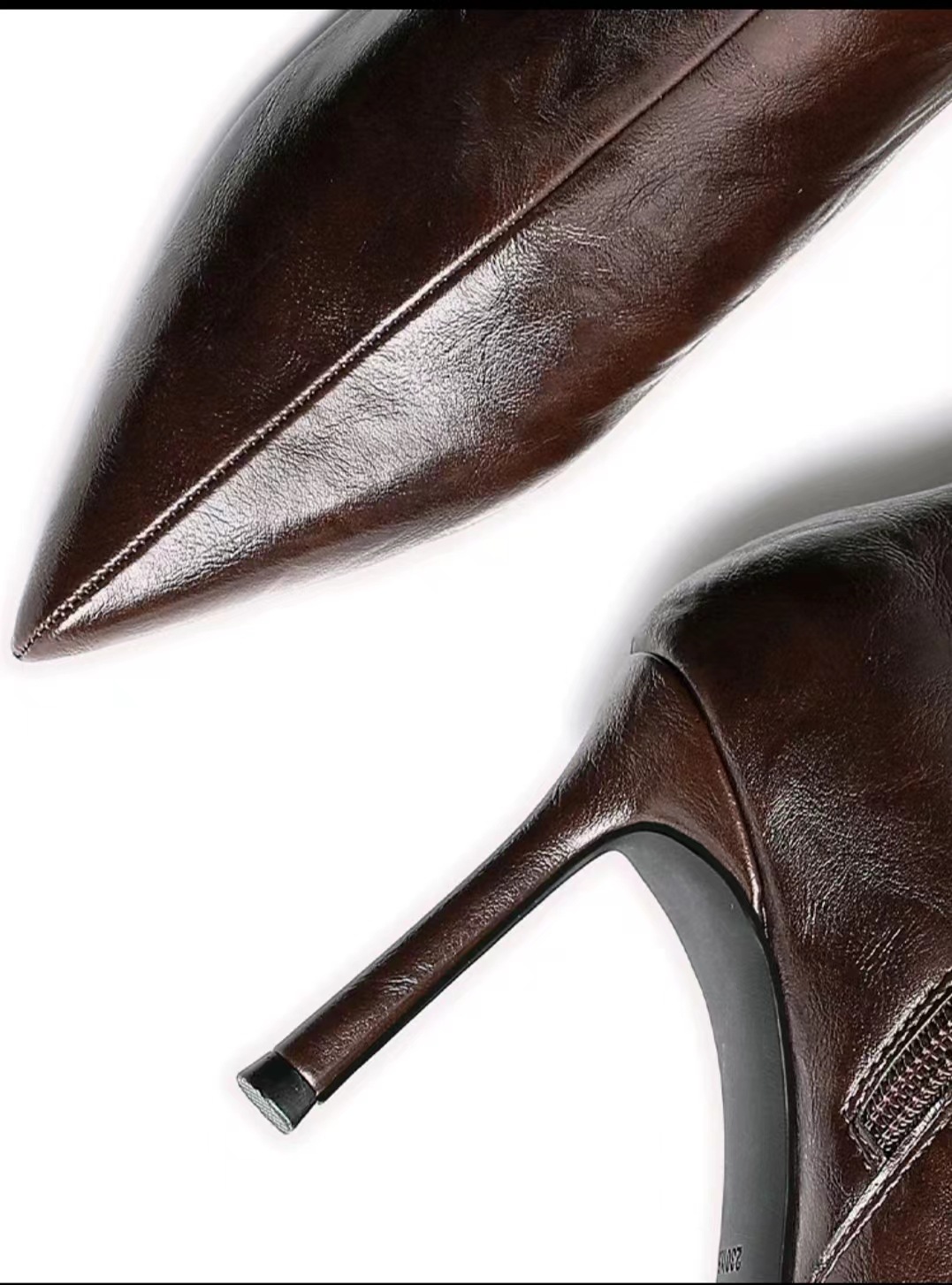 스키니 부츠 여성용 하이힐 발목 부츠 2024 새로운 가을 및 겨울 영국 마틴 부츠 미들 부츠 얇은 뒤꿈치 다크 브라운 싱글 부츠스토어 가기