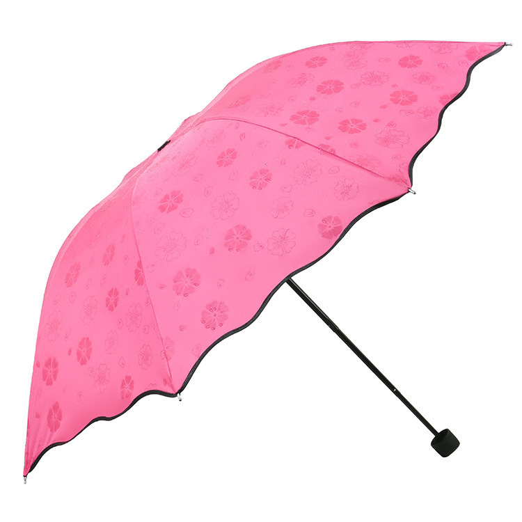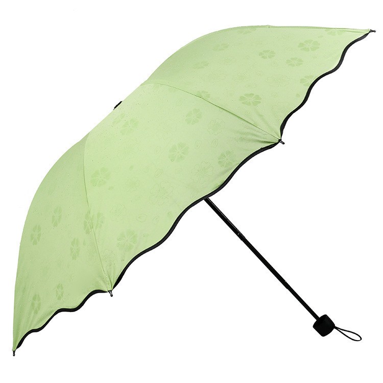 2. 非常神奇,遇水显花伞,下雨天,伞面遇水会显出隐藏的花型图案,伞面晾干花型图案消失,无限次重复显花隐藏,拥有此伞,您就是一位魔术大师,让您的周围充满羡慕和惊叹的眼光!