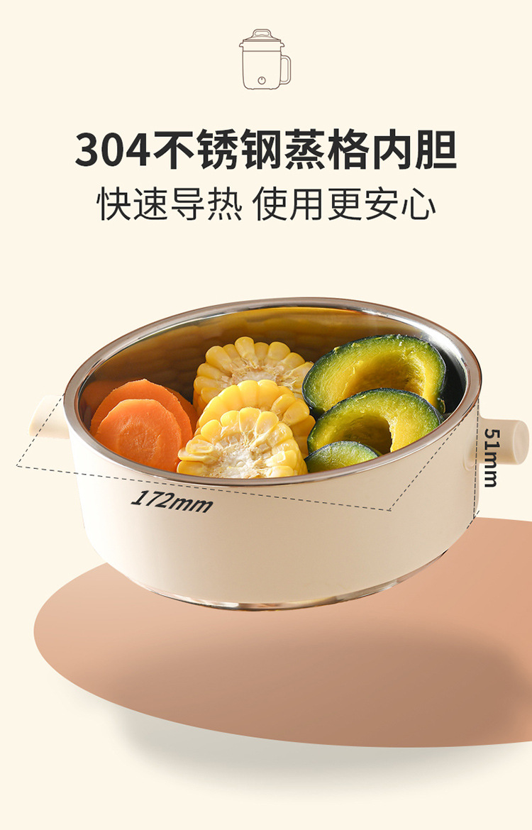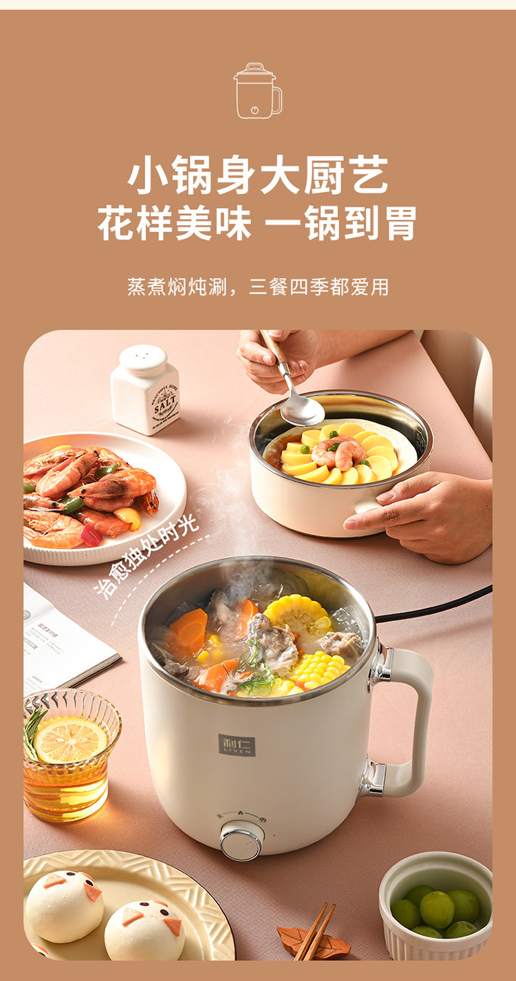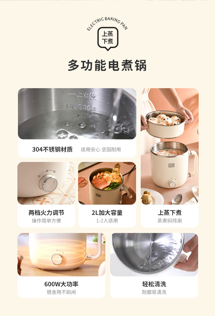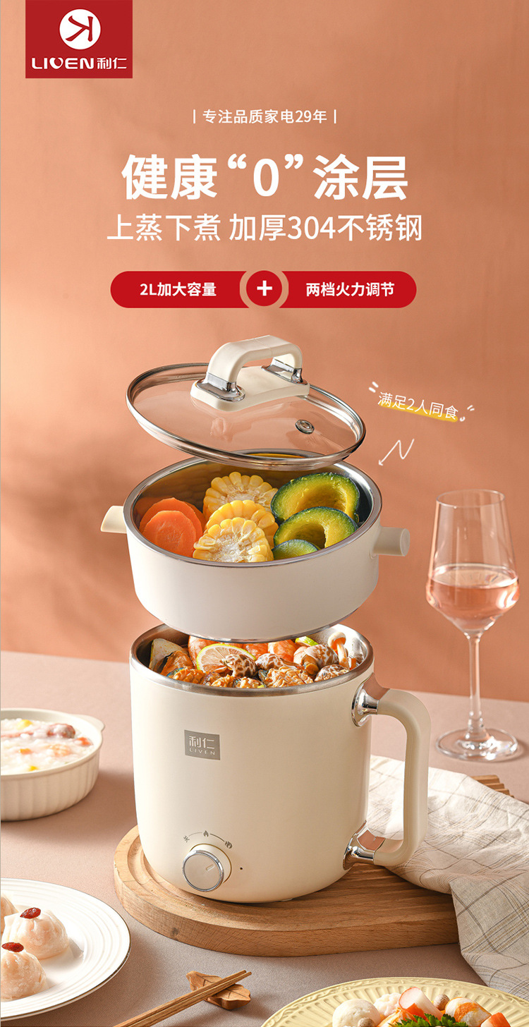 리렌 DHG-B205 스팀 및 조리 일체형 소형 전기 냄비 스테인리스 전기 냄비 학생용 전기 냄비 전기 스팀 냄비