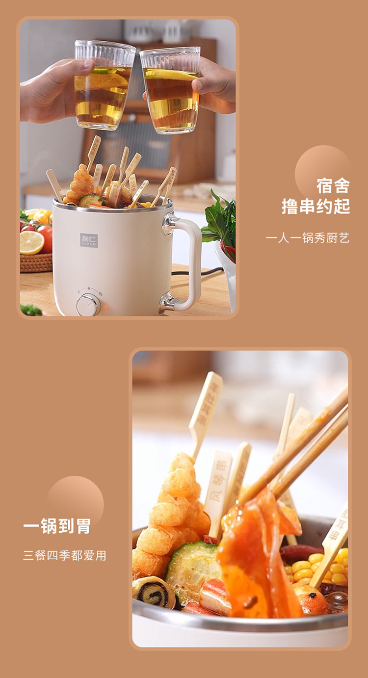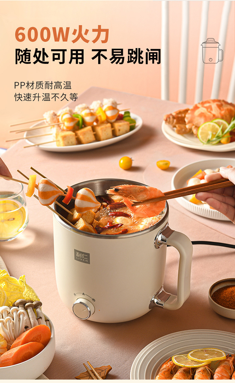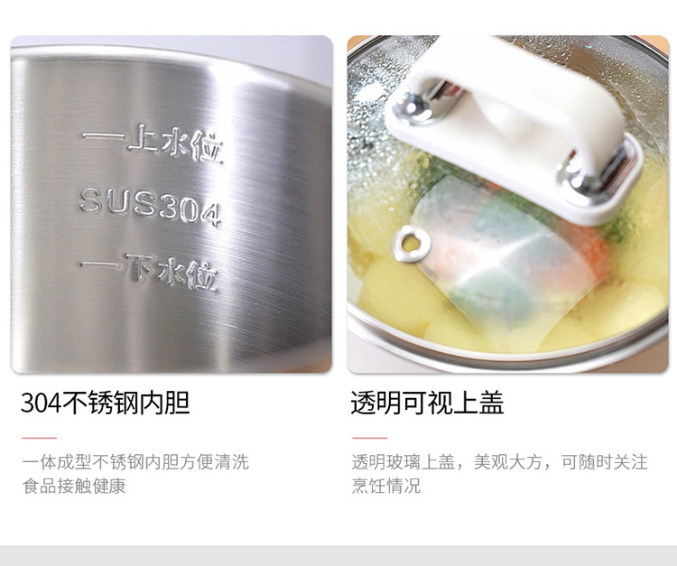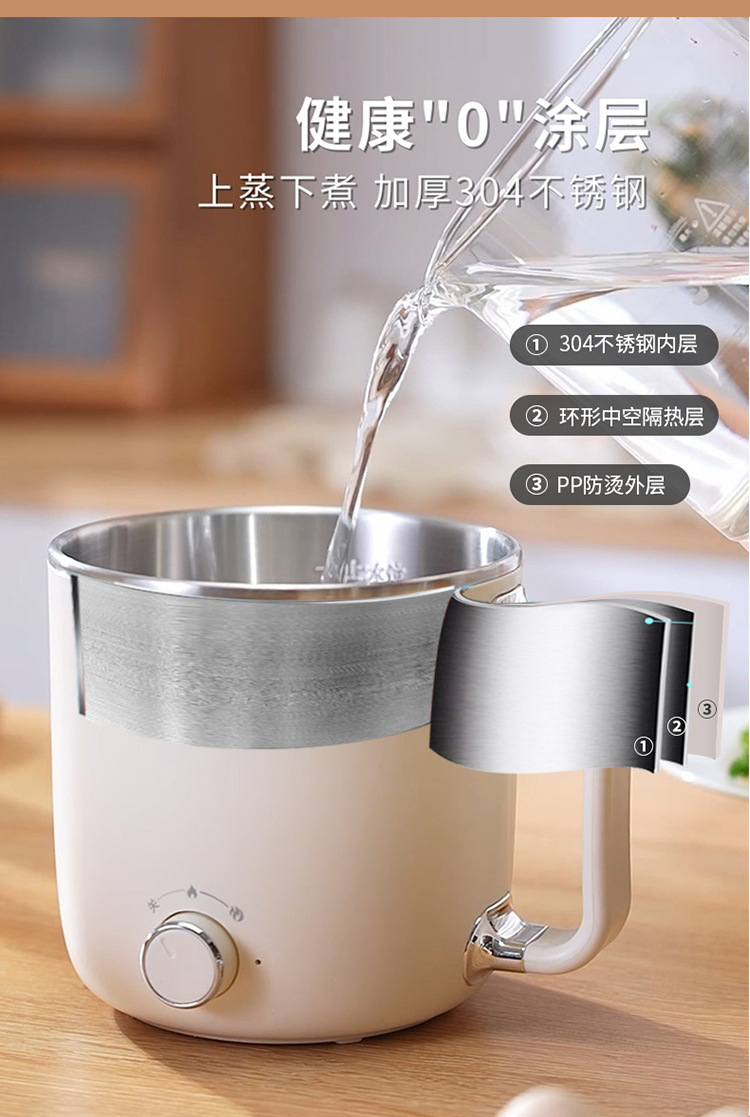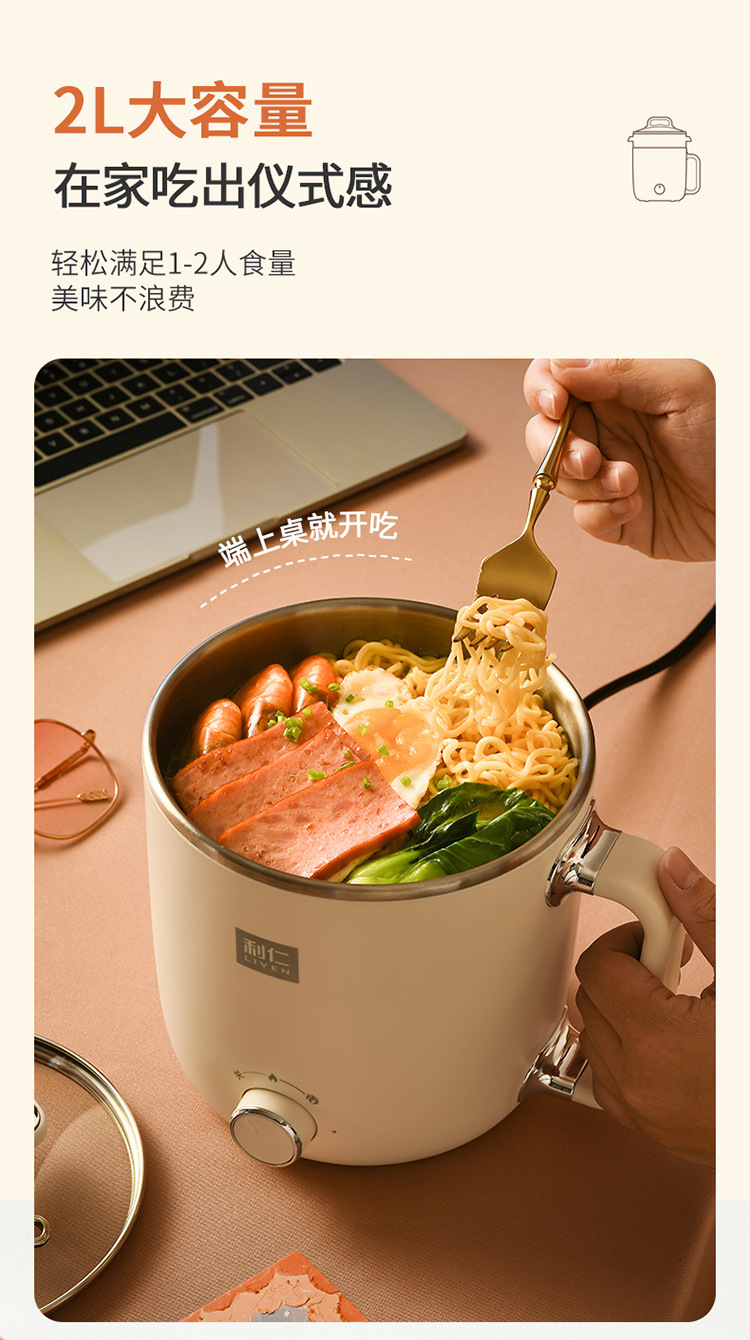 리렌 DHG-B205 스팀 및 조리 일체형 소형 전기 냄비 스테인리스 전기 냄비 학생용 전기 냄비 전기 스팀 냄비