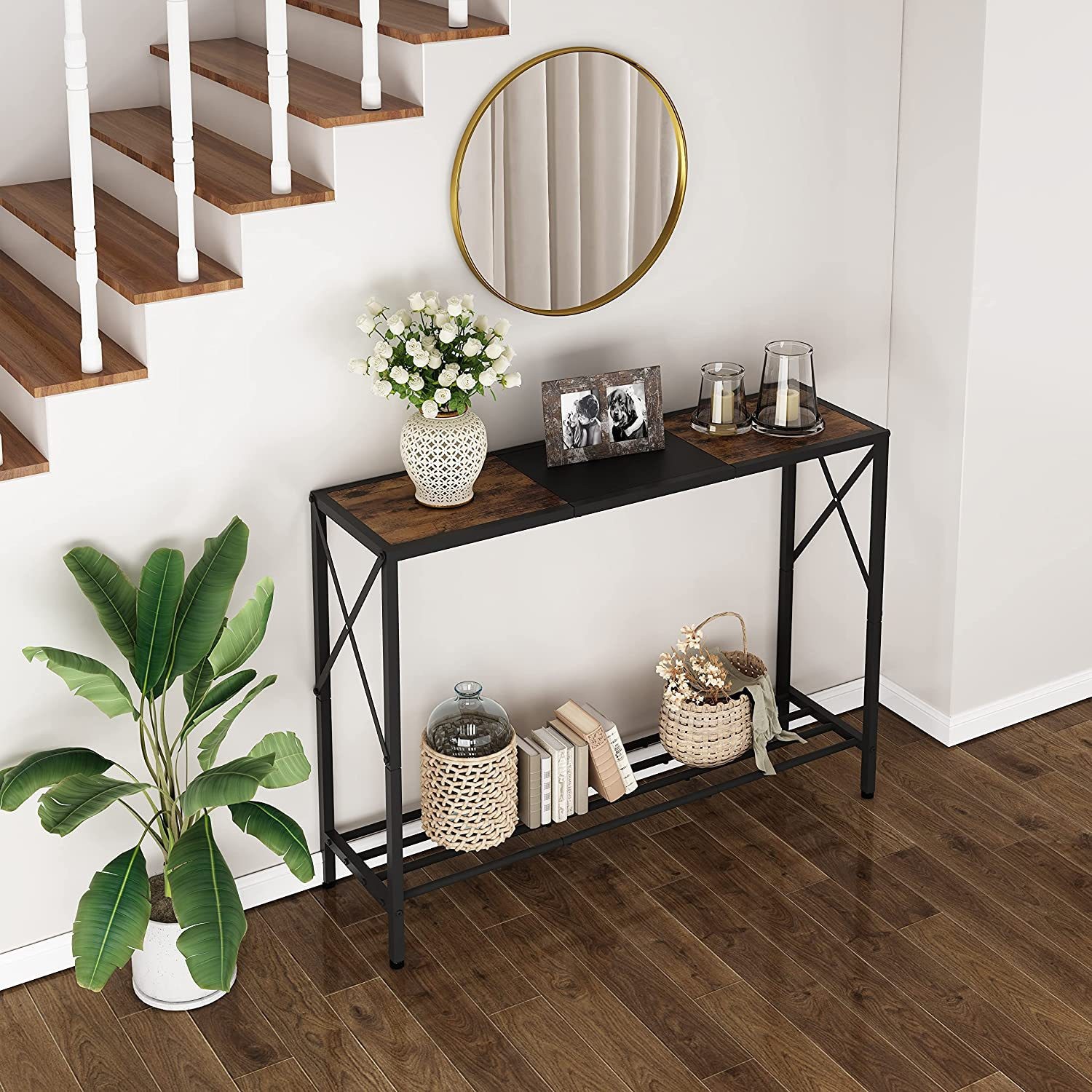 아마존 거실 복도 소파 사이드 테이블 욕실 사이드 테이블 복고풍 2 층 TV 보관 현관 테이블