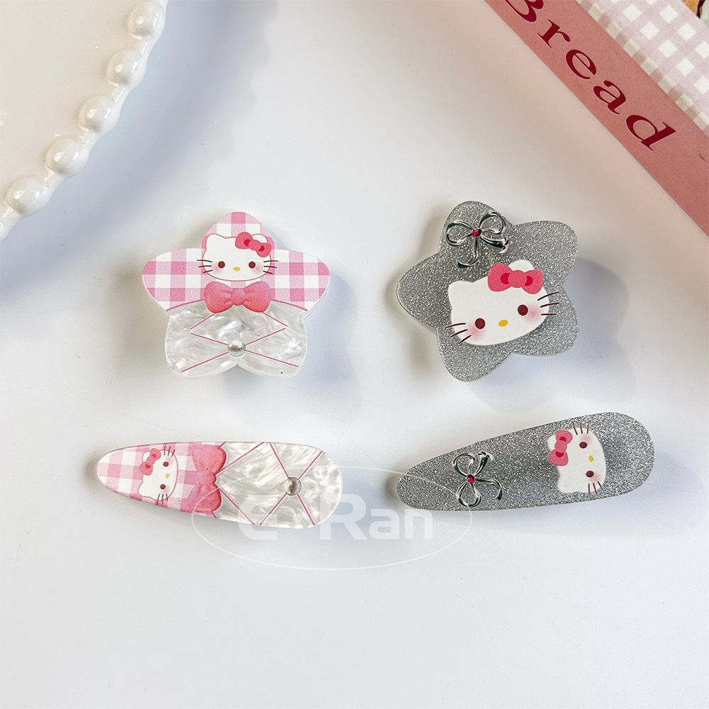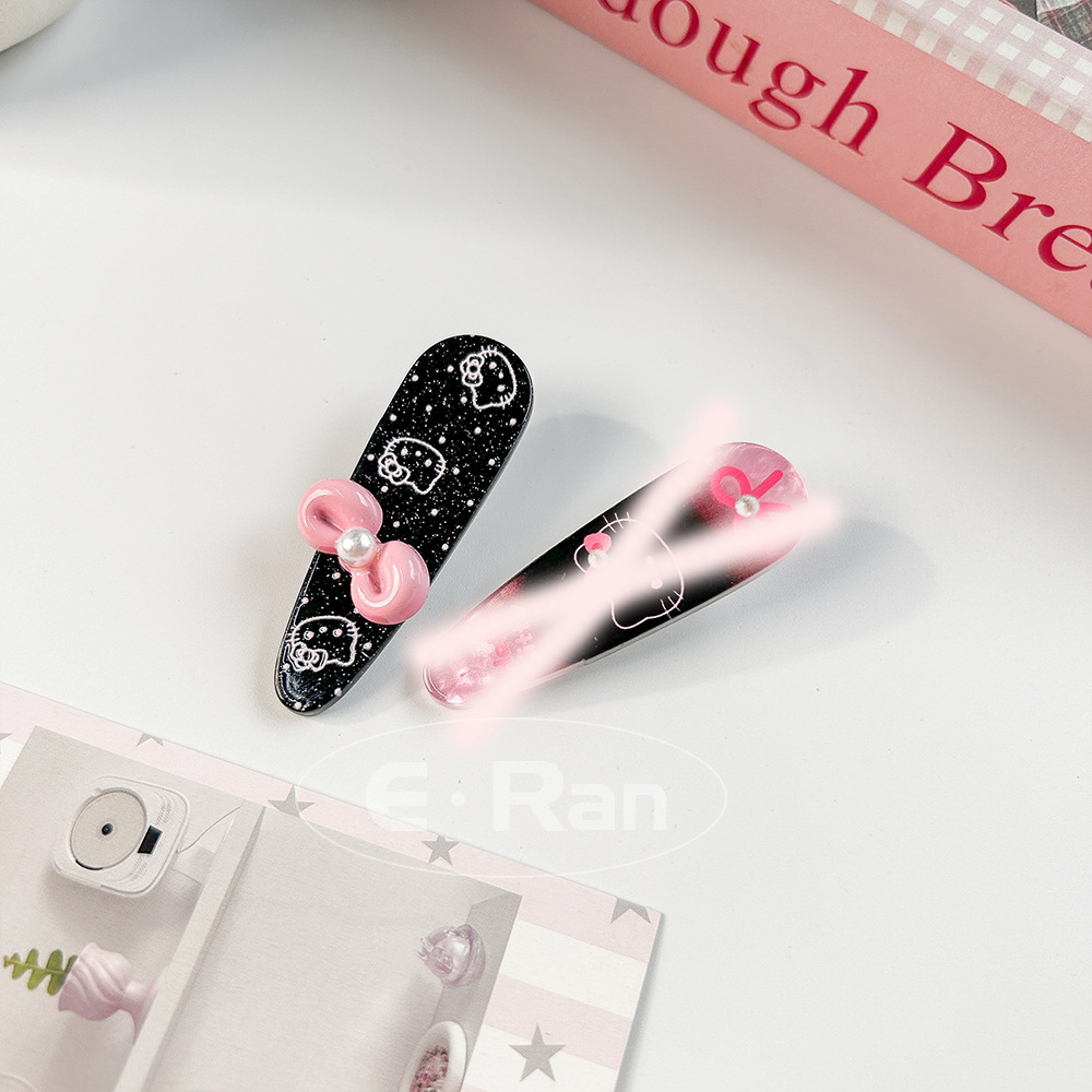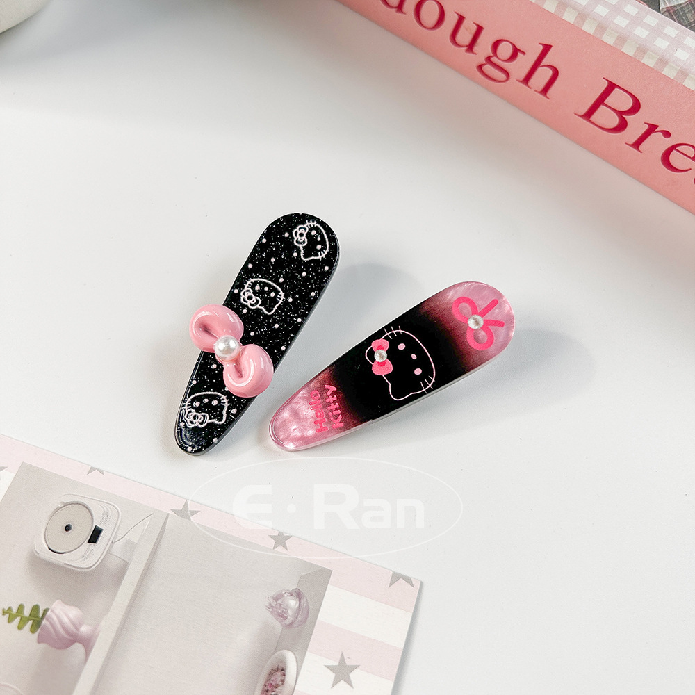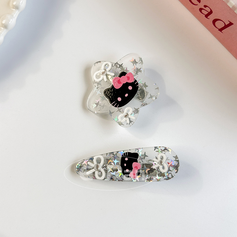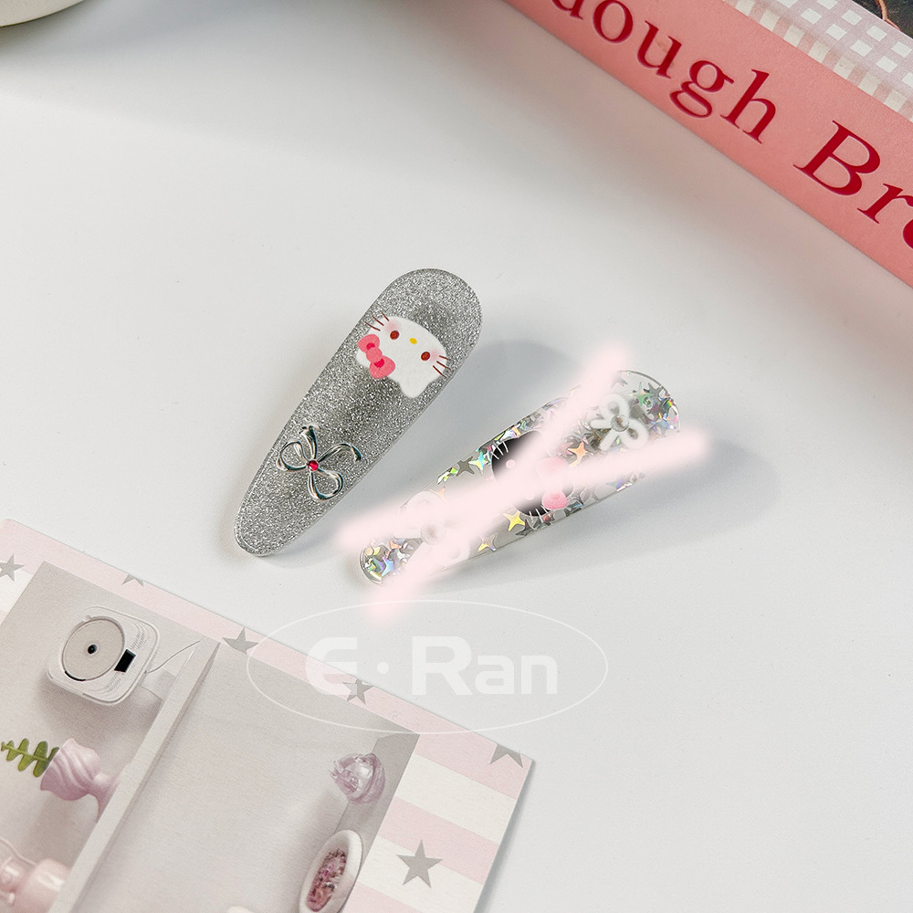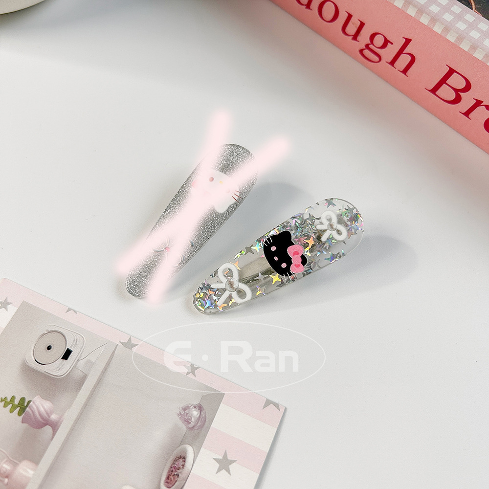 일본 스타일 달콤한 활 고양이 머리핀 달콤한 멋진 스타일 소녀 만화 머리핀 실버 파우더 스파클링 뱅이 헤어핀 헤드웨어