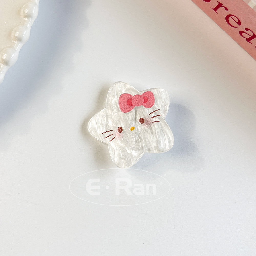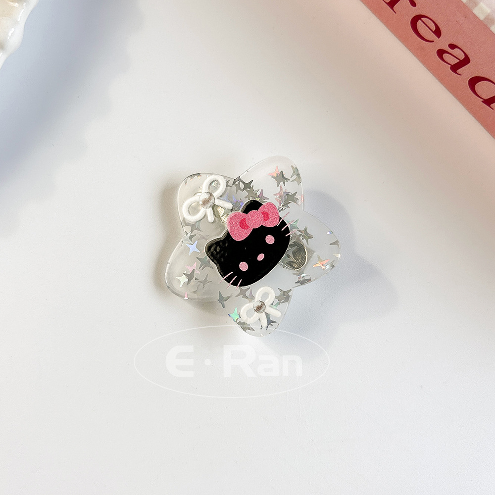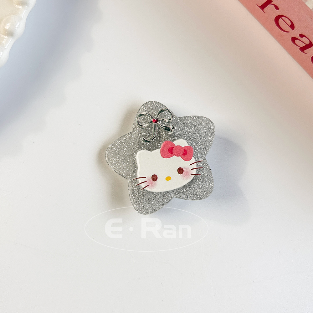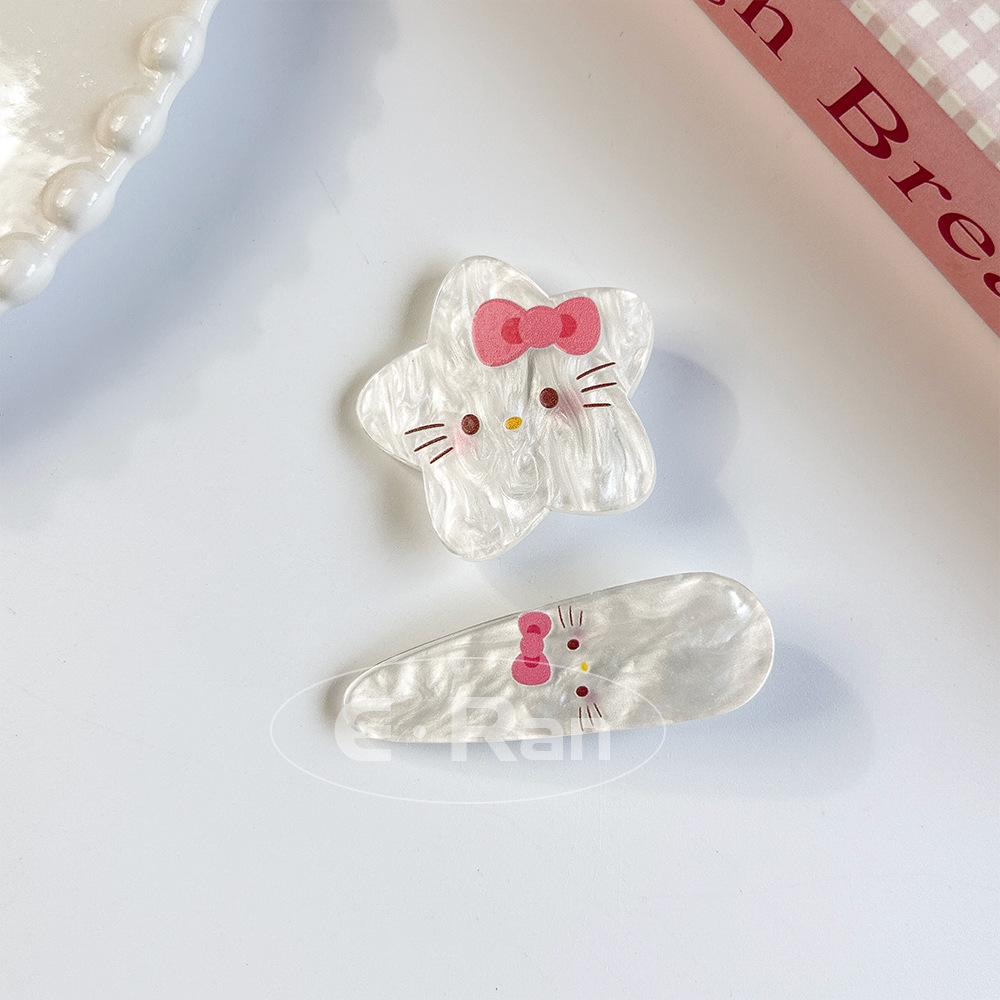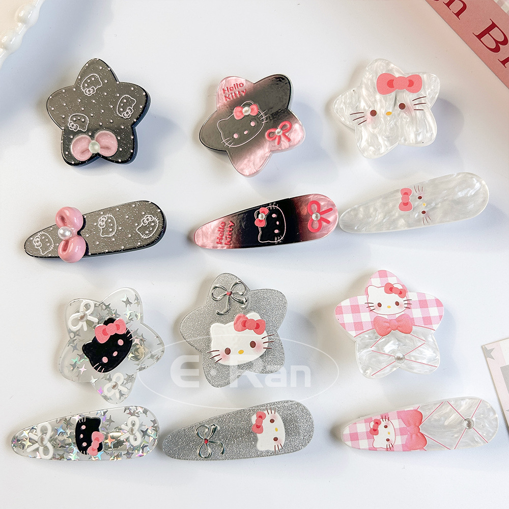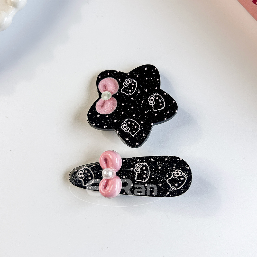 일본 스타일 달콤한 활 고양이 머리핀 달콤한 멋진 스타일 소녀 만화 머리핀 실버 파우더 스파클링 뱅이 헤어핀 헤드웨어