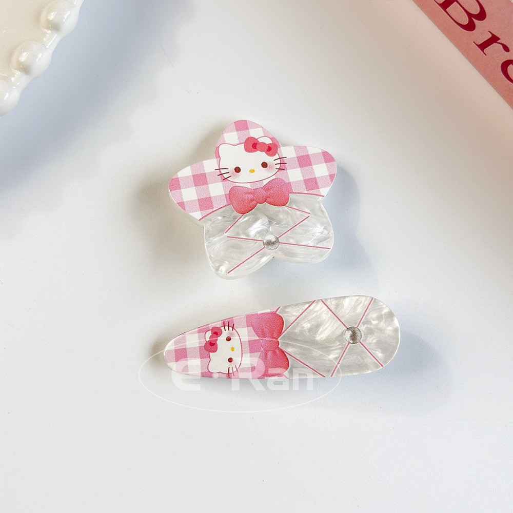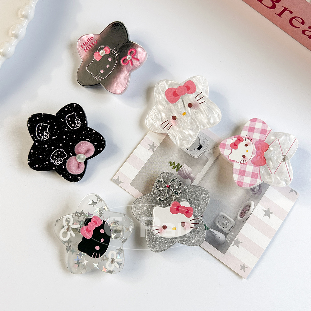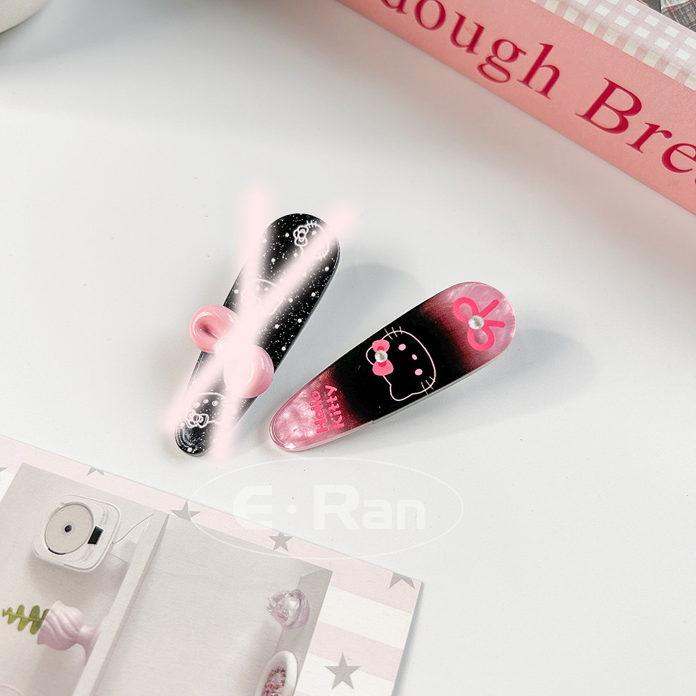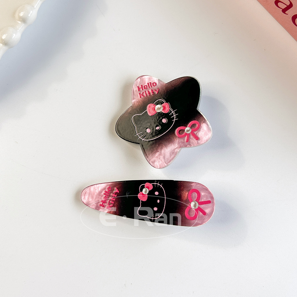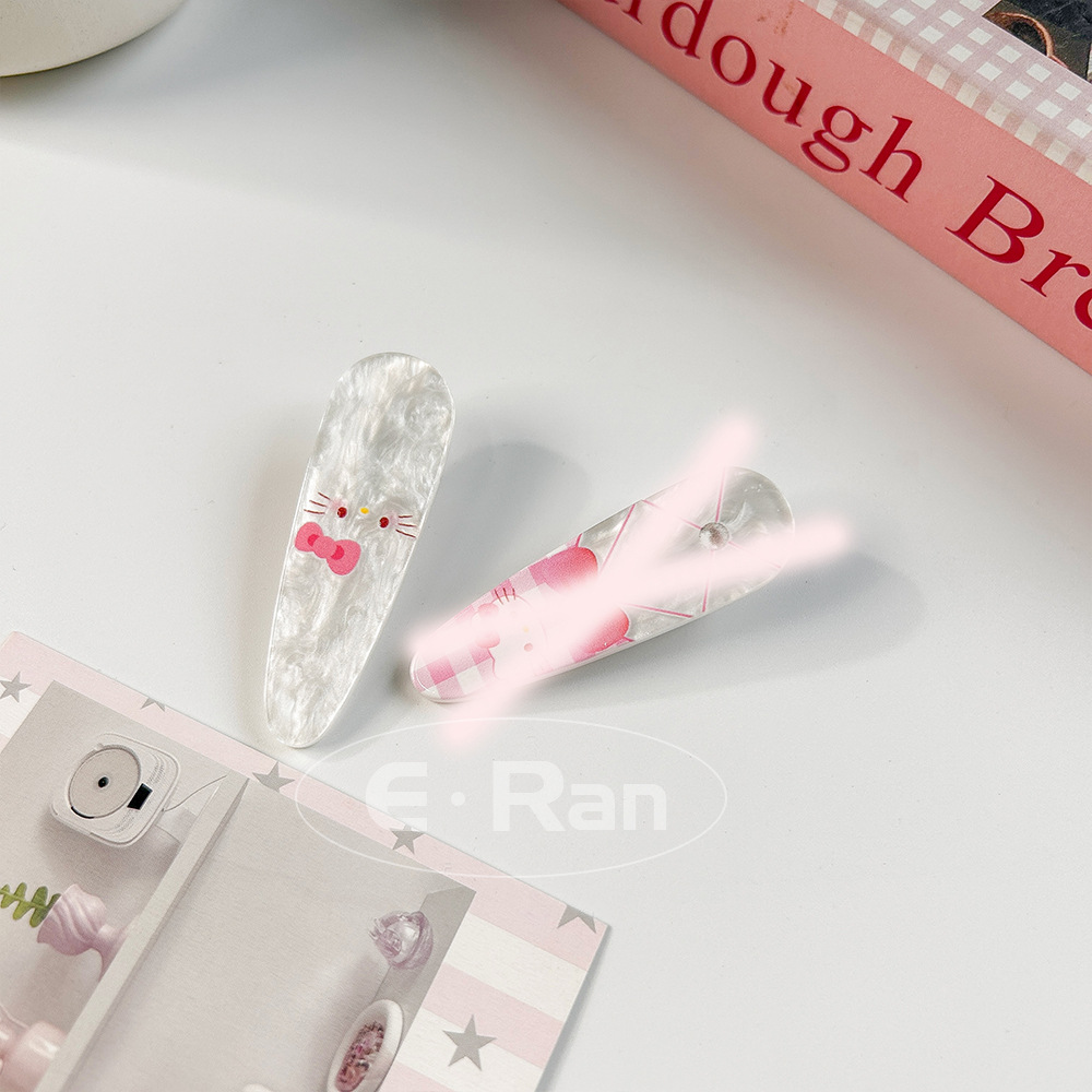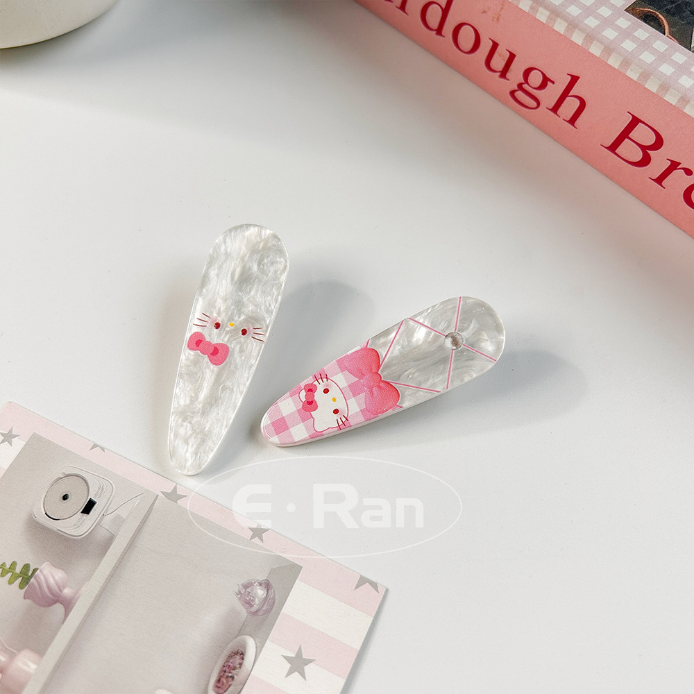 일본 스타일 달콤한 활 고양이 머리핀 달콤한 멋진 스타일 소녀 만화 머리핀 실버 파우더 스파클링 뱅이 헤어핀 헤드웨어