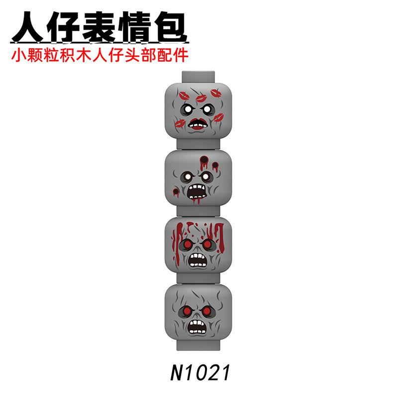 빌딩 블록, 좀비, 머리 표현 부품, 장난감 가방 N1018-1025 작은 입자를위한 대외 무역