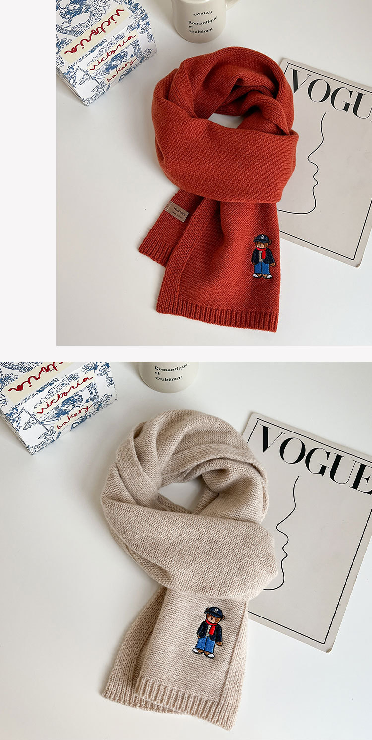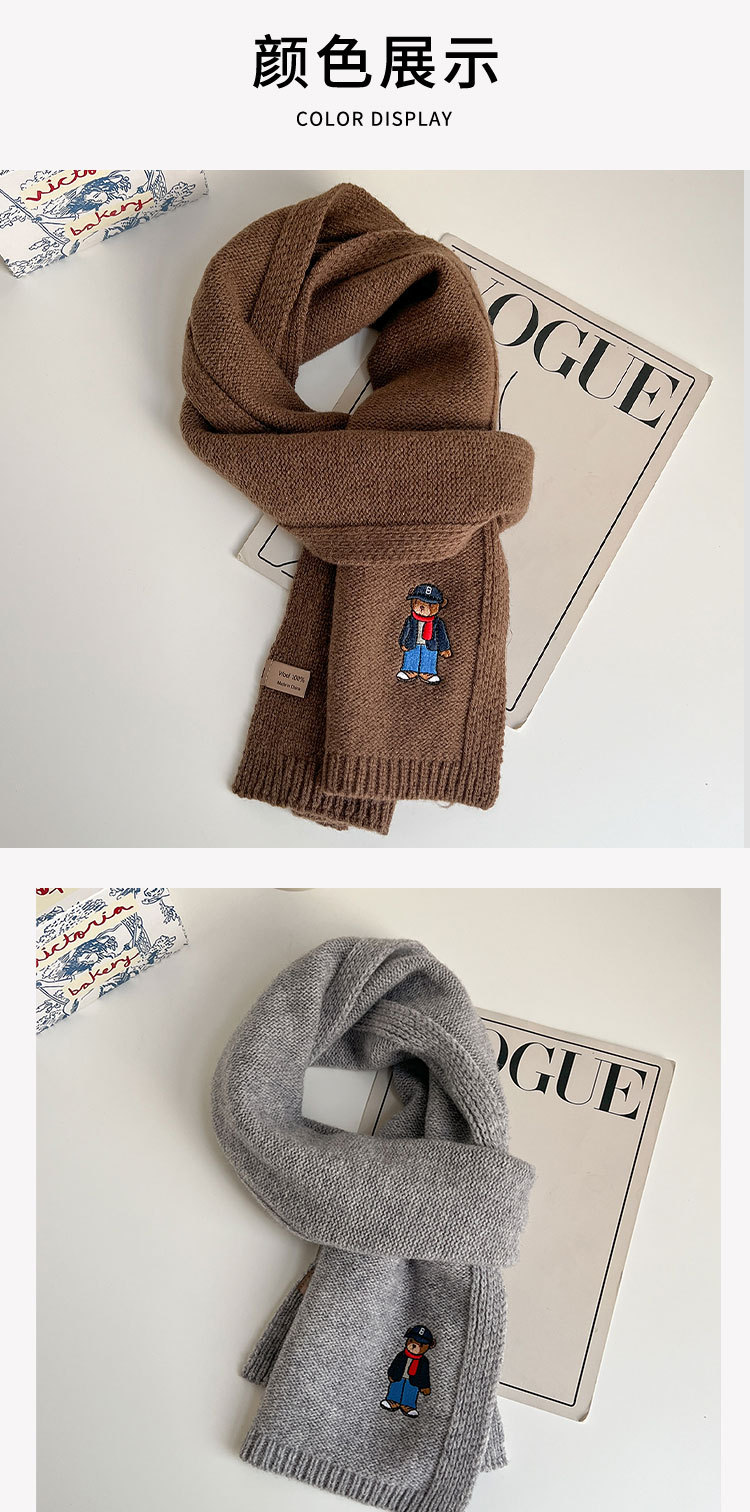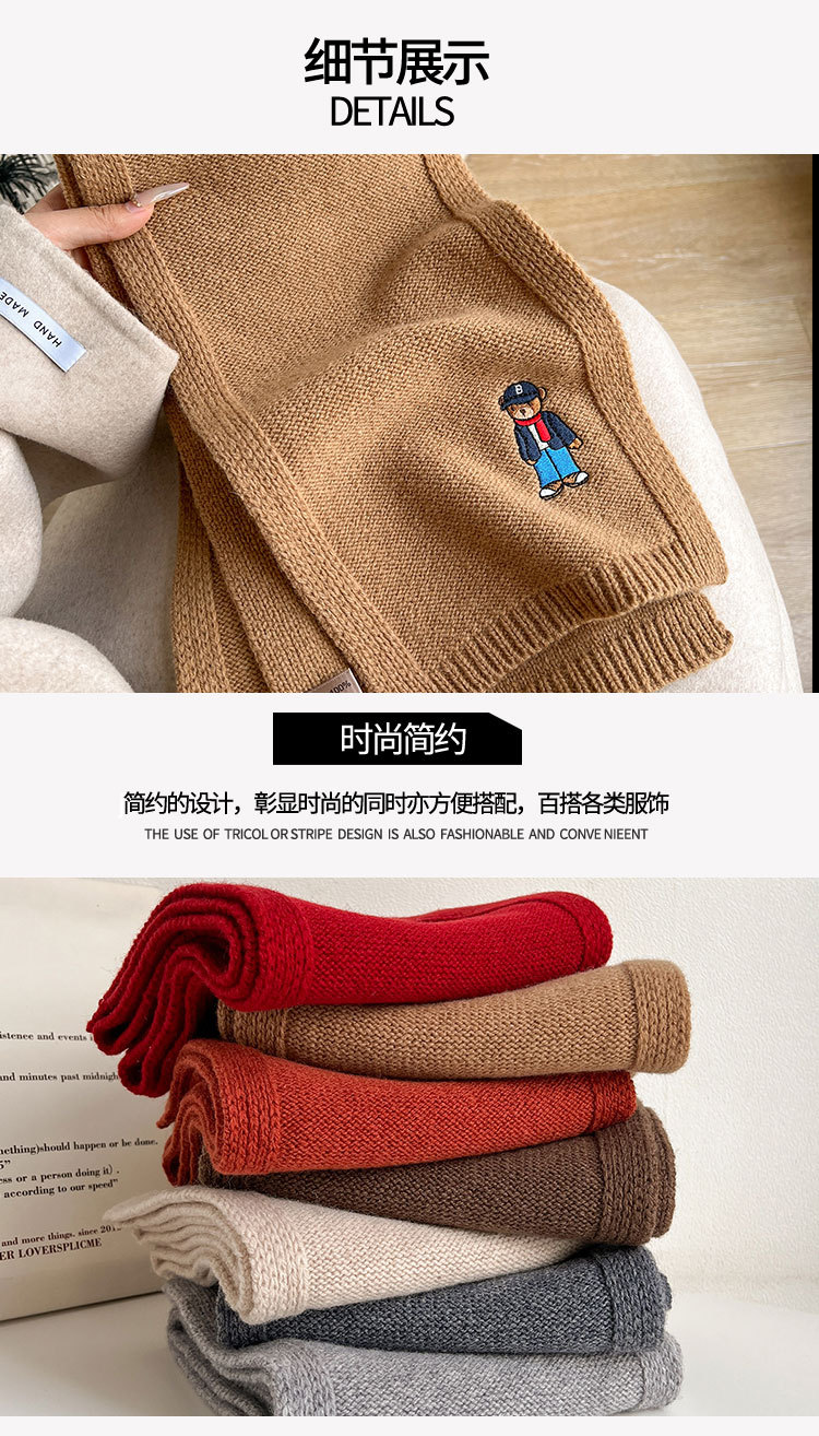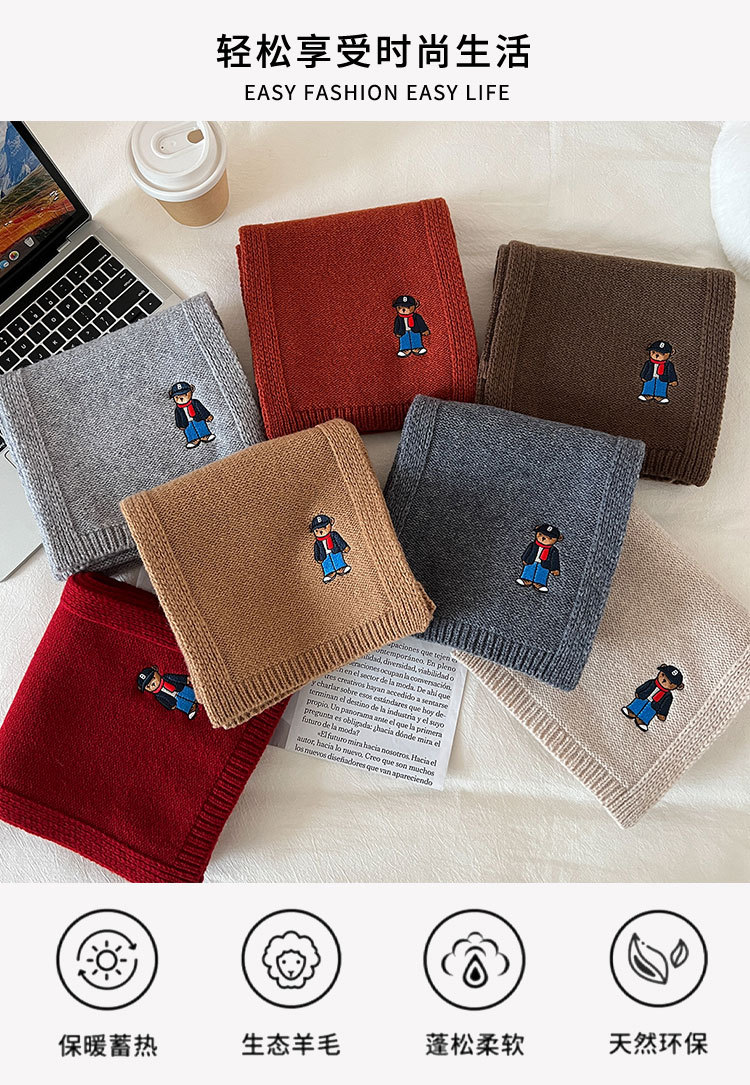 100 순수 양모 스카프 만화 자수 곰 스카프 성인 어린이 두꺼운 가을과 겨울 귀여운 새 스카프스토어 가기