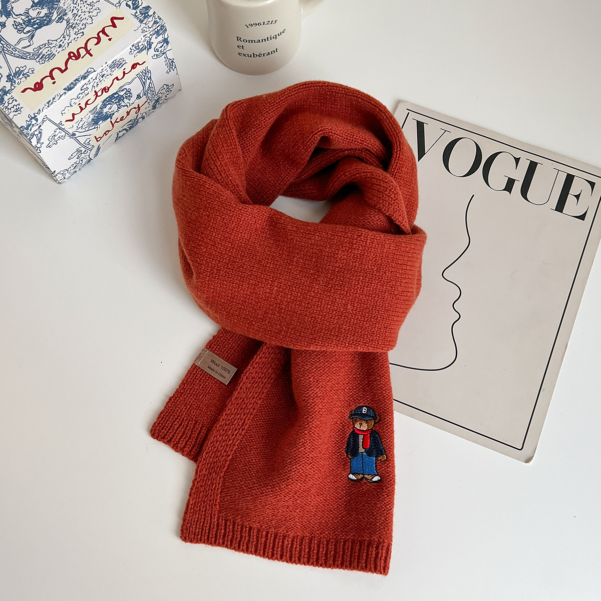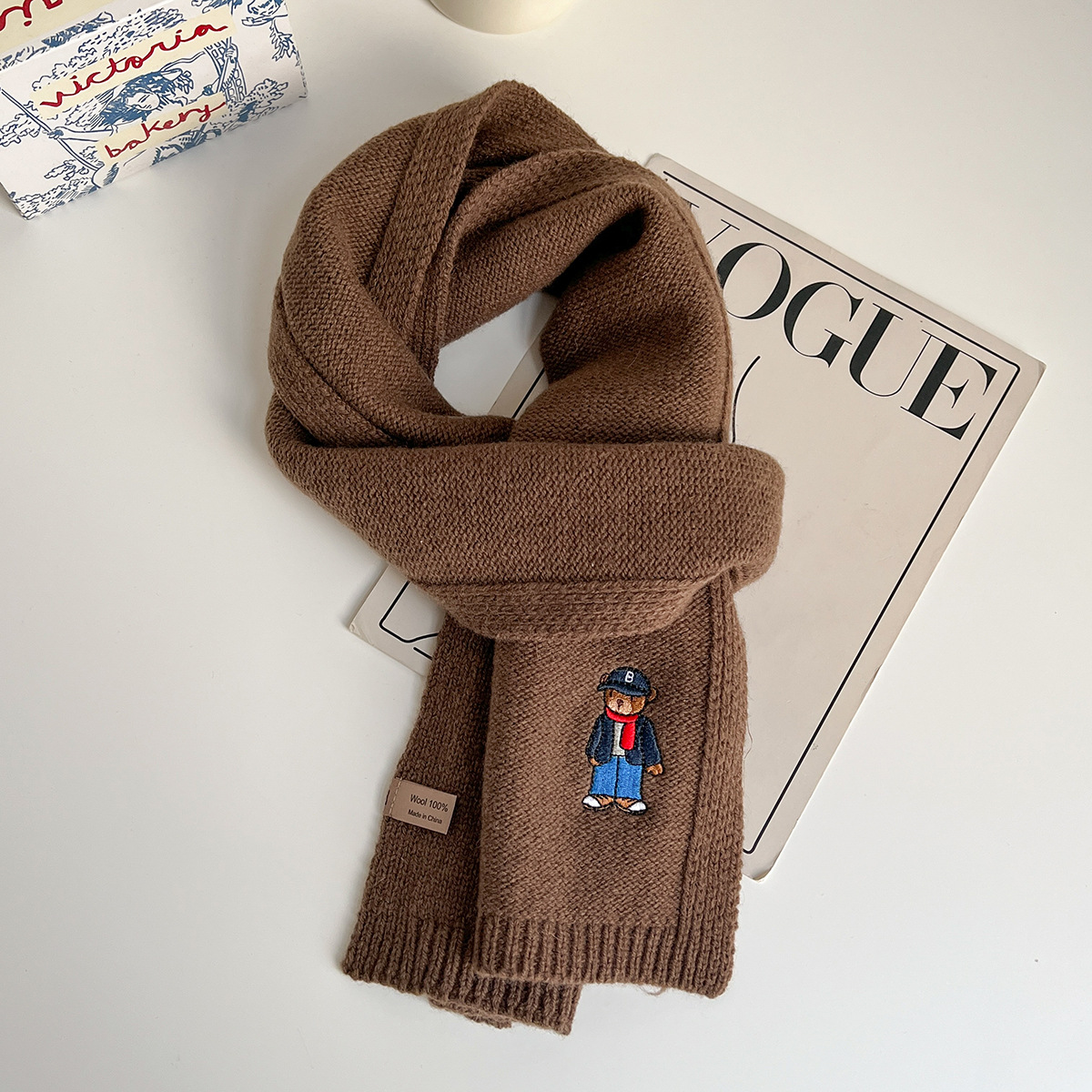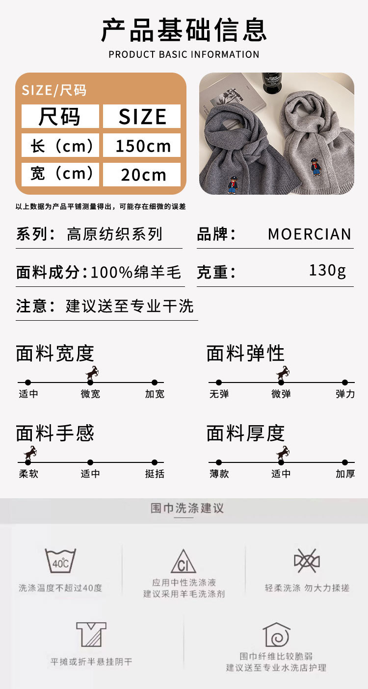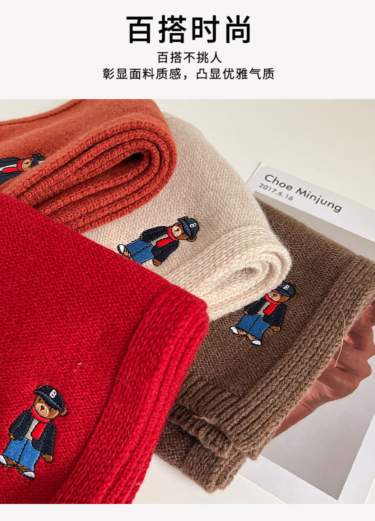 100 순수 양모 스카프 만화 자수 곰 스카프 성인 어린이 두꺼운 가을과 겨울 귀여운 새 스카프스토어 가기