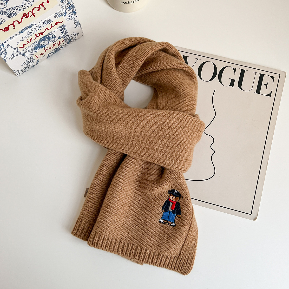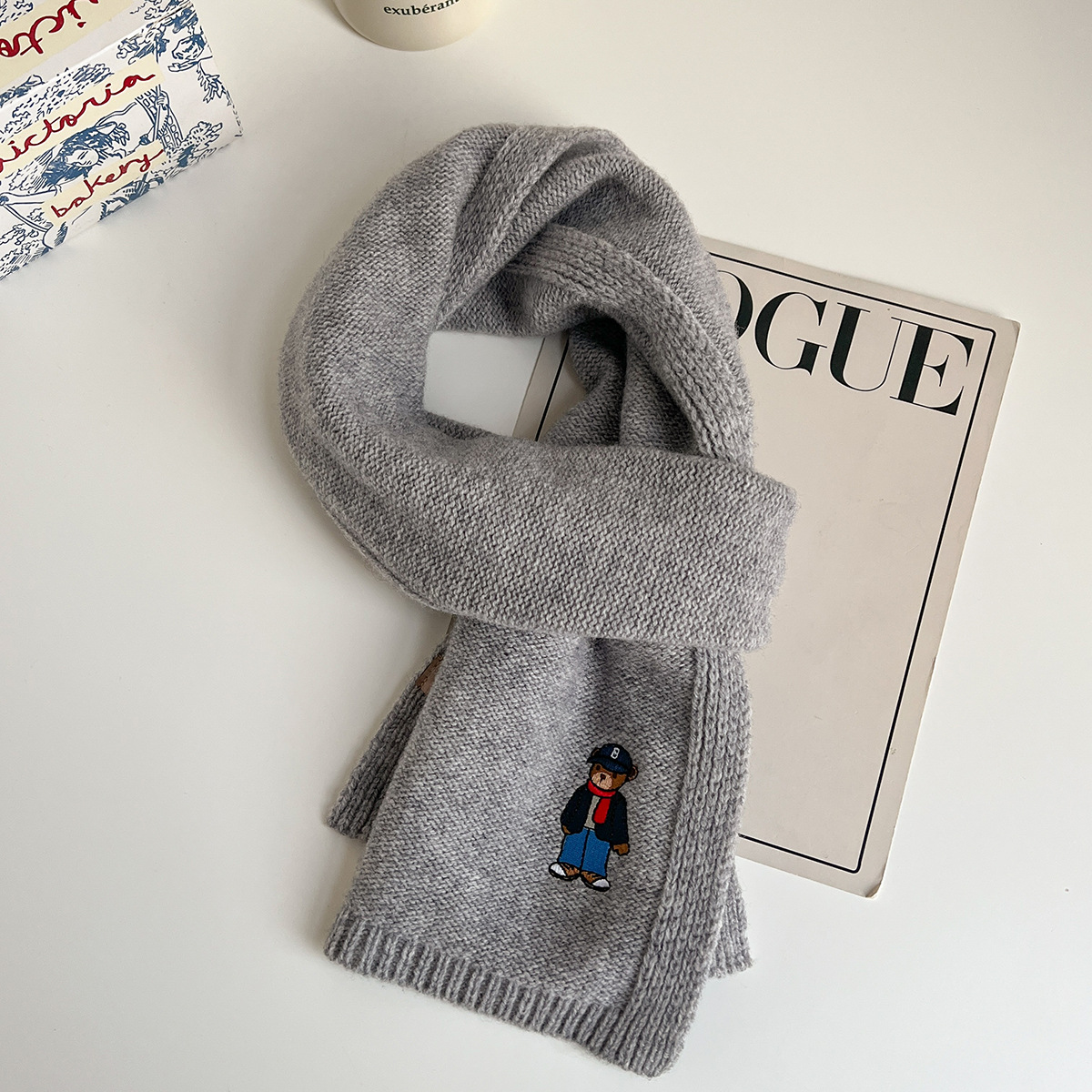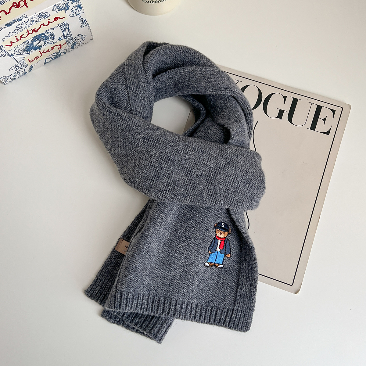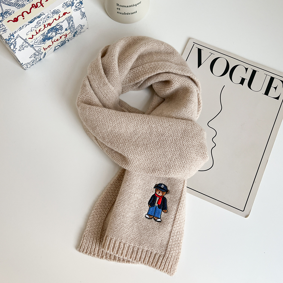 100 순수 양모 스카프 만화 자수 곰 스카프 성인 어린이 두꺼운 가을과 겨울 귀여운 새 스카프스토어 가기