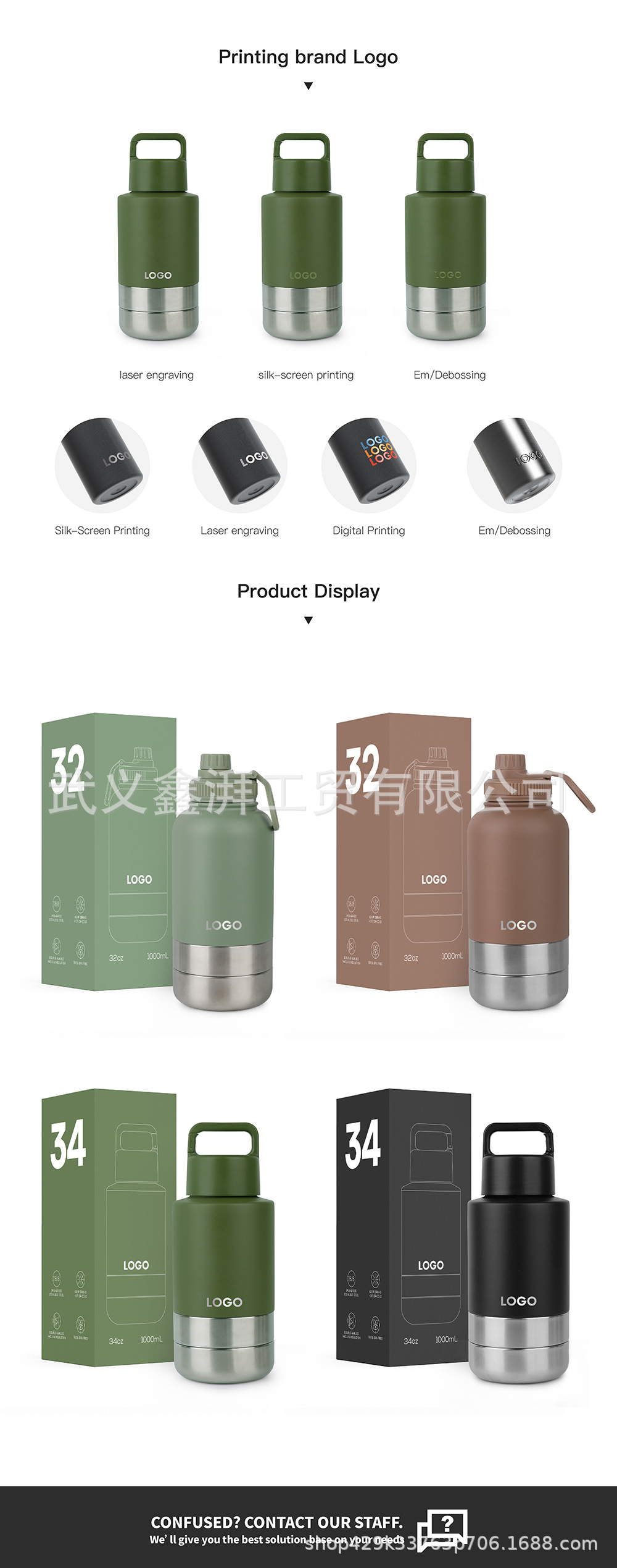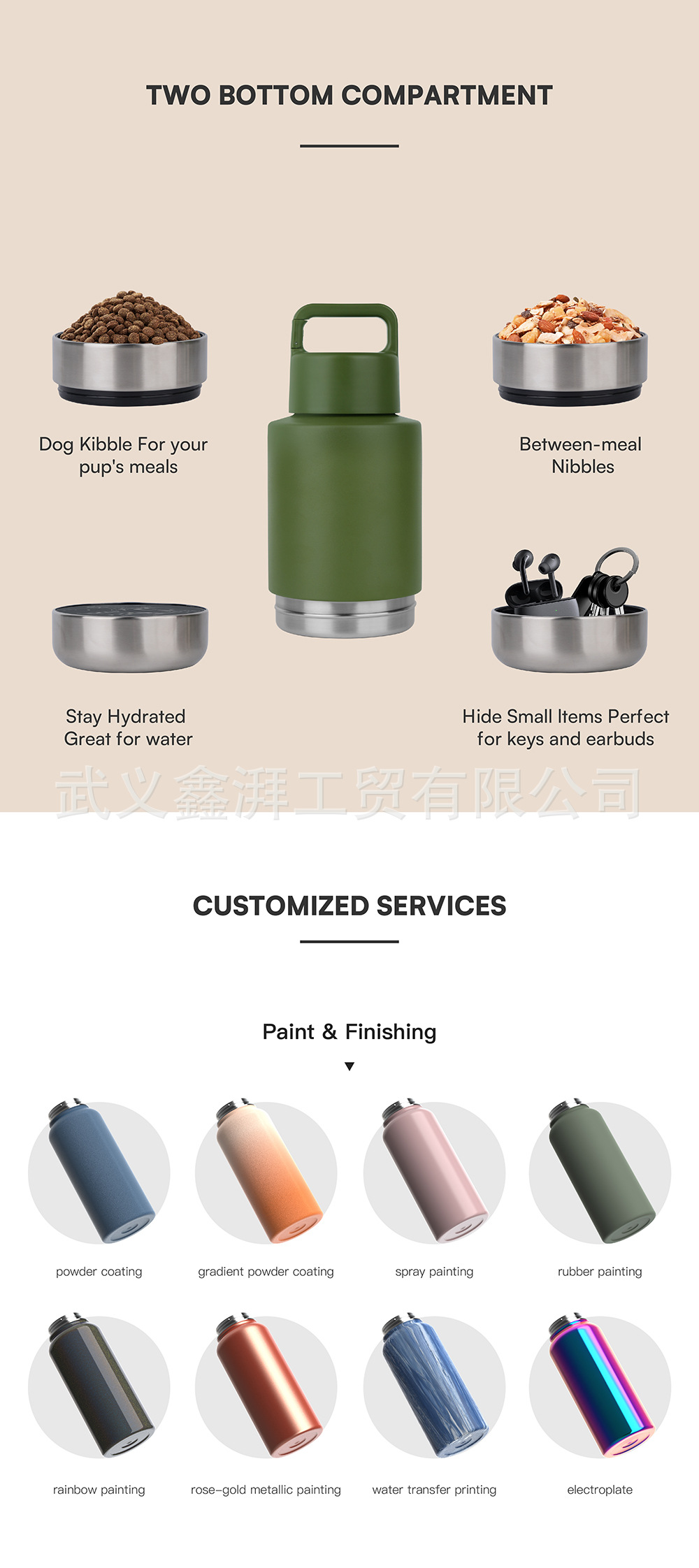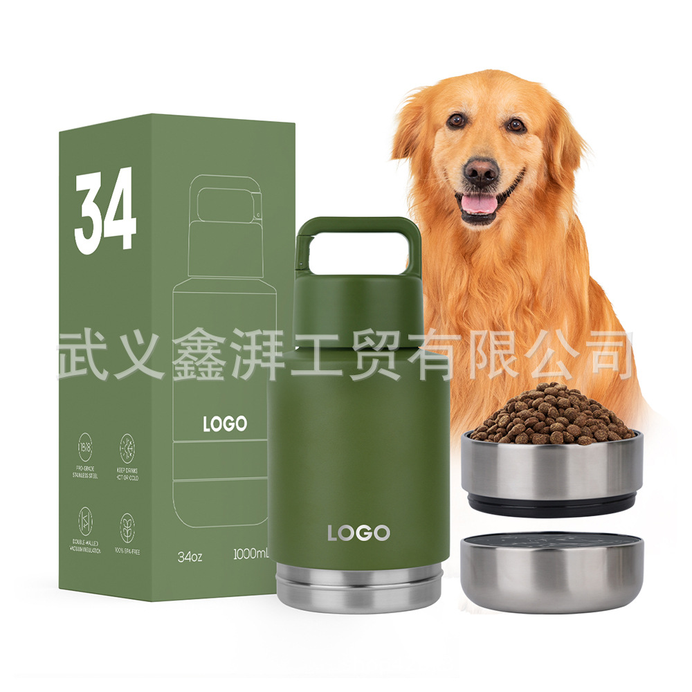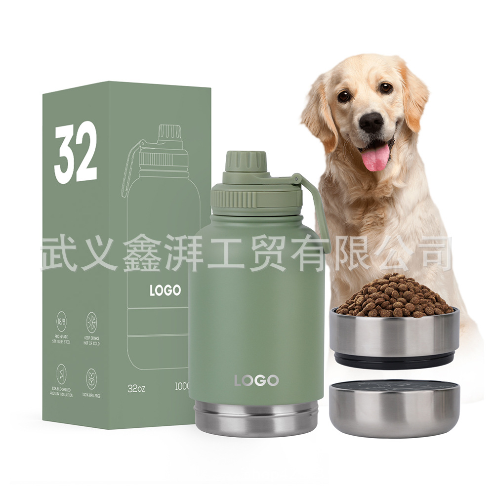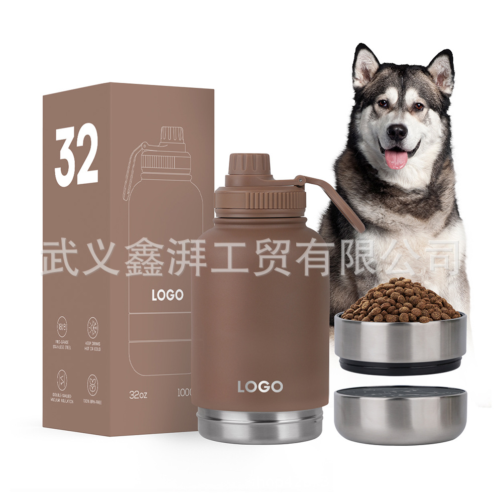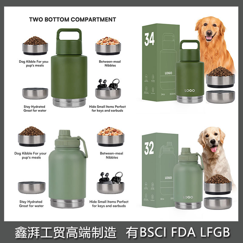 Amazon 베스트셀러 304 스테인레스 스틸 보온병 주전자 휴대용 손잡이가있는 대용량 보온병 컵 애완 동물 올인원 워터 컵