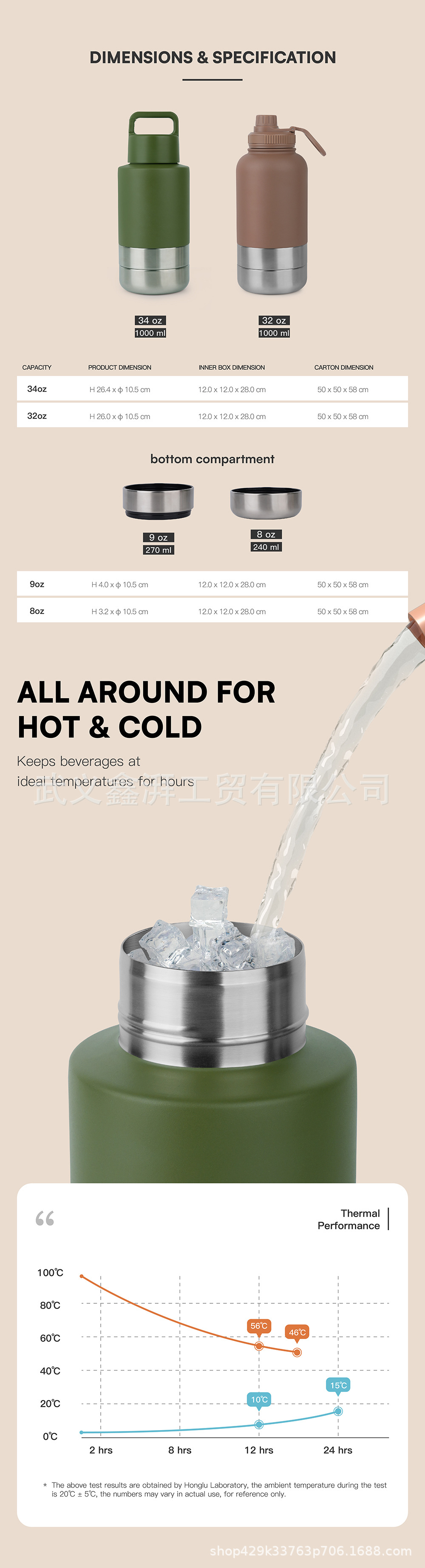 Amazon 베스트셀러 304 스테인레스 스틸 보온병 주전자 휴대용 손잡이가있는 대용량 보온병 컵 애완 동물 올인원 워터 컵스토어 가기