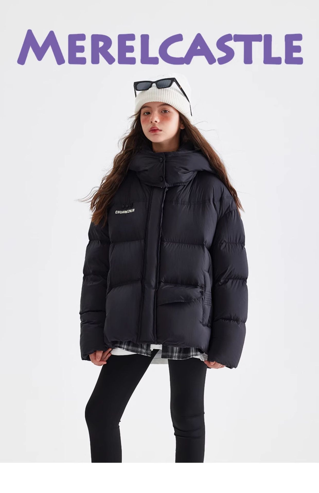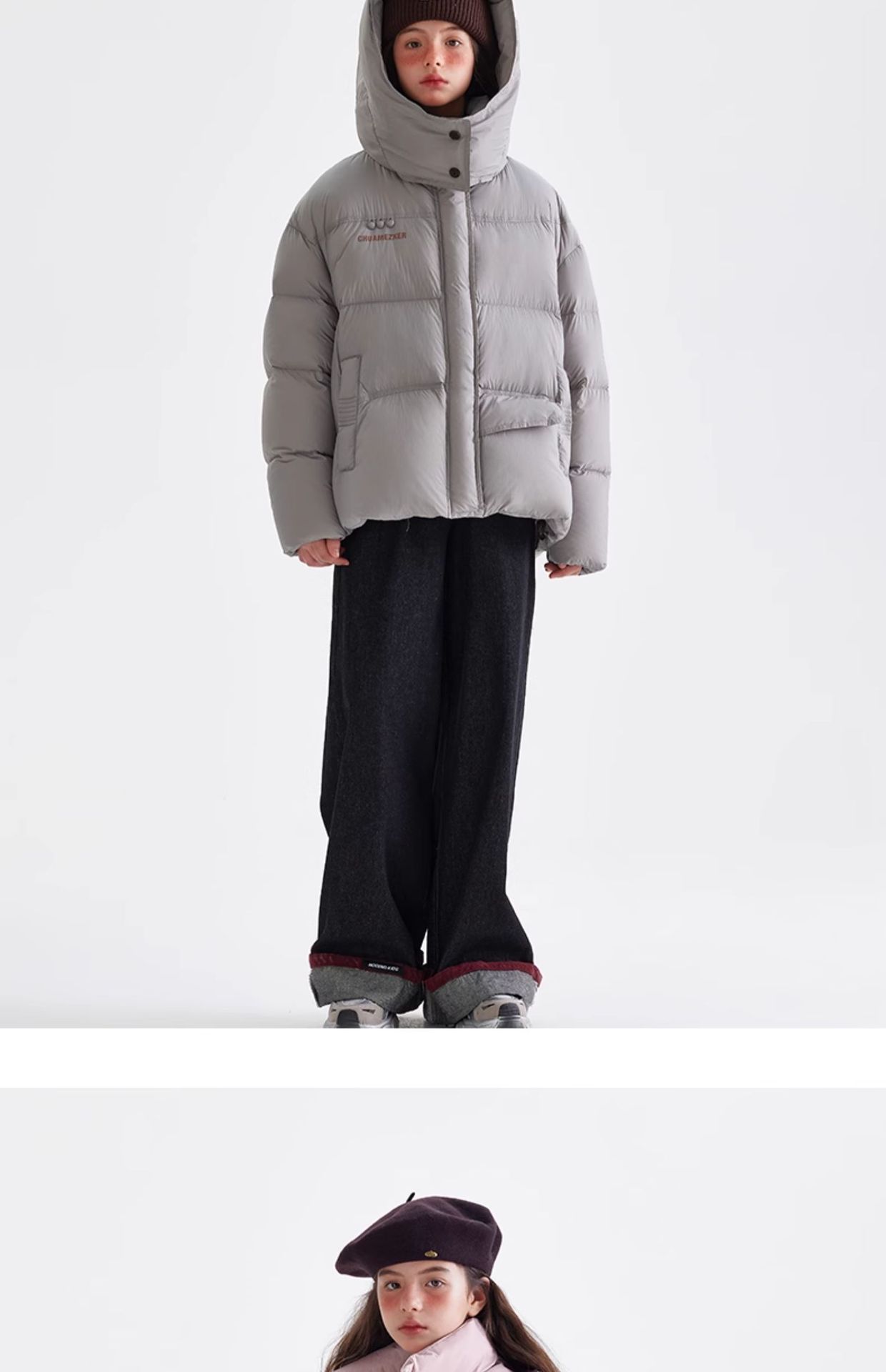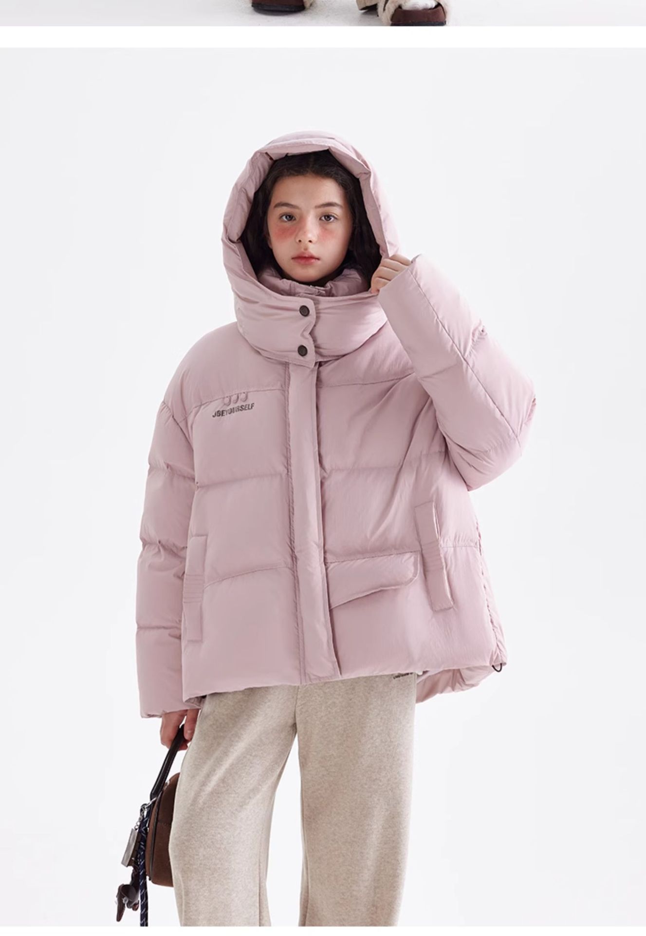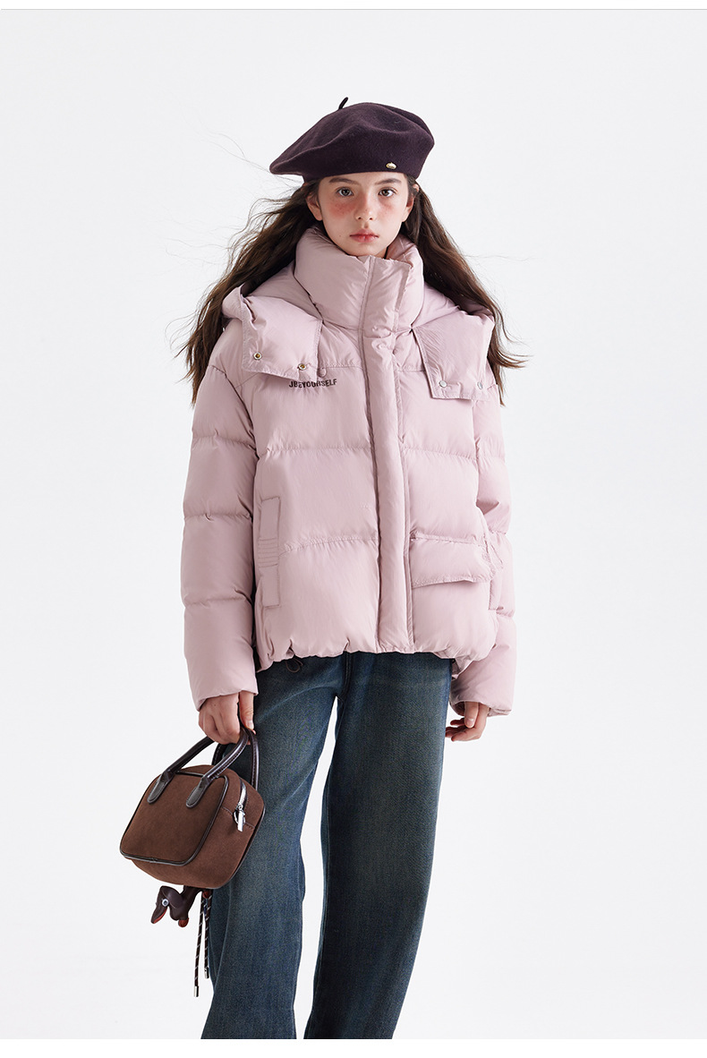 소녀 다운 재킷 겨울 2024 새로운 중학교 겨울 코트 큰 어린이와 청소년을위한 두꺼운 코트 짧은 빵 세트