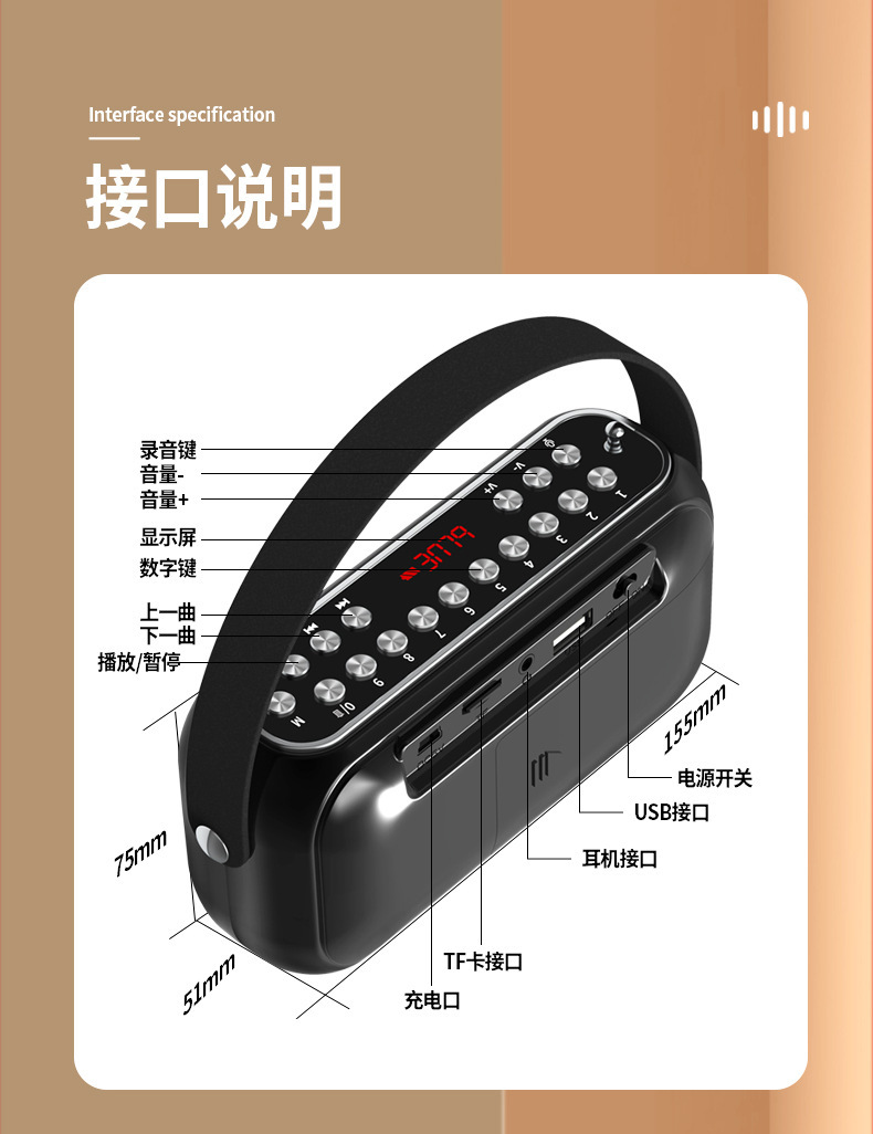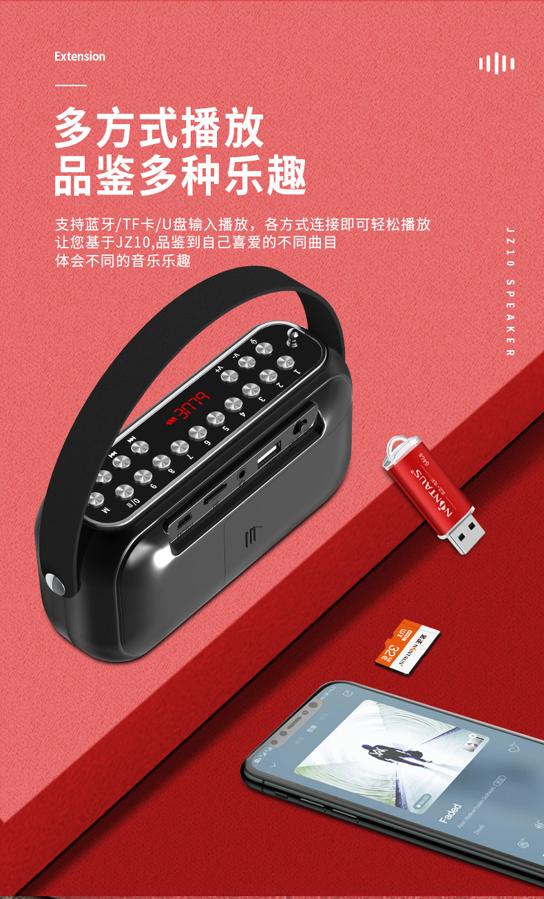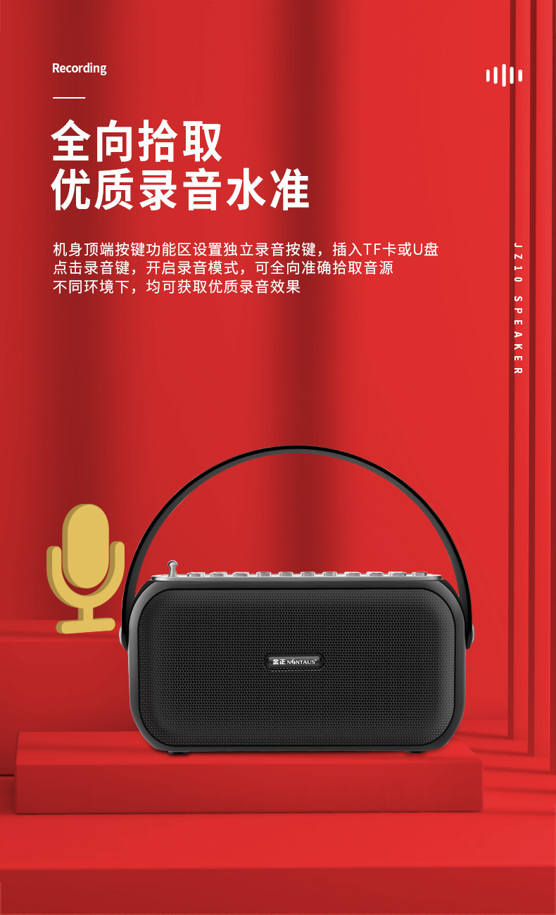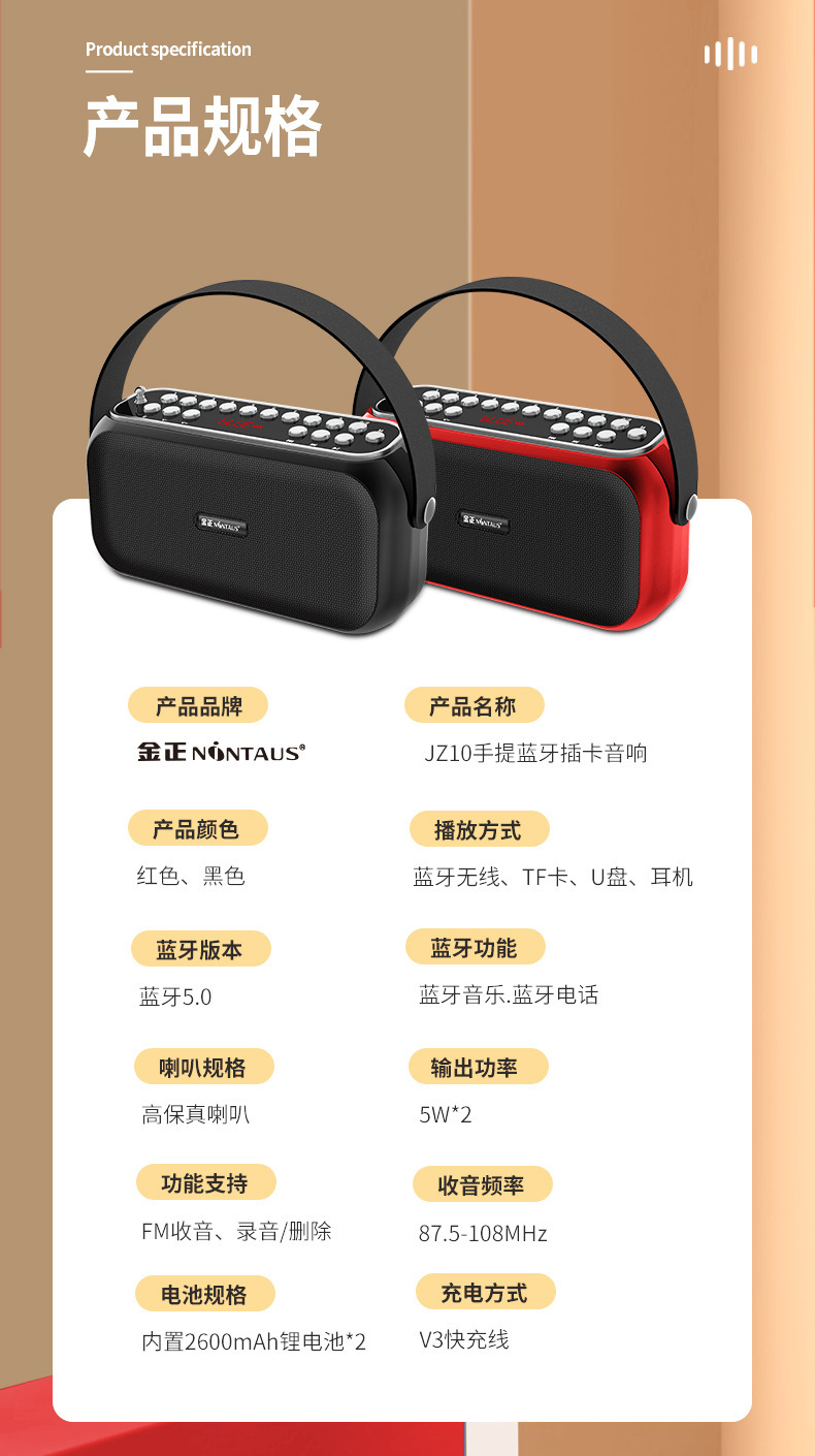Jinzheng JZ10 무선 블루투스 스피커 대용량 휴대용 야외 홈 오디오 자동차 오버 웨이트 서브 우퍼