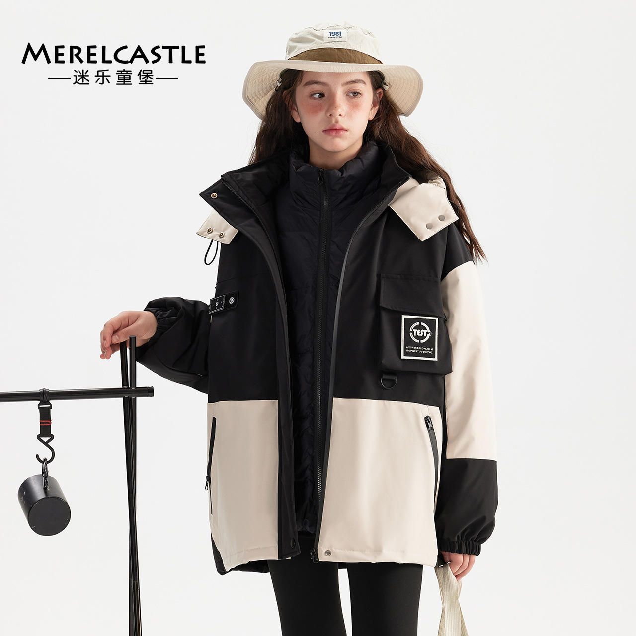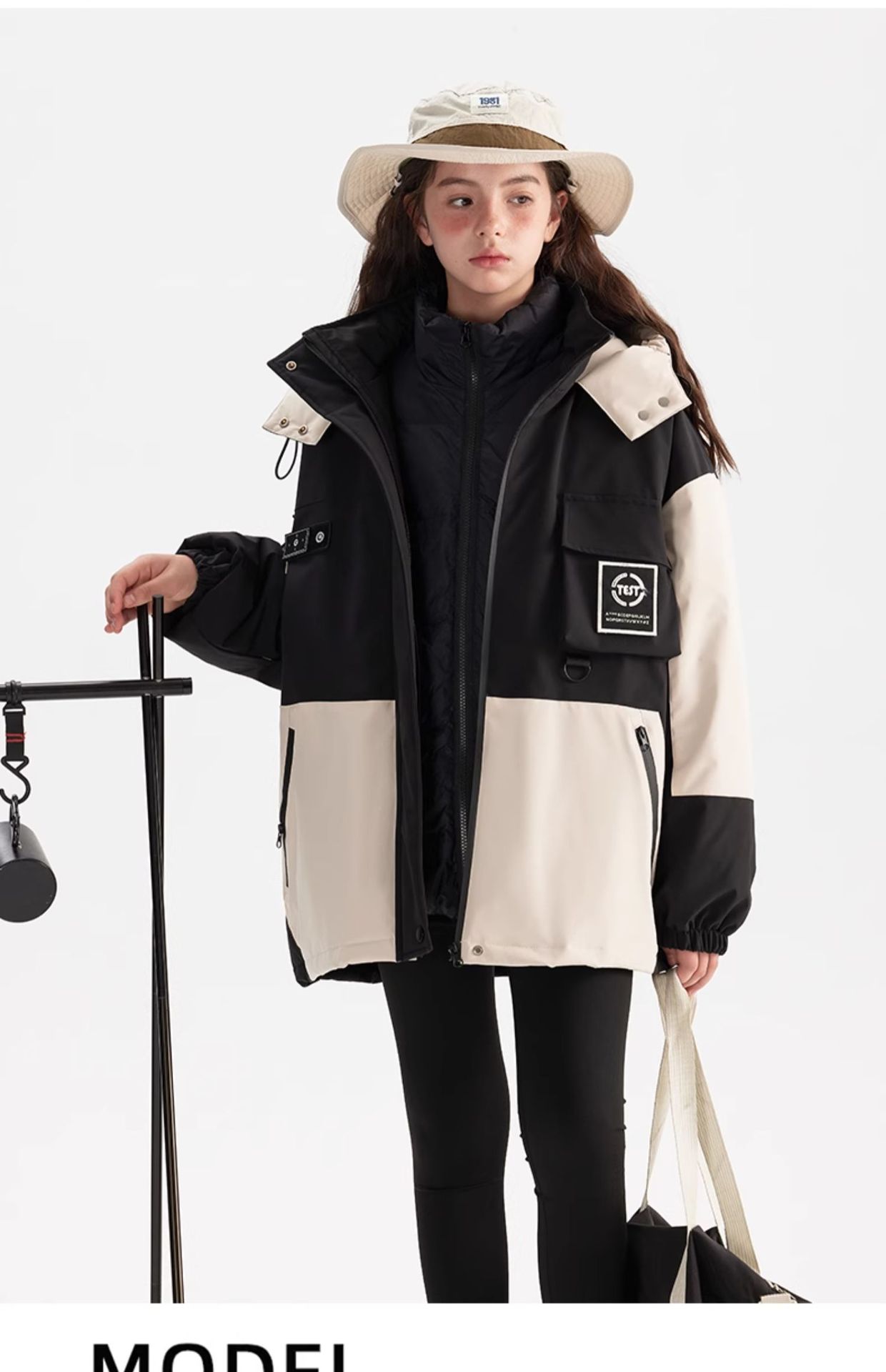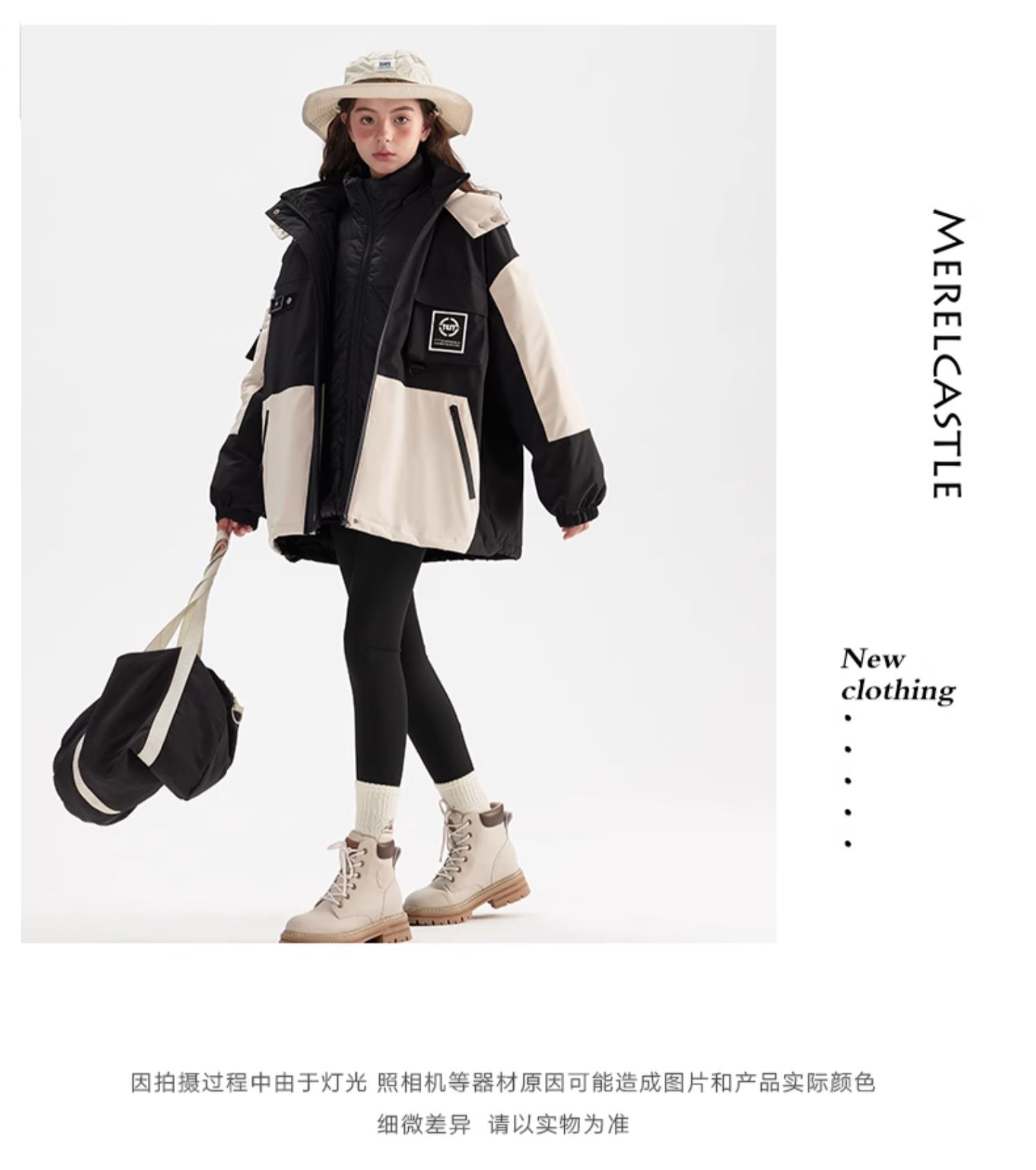 소녀 다운 재킷 2024 새로운 겨울 큰 어린이 코트 어린이 충전 옷 3 대 1 방풍 방수 분리스토어 가기
