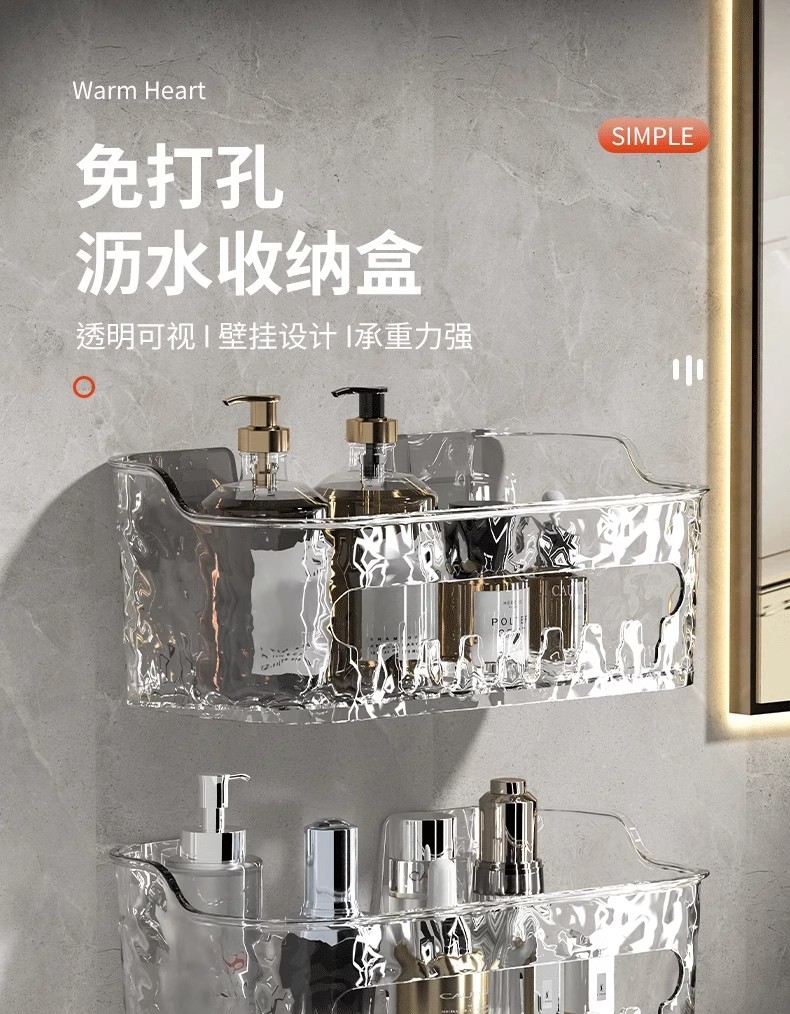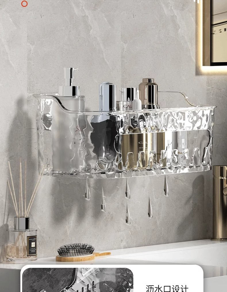 빙하 패턴 저장 랙 투명 펀치 없는 저장 상자 가정용 욕실 벽 장착 배수 화장품 상자 대용량스토어 가기