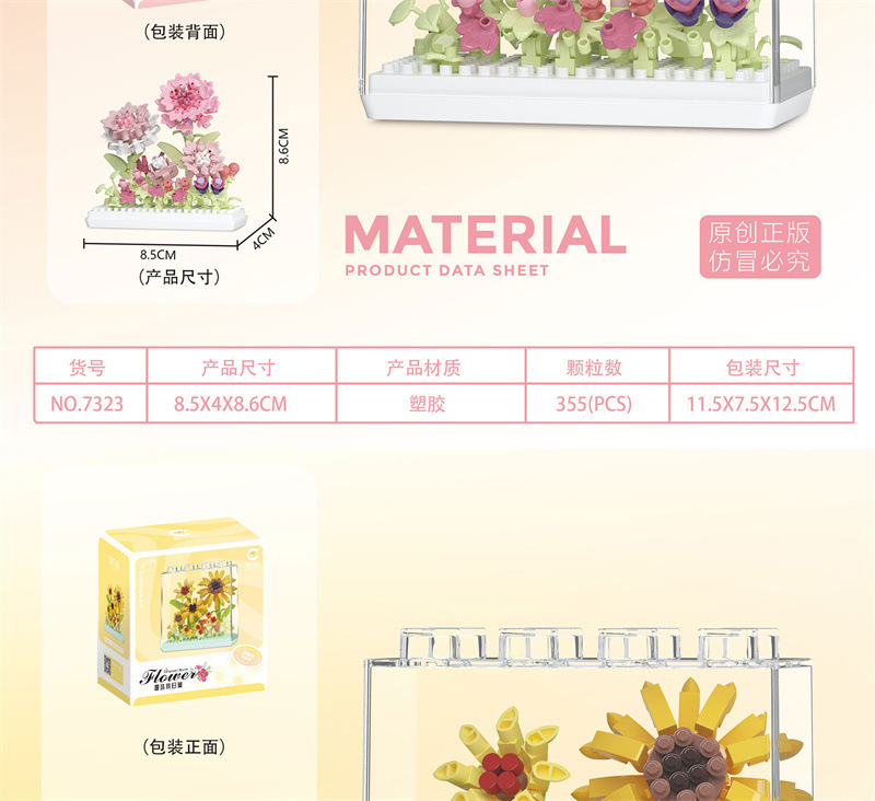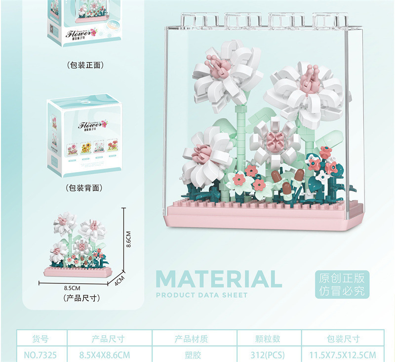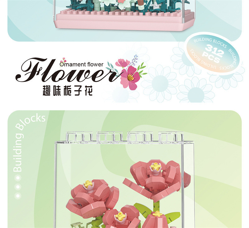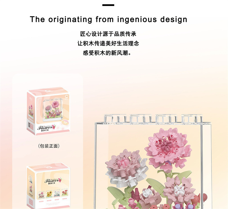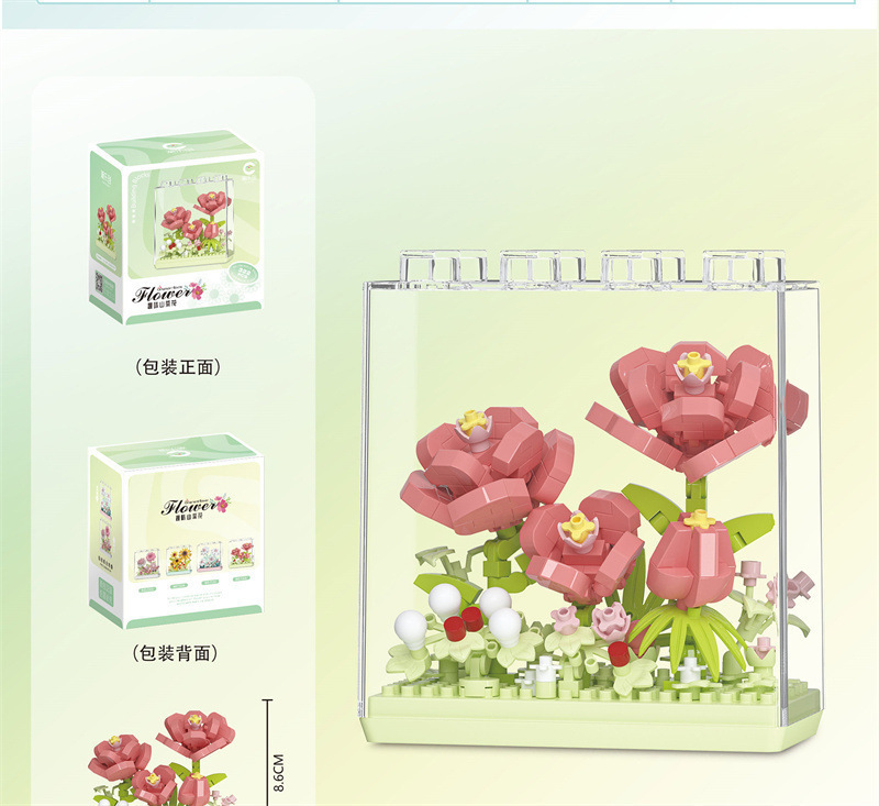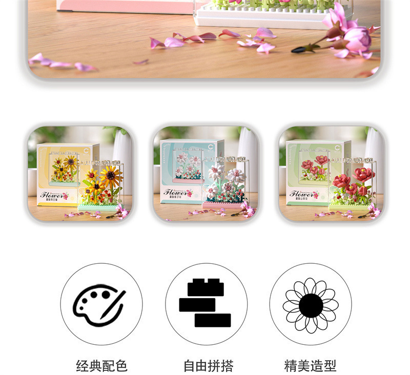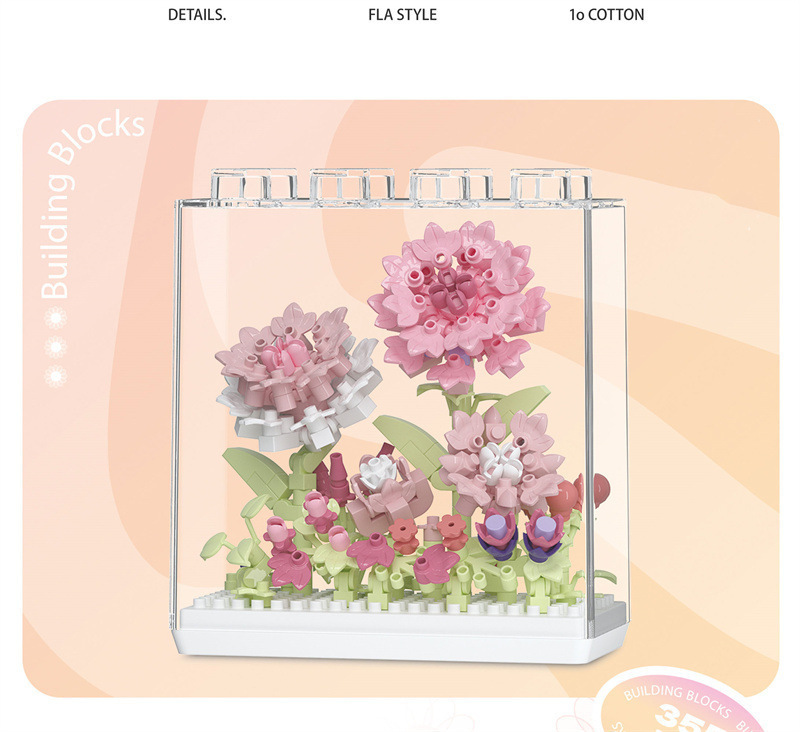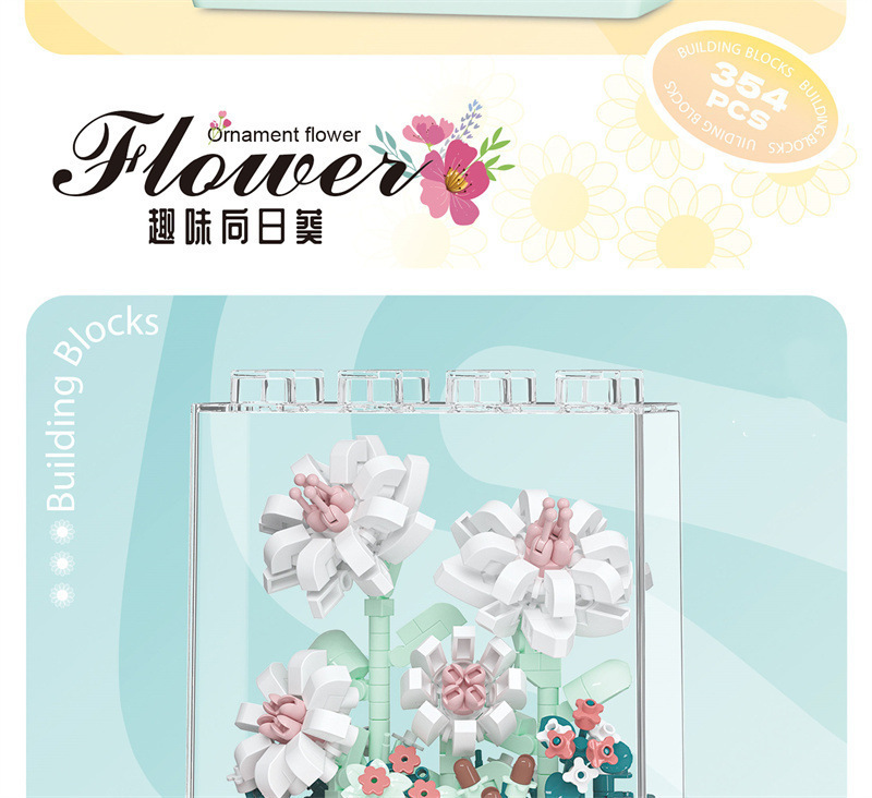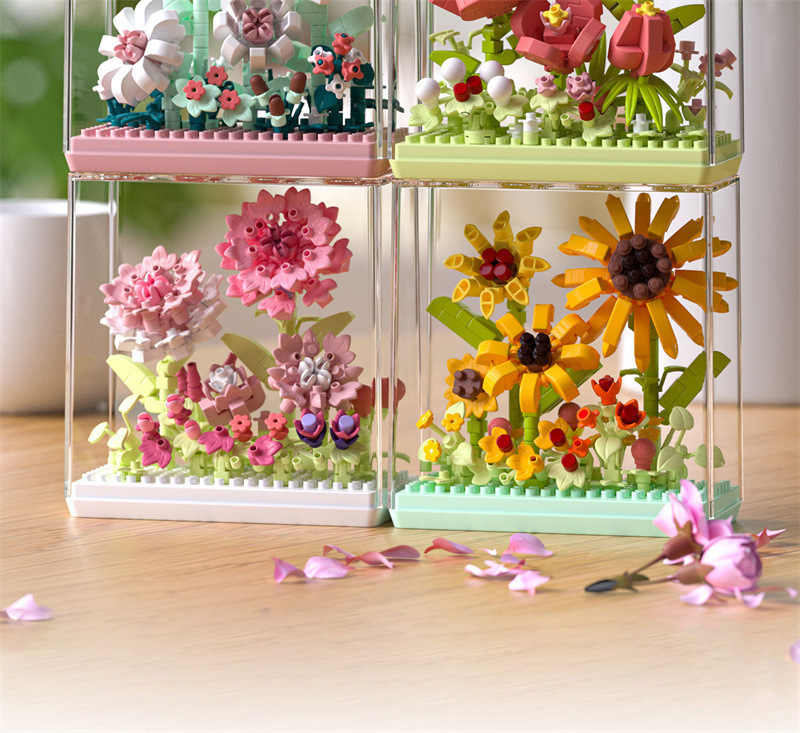 레고 치청 꽃 상자 해바라기 카네이션 아크릴 커버 빌딩 블록 꽃 번들 조립 건물 블록 장난감 선물