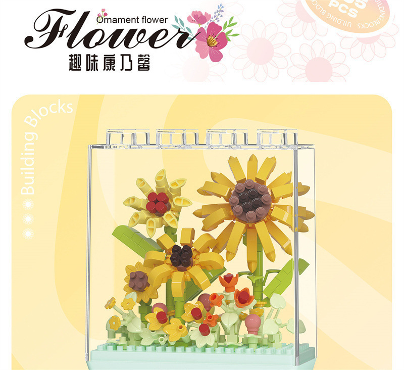 레고 치청 꽃 상자 해바라기 카네이션 아크릴 커버 빌딩 블록 꽃 번들 조립 건물 블록 장난감 선물스토어 가기