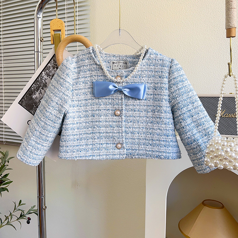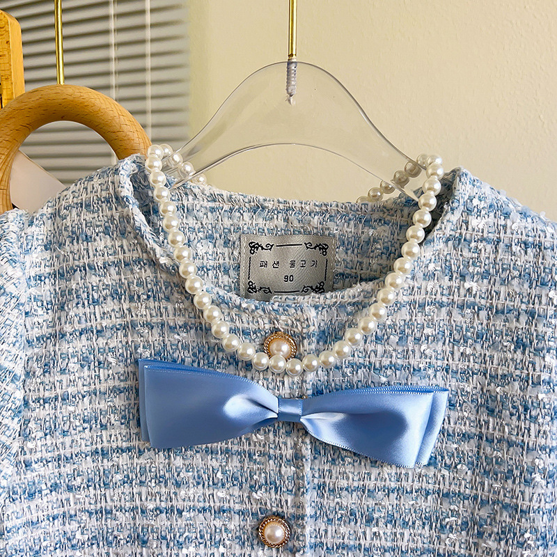 여아용 작은 프랑스 스타일 세트 2025 봄 가을 신상 패셔너블한 리본 자켓과 스커트 투피스 세트스토어 가기