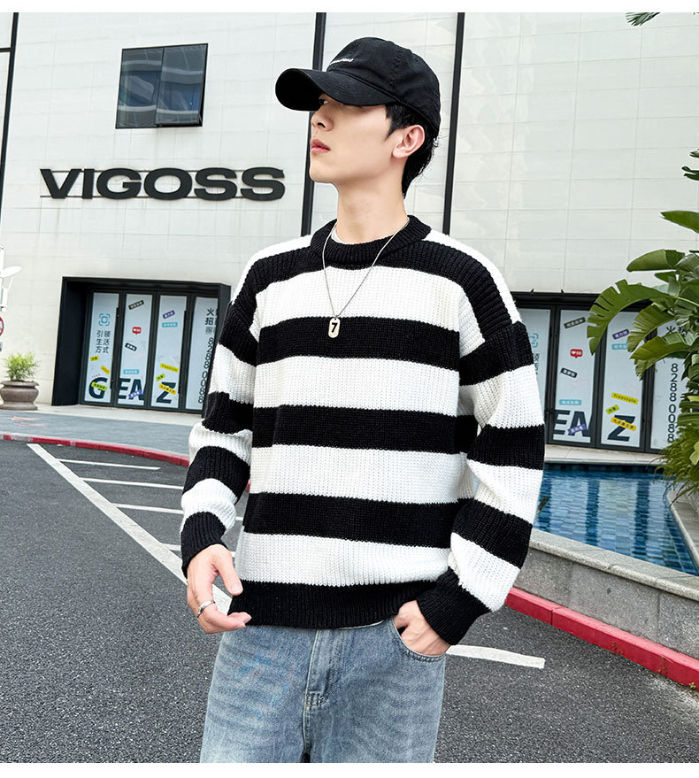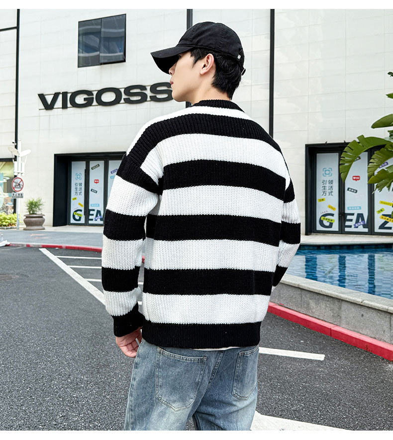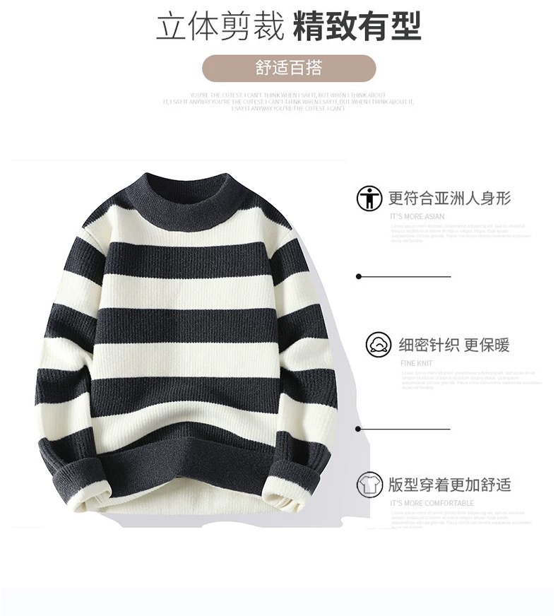 클래식 와이드 스트라이프 모의 터틀넥 따뜻한 스웨터 남자 2024 년 새로운 가을 및 겨울 탑 루즈베이스 스웨터스토어 가기