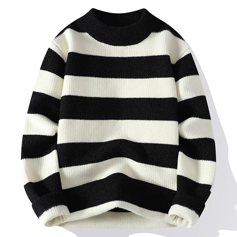 클래식 와이드 스트라이프 모의 터틀넥 따뜻한 스웨터 남자 2024 년 새로운 가을 및 겨울 탑 루즈베이스 스웨터