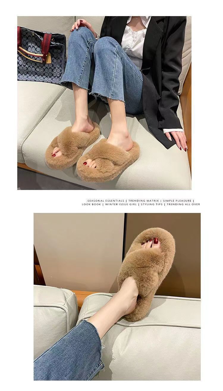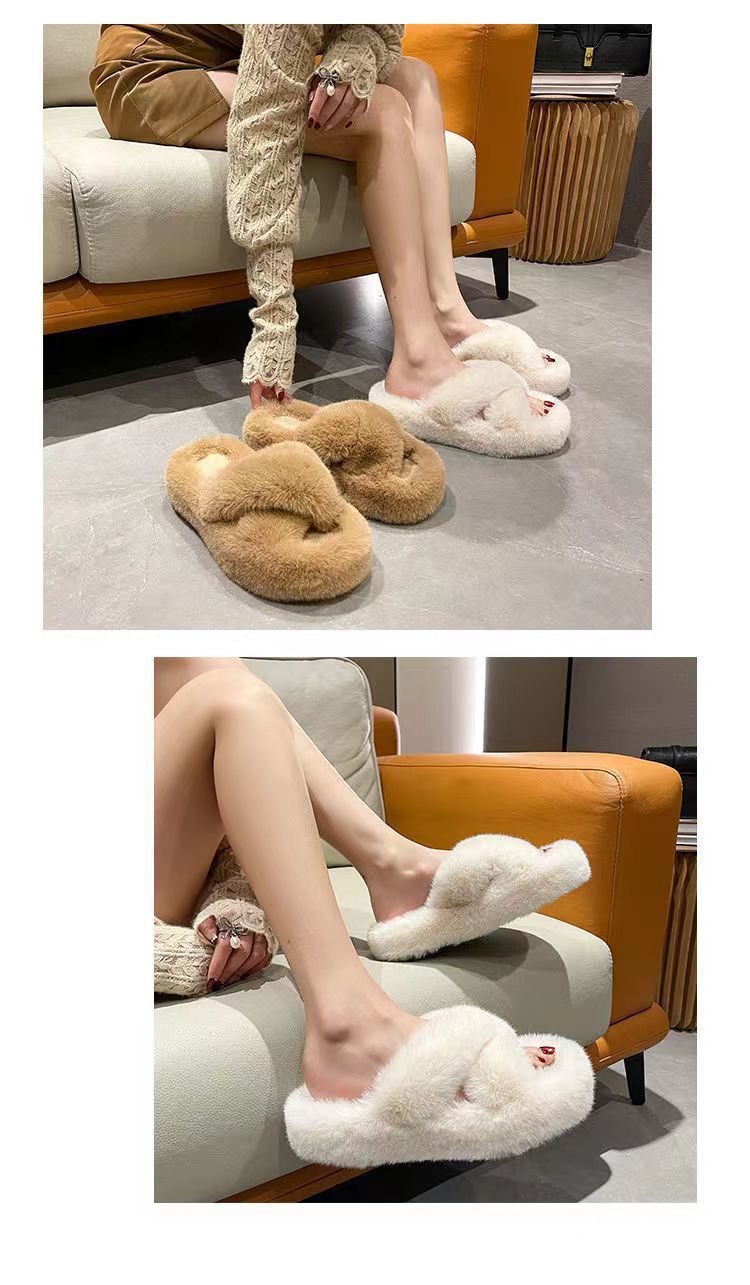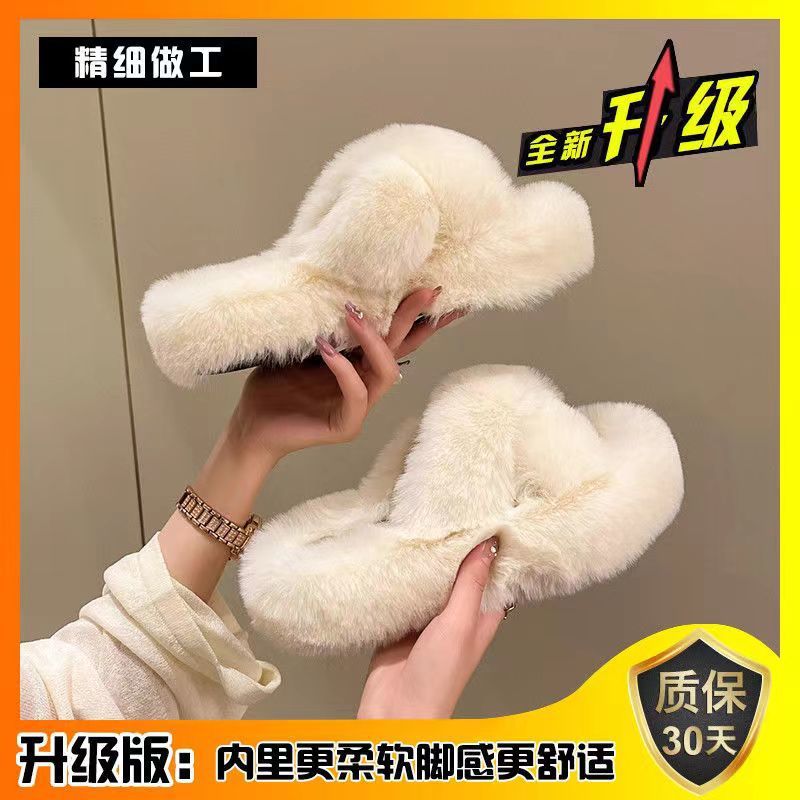 두꺼운 밑창 높이 증가 푹신한 슬리퍼 여성의 2024 가을과 겨울 새로운 가정 및 야외 착용 온라인 인기 패션 스폰지 케이크 크로스 오버 푹신한 신발스토어 가기