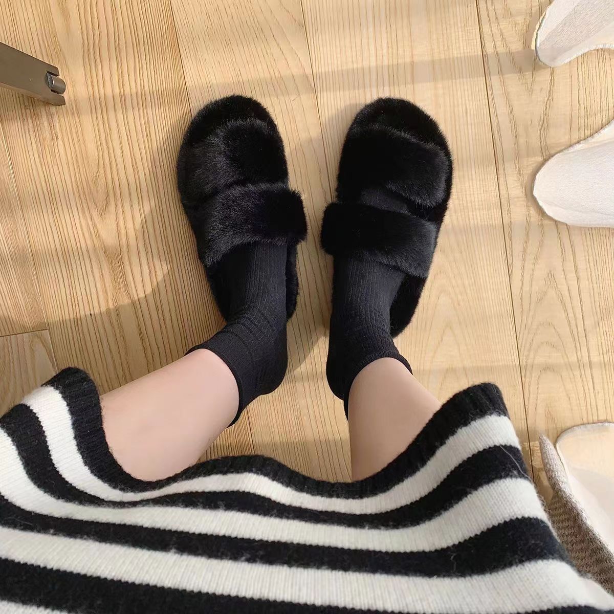 • 얇은 [흰색] 평행 모피 신발
