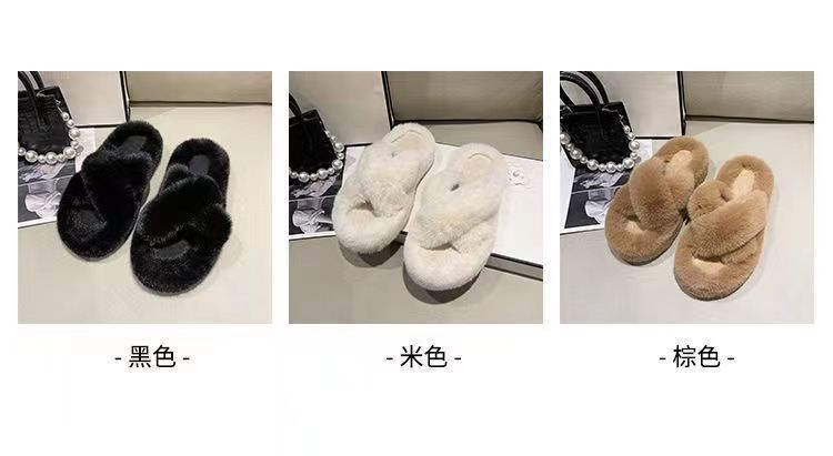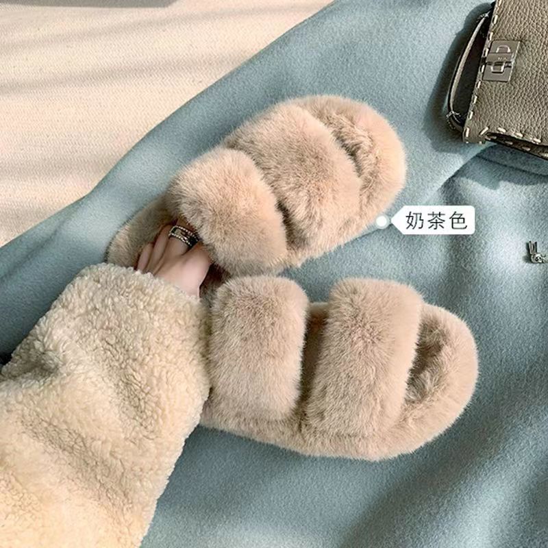• 두꺼운 [카키] 평행 모피 신발