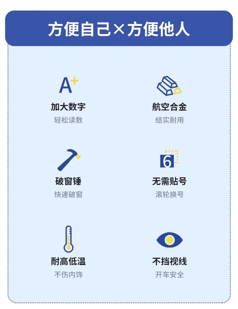 汽车破窗器号码牌挪车电话牌摆件车载手机留号车用临时停车安全锤