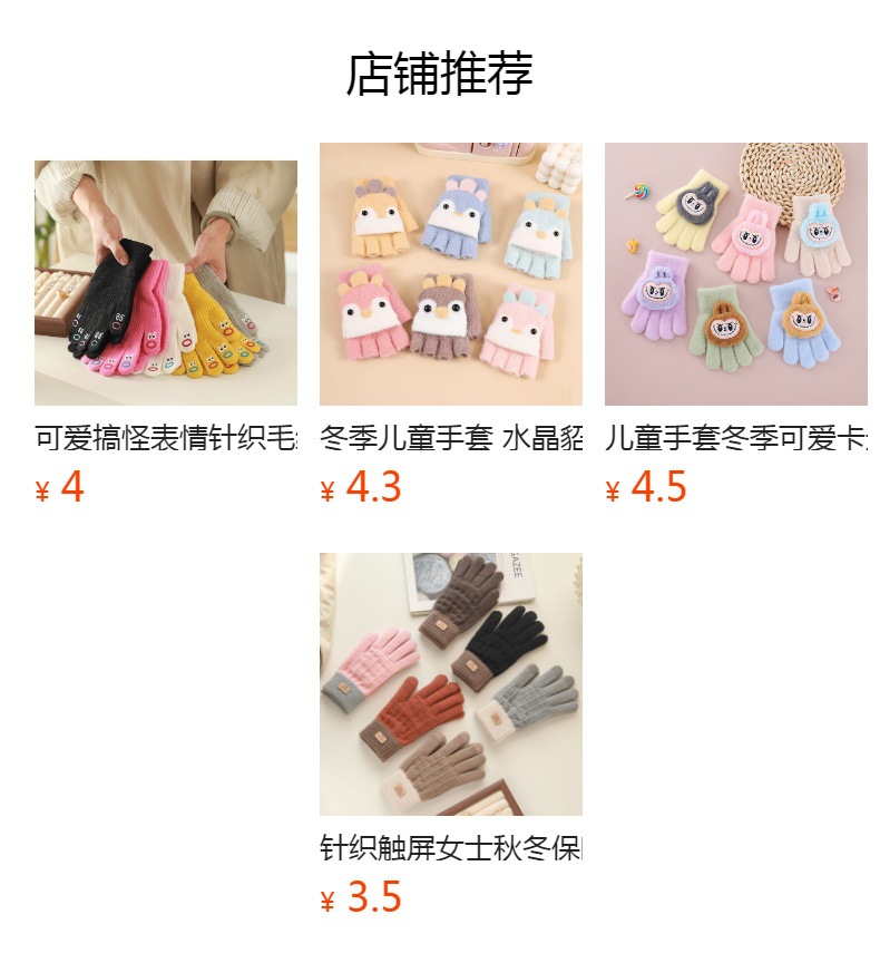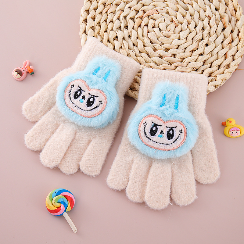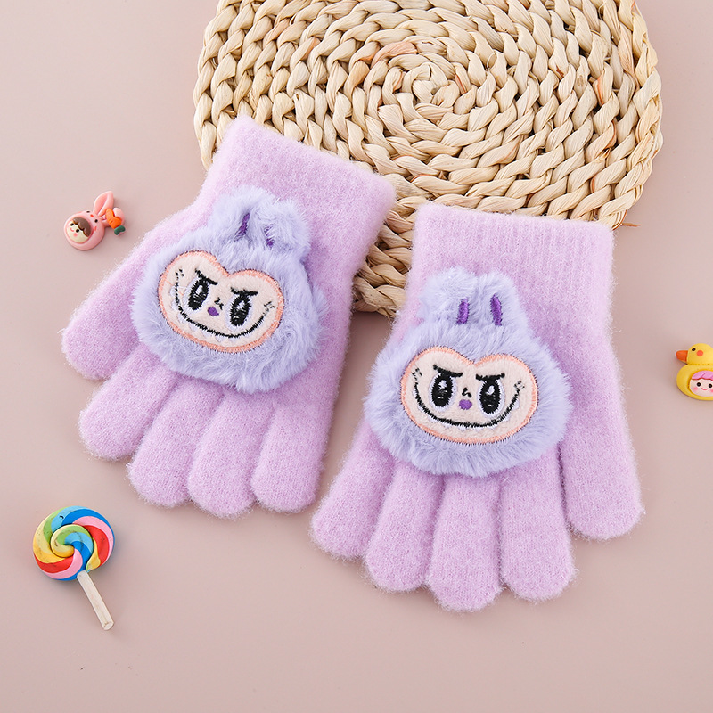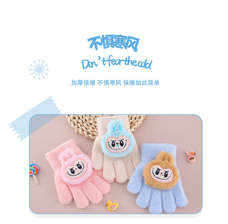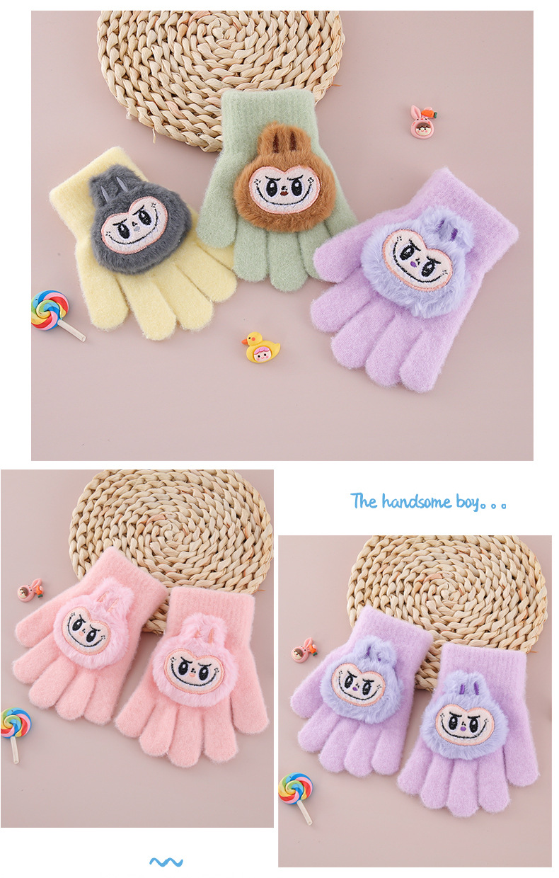 겨울철 귀여운 만화 소년 소녀용 어린이 장갑, 따뜻하고 방한 5손가락 5-10 니트 초등학생 밍크 벨벳 장갑스토어 가기