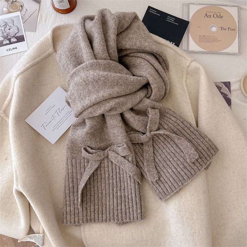 솔리드 컬러 니트 스카프 여성의 가을과 겨울 하이 엔드 양모 블렌드 양모 따뜻한 목 올 매치 유행 활