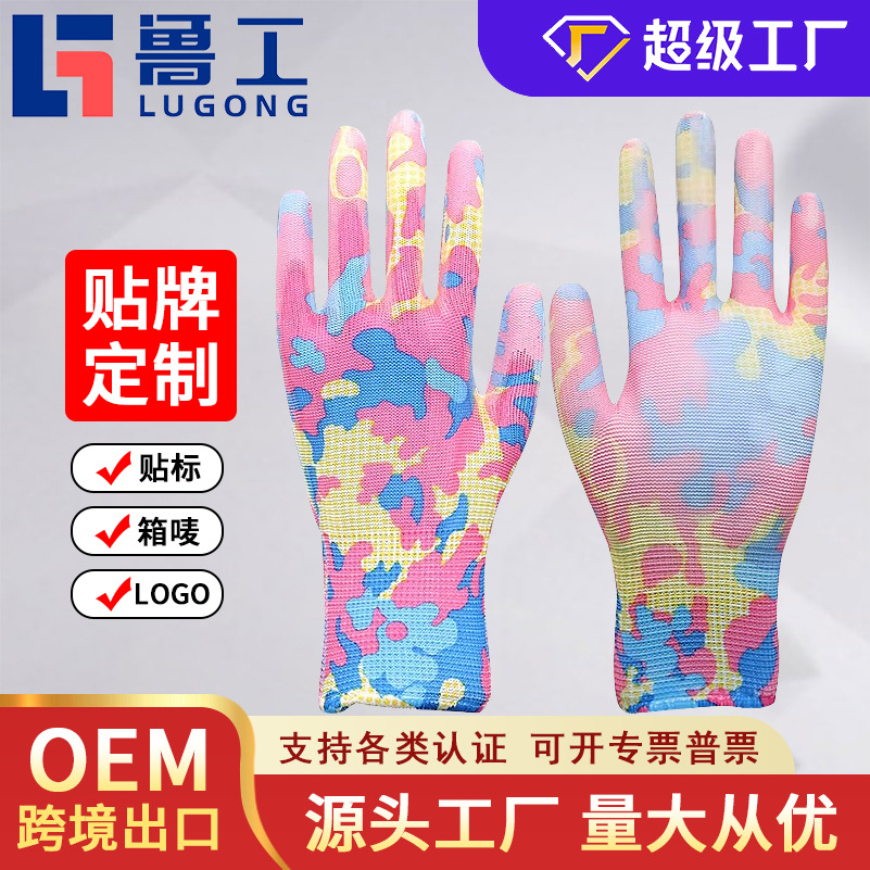 다채로운 PU 접착 장갑, 내마모성 및 내구성 있는 손바닥 코팅 장갑, 통기성이 있고 가볍고 미끄럼 방지, 고추 따기용 여성용 노동 보호 장갑