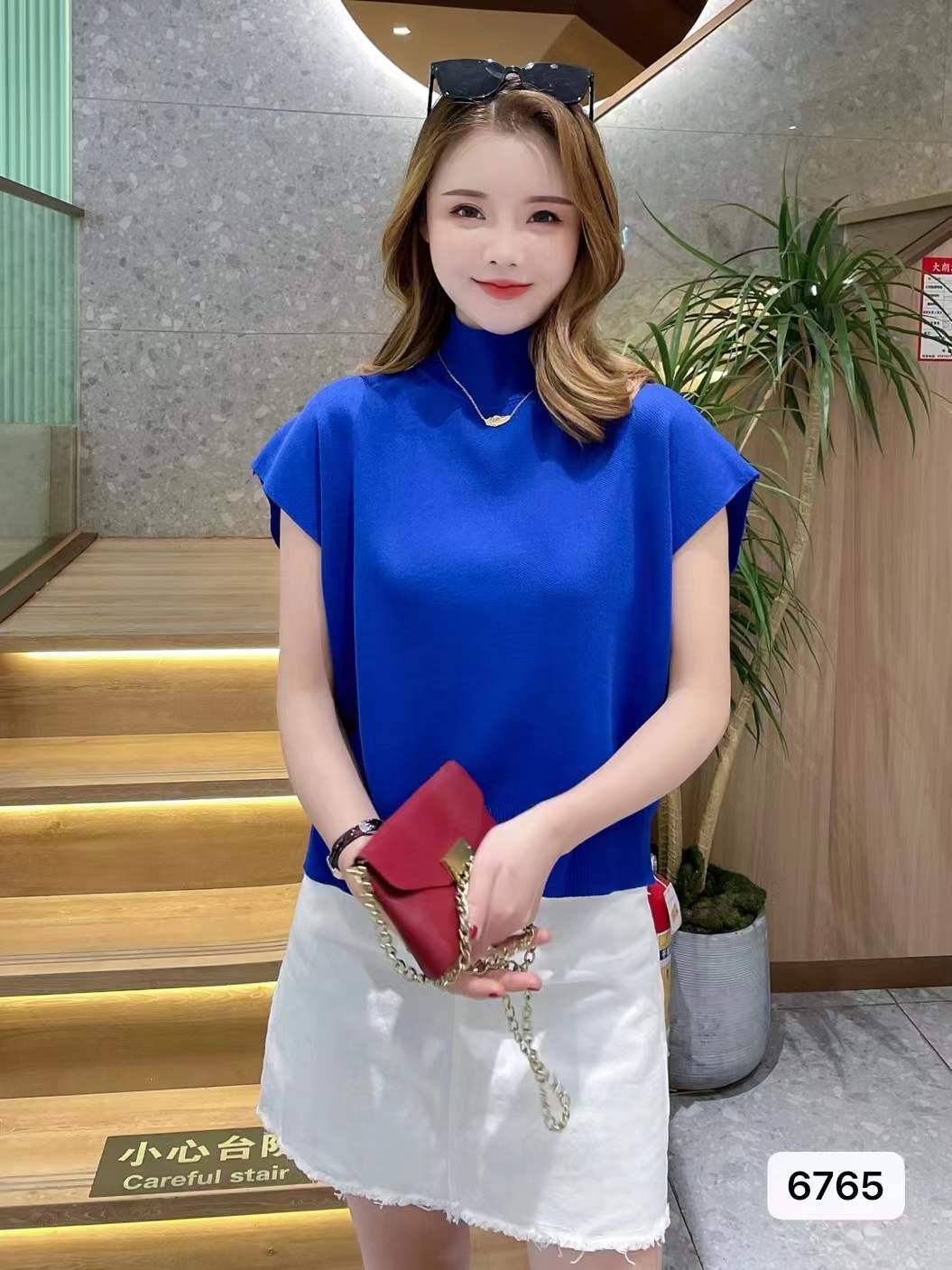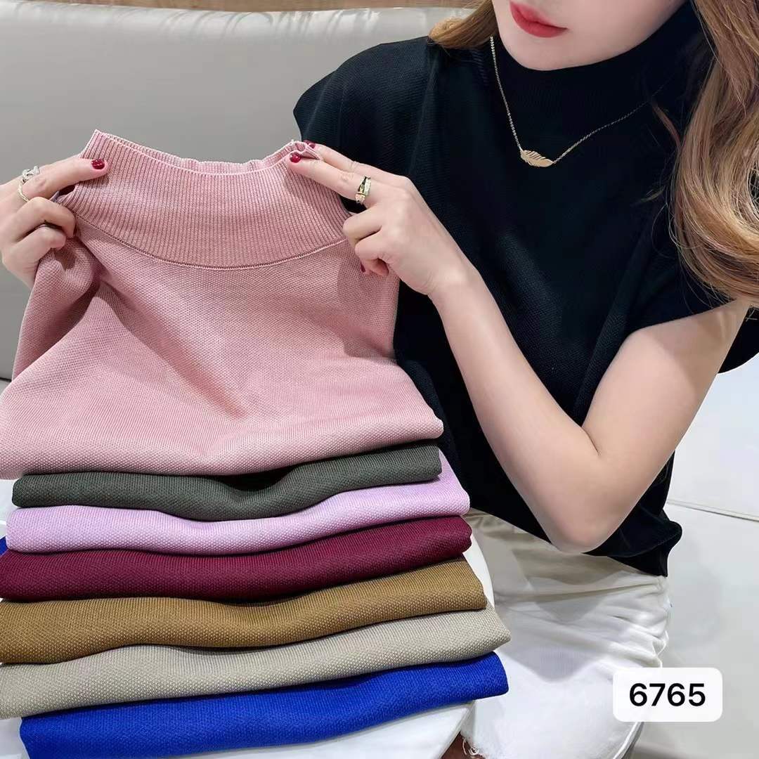 2025 한국판 새로운 하프 하이 칼라 양복 조끼 티셔츠 여성용 간단한 느슨한 짧은 소매 재킷 여름스토어 가기