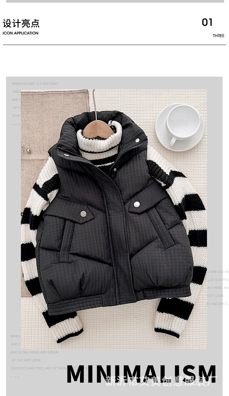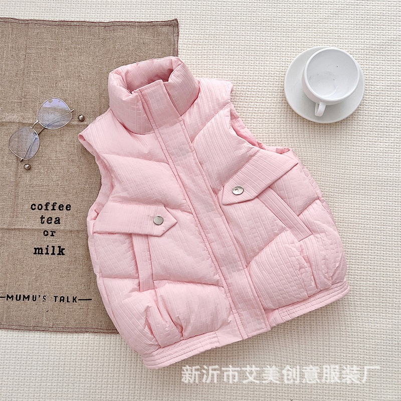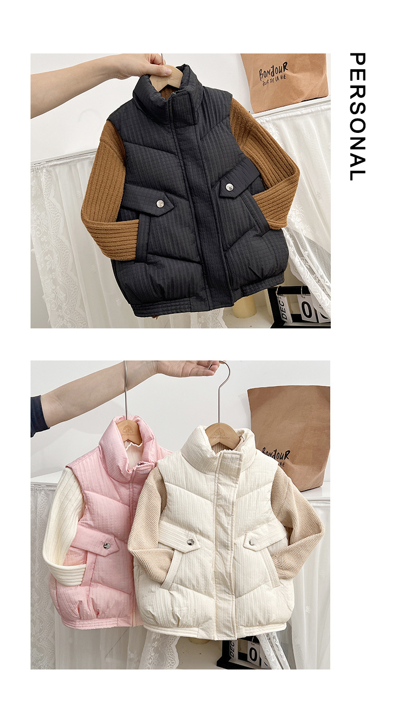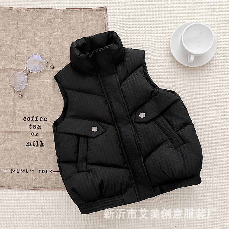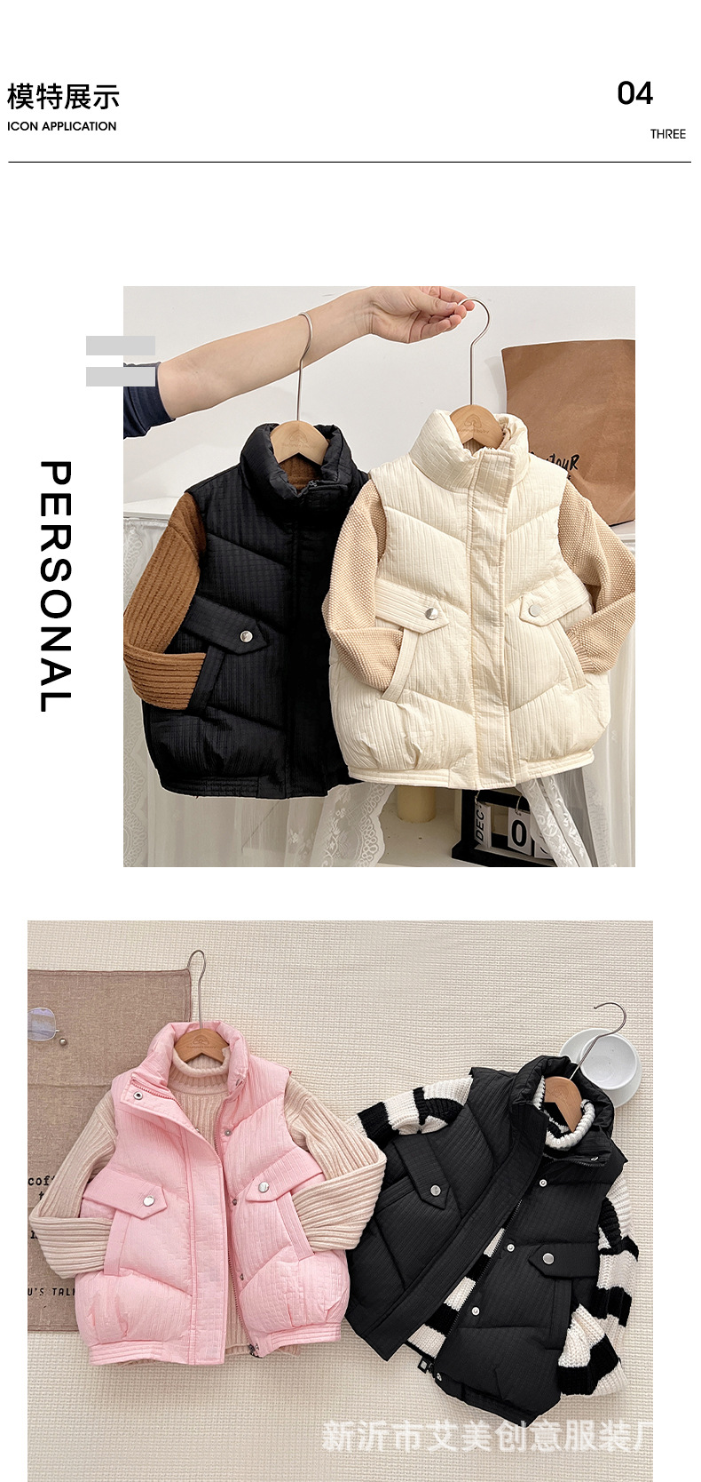 어린이 다운 코튼 조끼 겨울 쇼트 올 매치 외국식 조끼 루즈 웨이슬 칼라 코튼 조끼 재킷