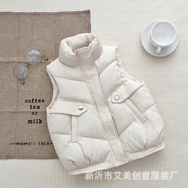 어린이 다운 코튼 조끼 겨울 쇼트 올 매치 외국식 조끼 루즈 웨이슬 칼라 코튼 조끼 재킷스토어 가기