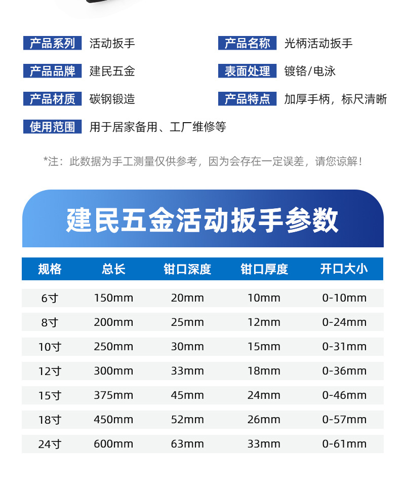 조절식 렌치 6인치 8inch 10inch 산업용 조절식 렌치 대형 오프닝 렌치 다양한 규격 미니 하드웨어 렌치