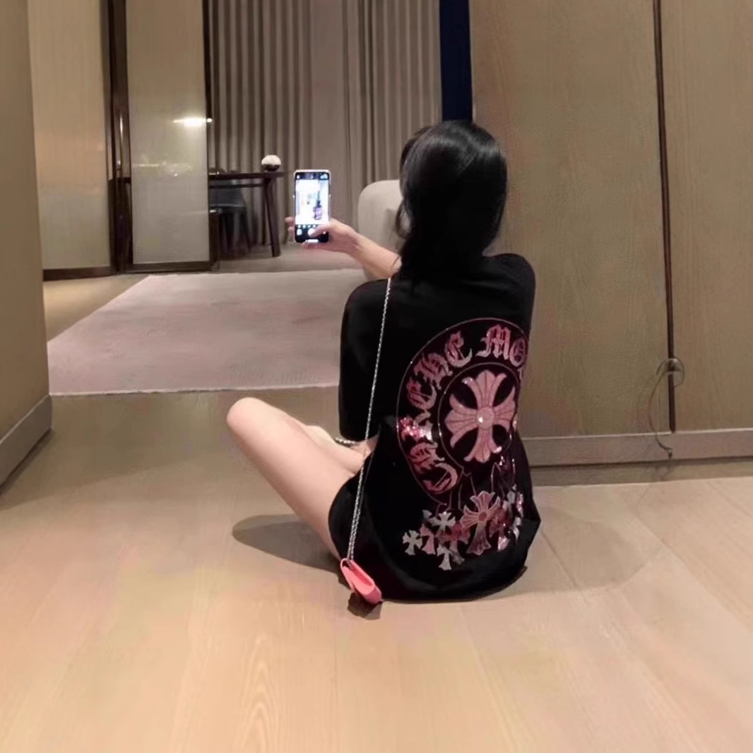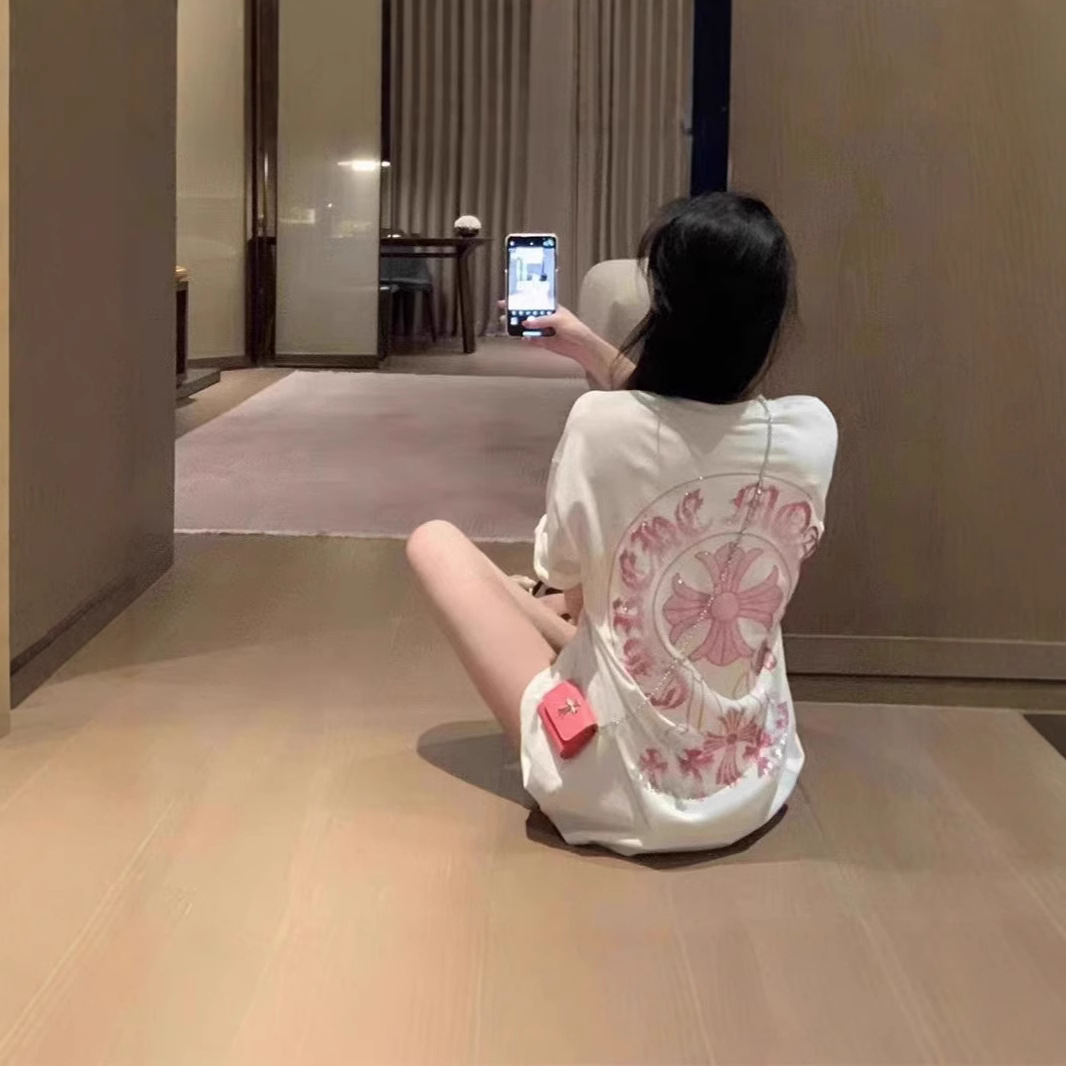 봄과 여름 2024 새로운 패션 브랜드 패션 중공업 핫 드릴링 티셔츠 여성용 한국식 Ins 달콤하고 매운 고기 커버 올 매치 슬림 탑스토어 가기