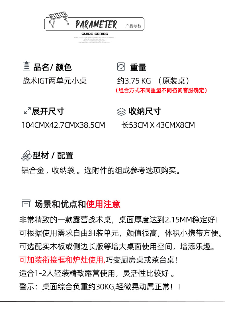 Bulin 가이드 시리즈 야외 알루미늄 합금 접이식 테이블 피크닉 IGT 모듈 절묘한 캠핑 다기능 테이블스토어 가기