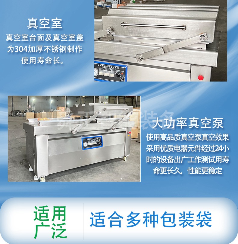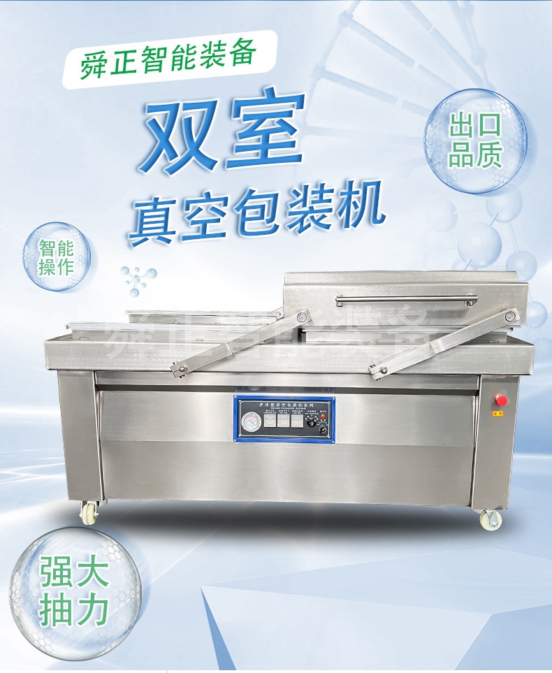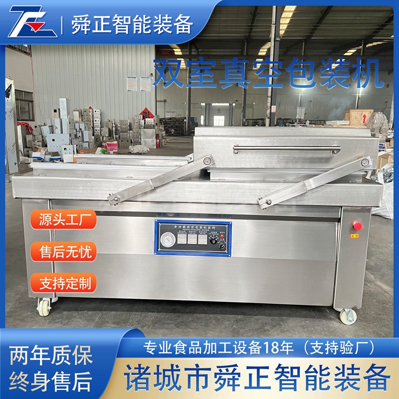 건조하고 젖은 이중 사용 이중 챔버 진공 포장 기계 조리 된 로스트 치킨 로스트 고기 소시지 베이컨 소금 구운 치킨 진공 포장 기계