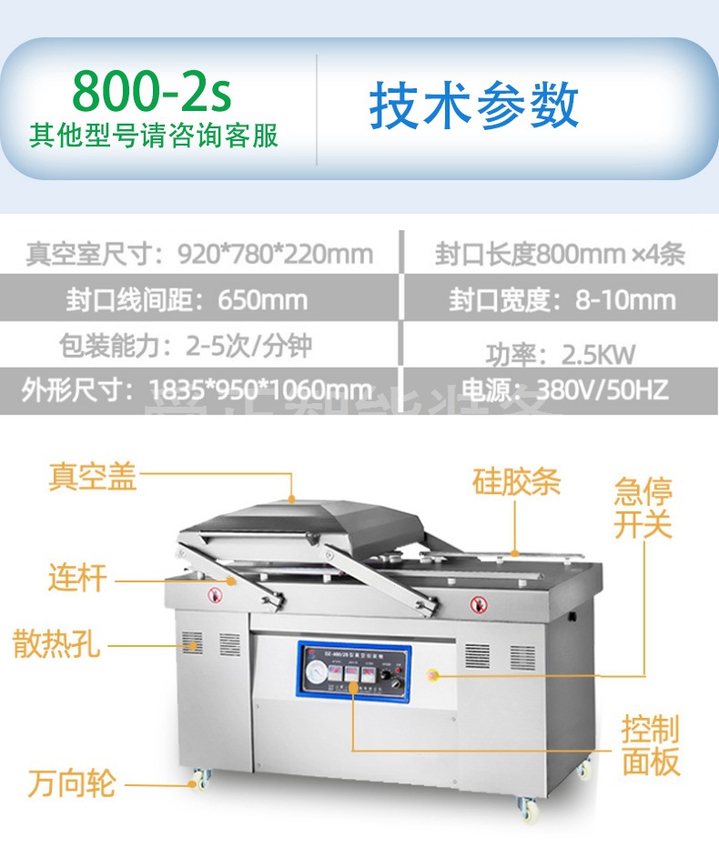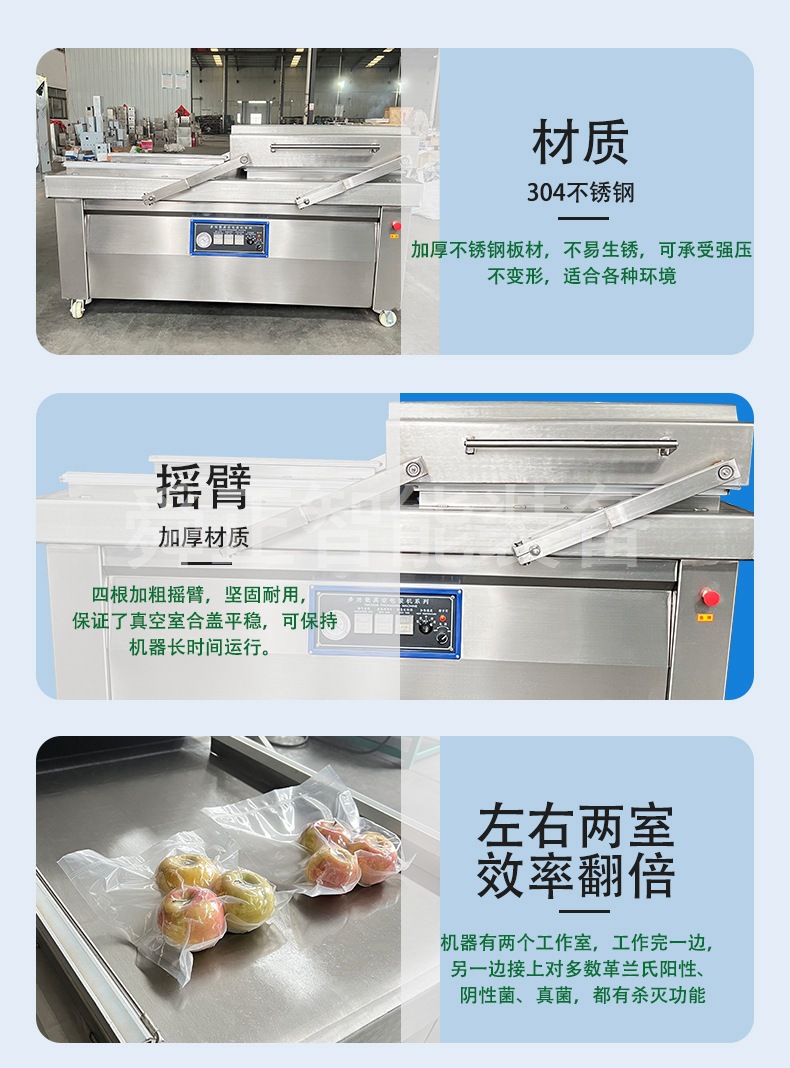 건조하고 젖은 이중 사용 이중 챔버 진공 포장 기계 조리 된 로스트 치킨 로스트 고기 소시지 베이컨 소금 구운 치킨 진공 포장 기계스토어 가기