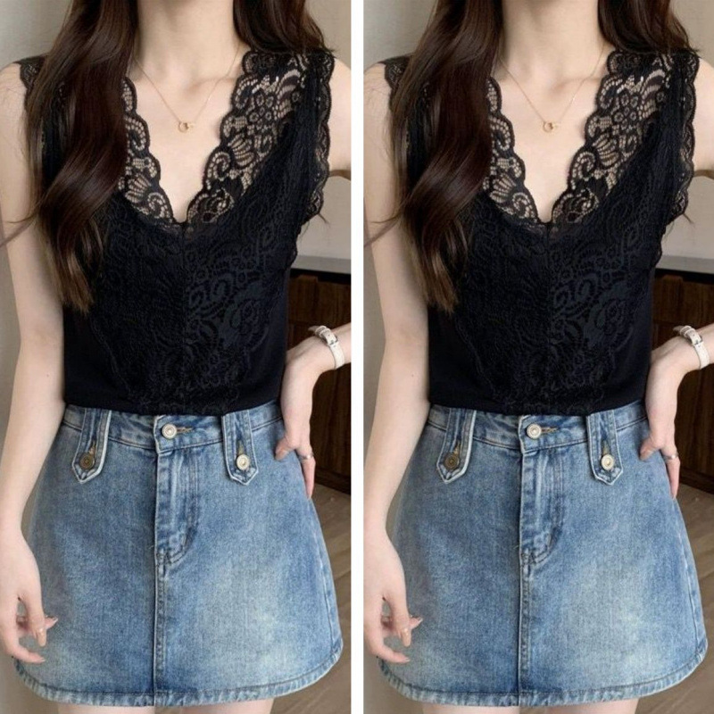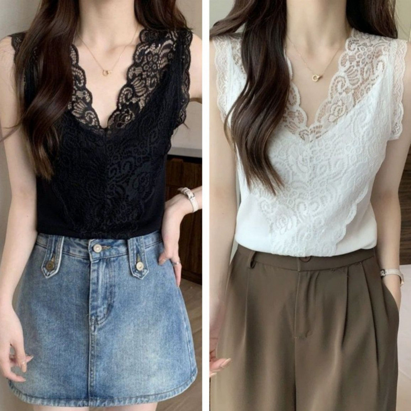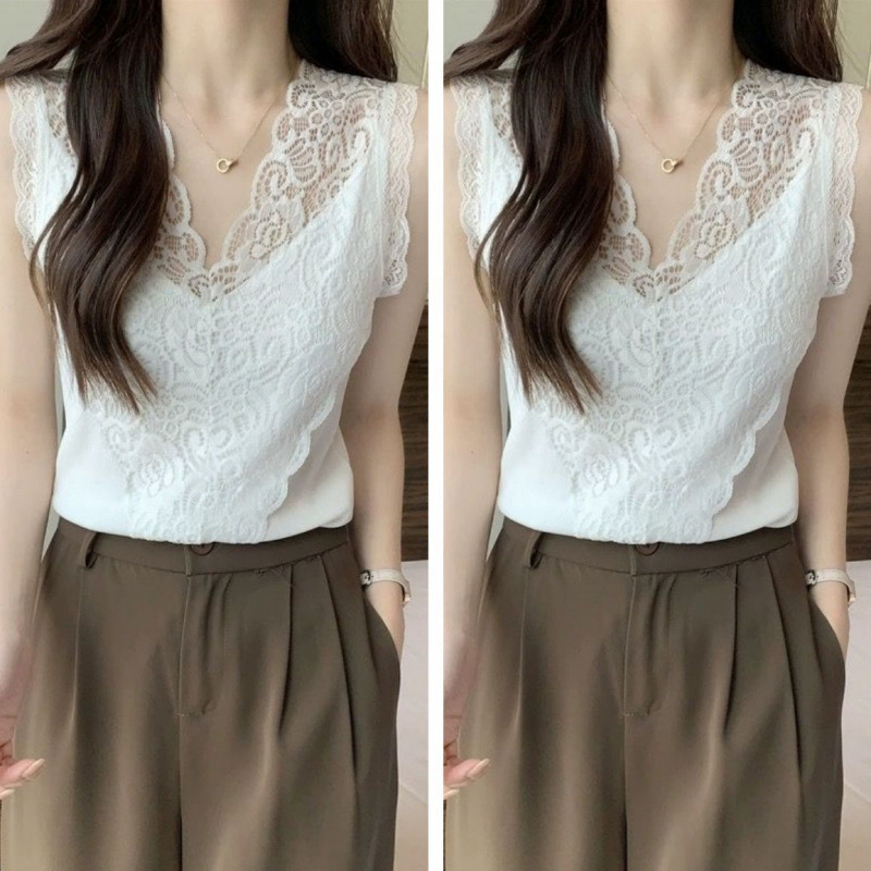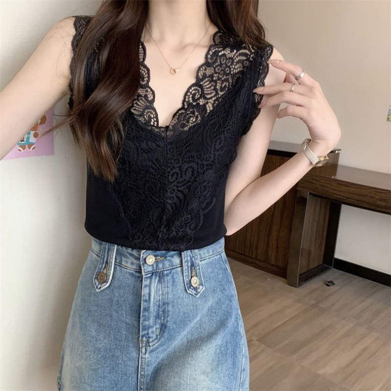 화이트 모달 레이스 카미솔 여성의 봄과 여름 새로운 도착 플러스 사이즈 통통녀 외부 착용 내부베이스 민소매 조끼