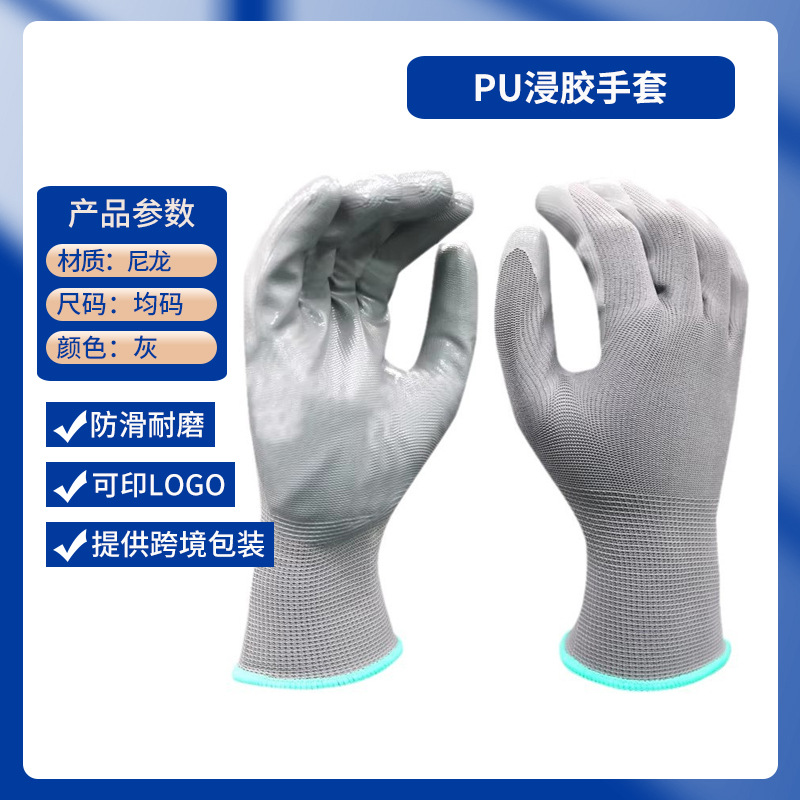 루공 PU 얇은 나일론 내마모성 장갑, 손바닥에 고무 코팅, 미끄럼 방지, 통기성, 정전기 방지, 노동 보호 작업 보호 도매