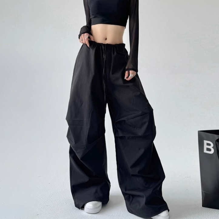 다크 브라운 넓은 다리 바지 여성의 2024 새로운 봄과 가을 느슨한 캐주얼 바지 높은 허리 화물 바지스토어 가기