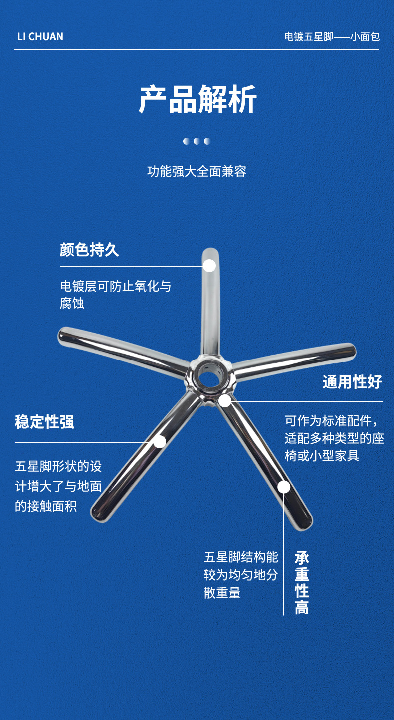 재고 사무실 의자 회전 의자 액세서리 전기 도금 작은 빵 5 성급 발 사무실 의자 5 발 발 전자 스포츠 의자 베이스 발 스탠드